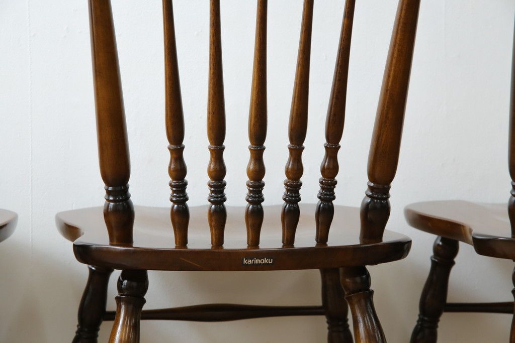 椅子・ベンチ> ウィンザーチェア > 中古 美品 カリモク家具(karimoku) コロニアルシリーズ(Colonial) クラシカルな美しさと快適性を兼ね備えたウィンザーチェア4脚セット(ダイニングチェア、アームレスチェア、椅子、イス、バラ売り可能)(R-082710)
