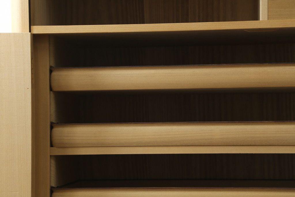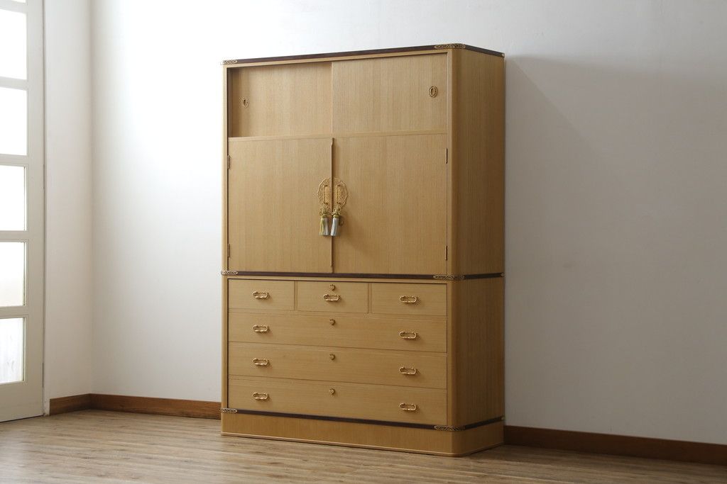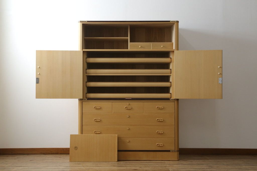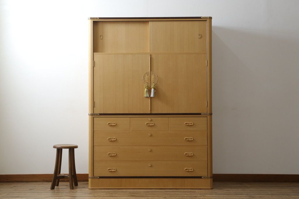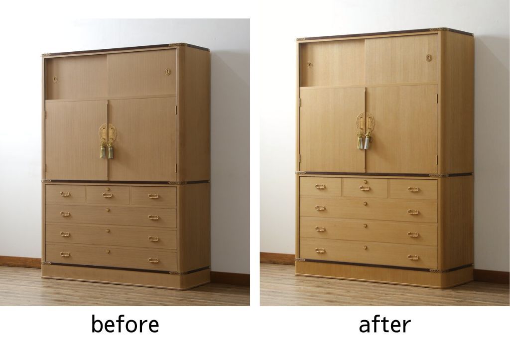 和箪笥 > 総桐箪笥の見た目を変えずに綺麗にリペア!すべての金具を取り外し、本体の表面についている砥の粉を落として洗い出し作業。引き出しや扉等の可動部の調整をし、蜜蝋ワックスにて仕上げ。(桐たんす、着物箪笥、引き出し、衣装箪笥、チェスト)