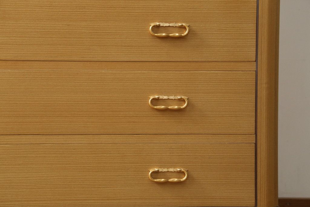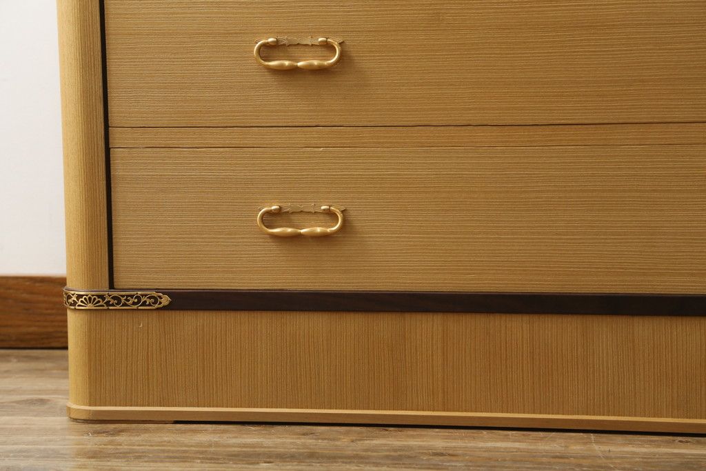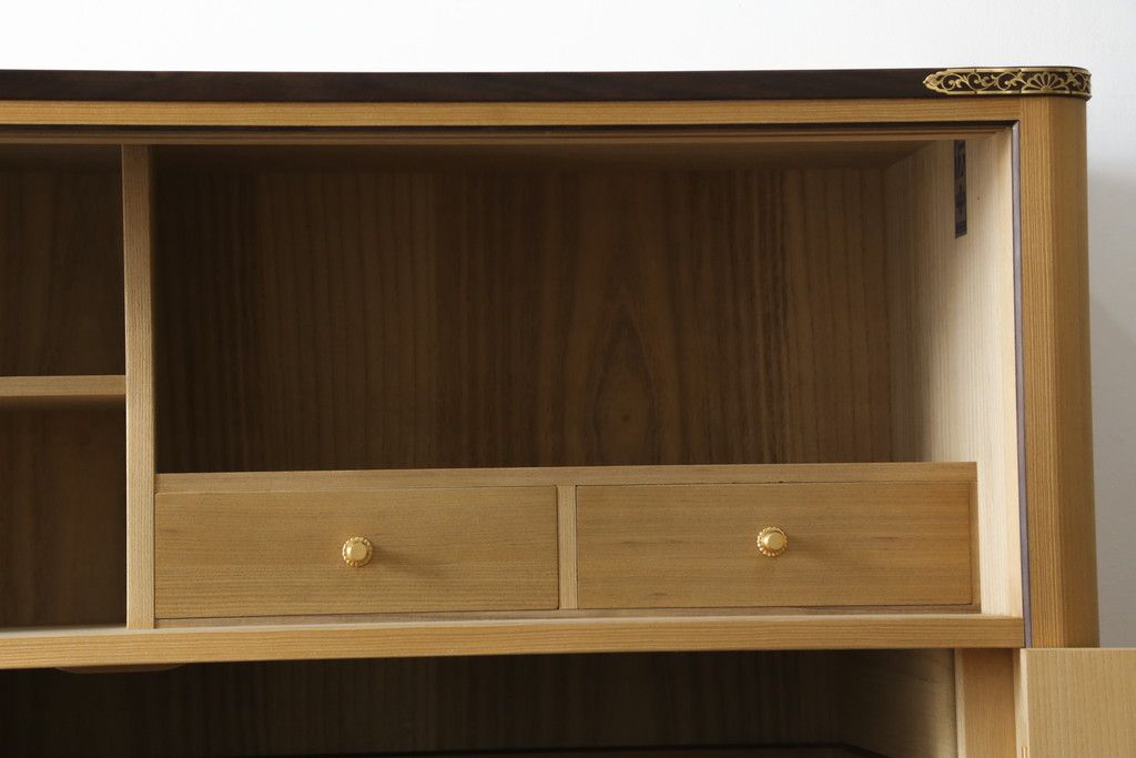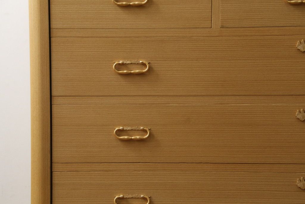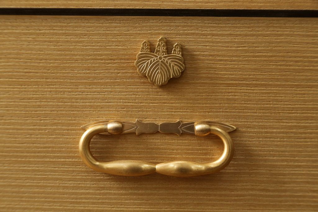セミオーダー家具実績 > 総桐箪笥の見た目を変えずに綺麗にリペア!すべての金具を取り外し、本体の表面についている砥の粉を落として洗い出し作業。引き出しや扉等の可動部の調整をし、蜜蝋ワックスにて仕上げ。(桐たんす、着物箪笥、引き出し、衣装箪笥、チェスト)