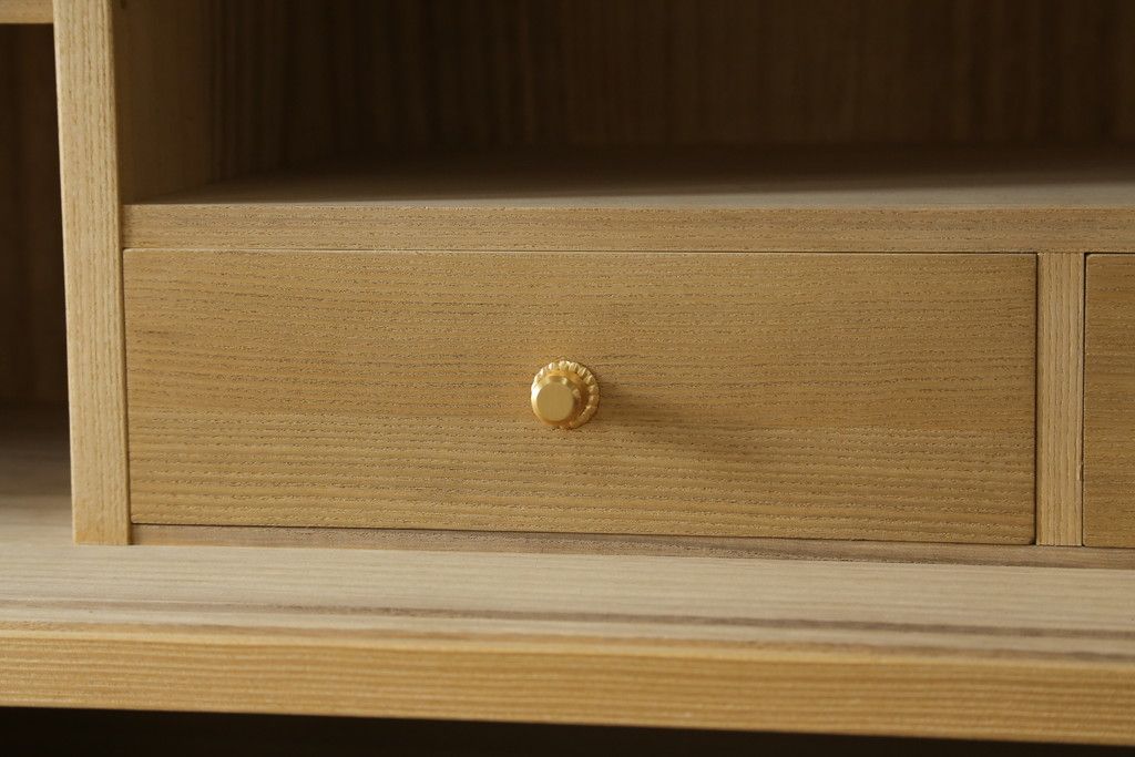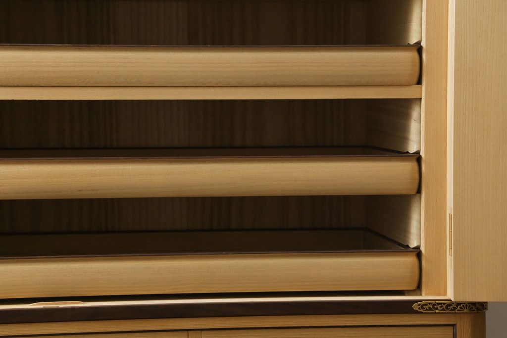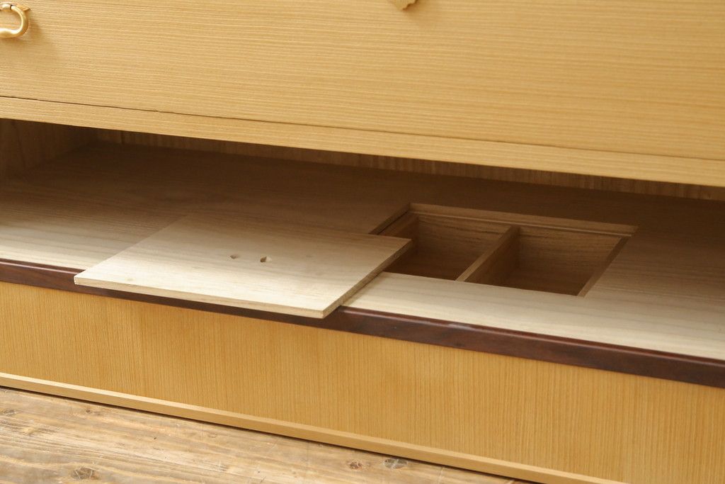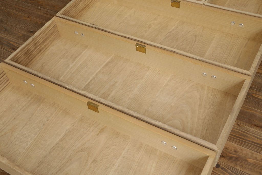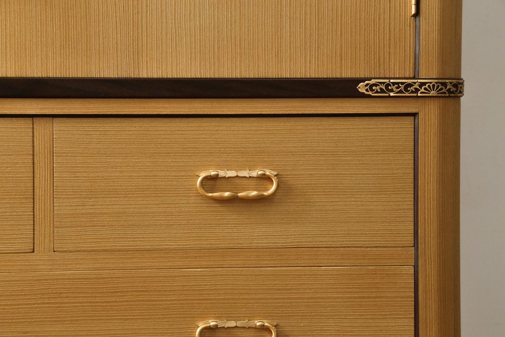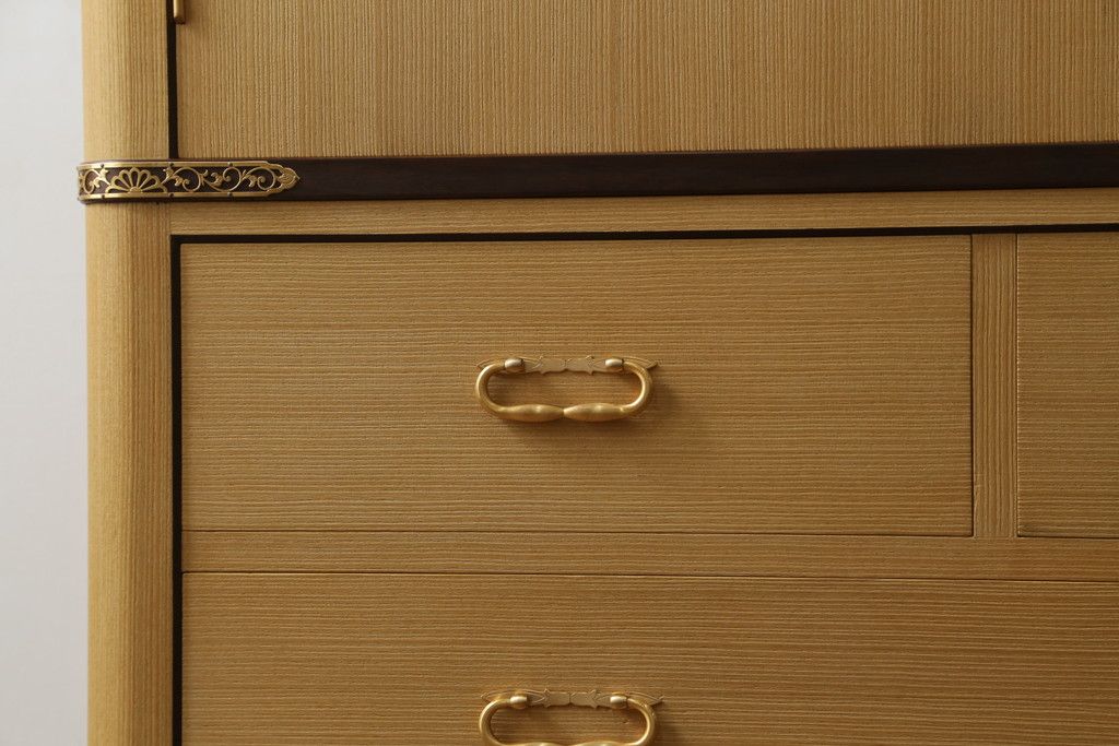 セミオーダー家具実績 > 総桐箪笥の見た目を変えずに綺麗にリペア!すべての金具を取り外し、本体の表面についている砥の粉を落として洗い出し作業。引き出しや扉等の可動部の調整をし、蜜蝋ワックスにて仕上げ。(桐たんす、着物箪笥、引き出し、衣装箪笥、チェスト)
