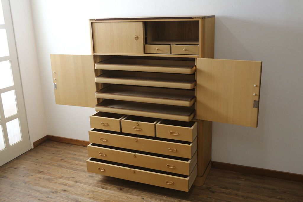 和箪笥> 着物箪笥 > 総桐箪笥の見た目を変えずに綺麗にリペア!すべての金具を取り外し、本体の表面についている砥の粉を落として洗い出し作業。引き出しや扉等の可動部の調整をし、蜜蝋ワックスにて仕上げ。(桐たんす、着物箪笥、引き出し、衣装箪笥、チェスト)