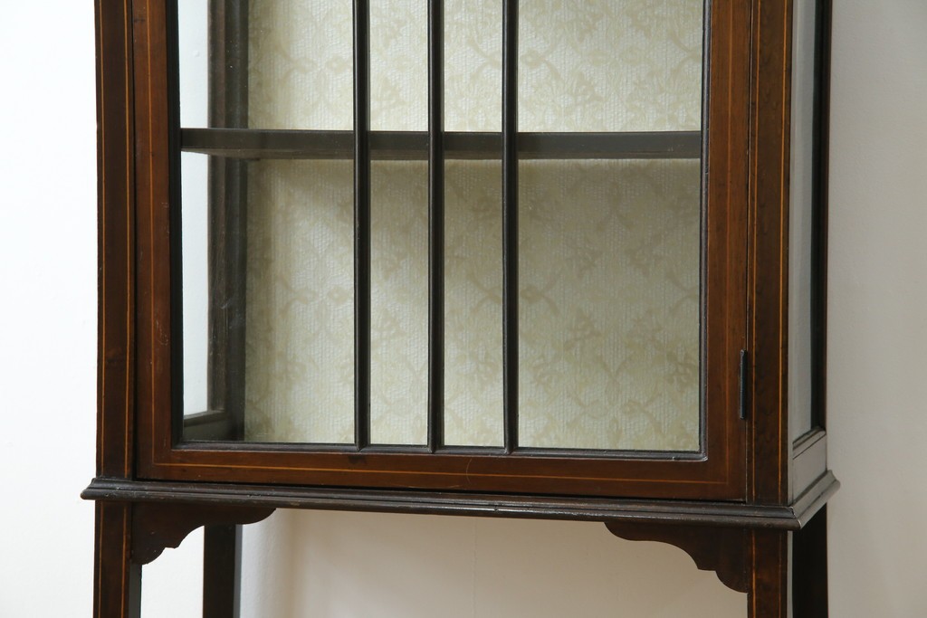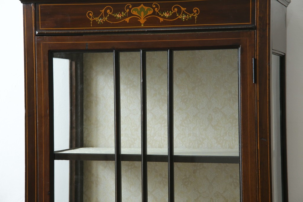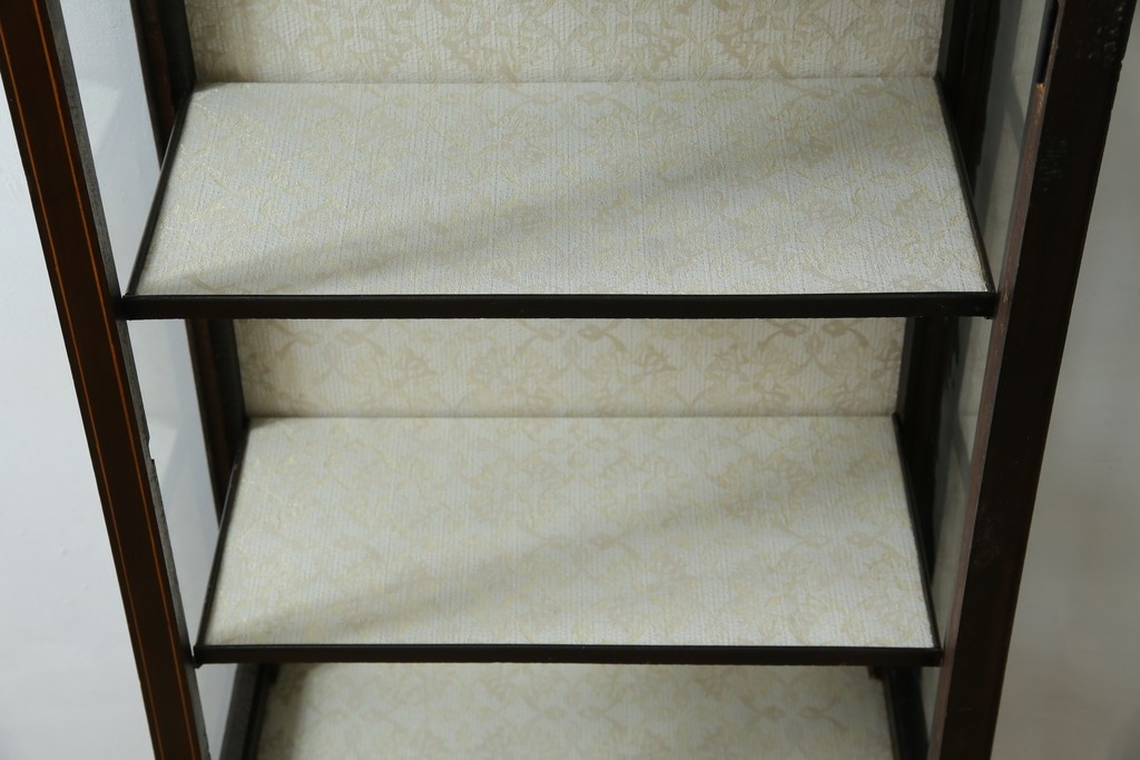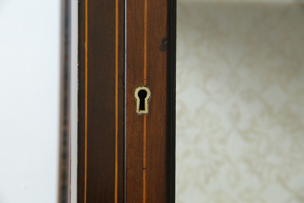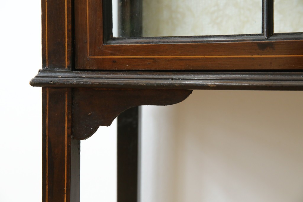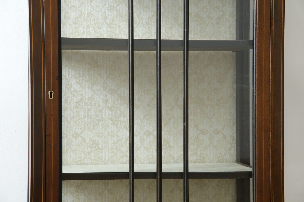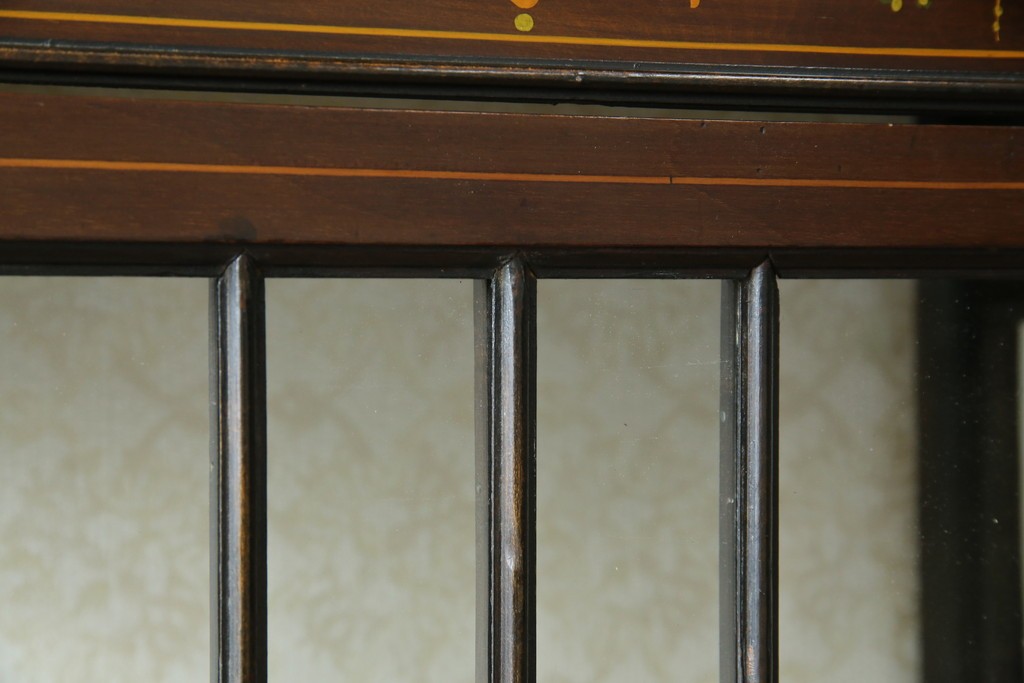 ガラスケース・ショーケース > イギリスアンティーク 希少サイズ 小振りな象嵌入り!上品な雰囲気を醸し出す縦型キャビネット(キュリオケース、ガラスケース)(R-083010)
