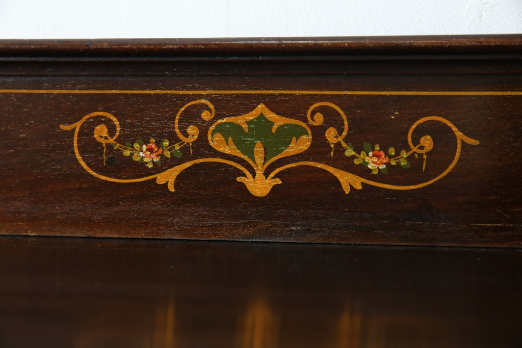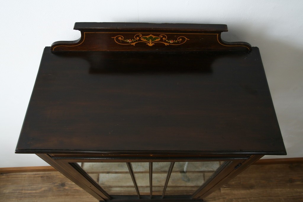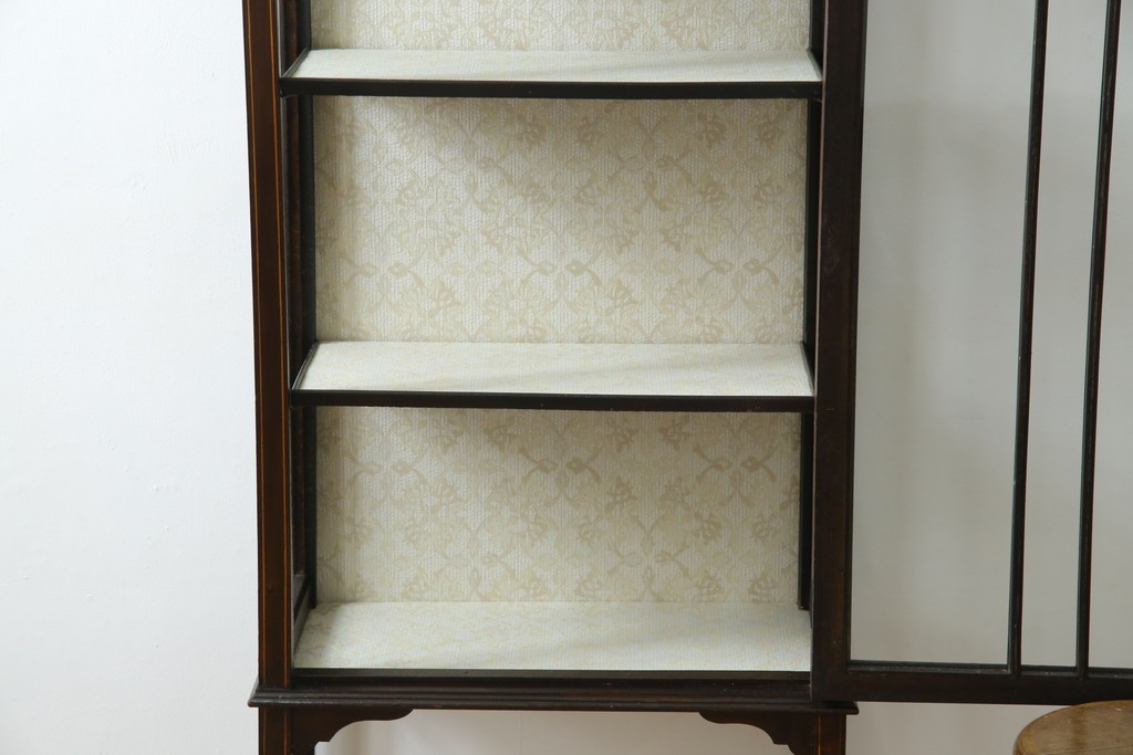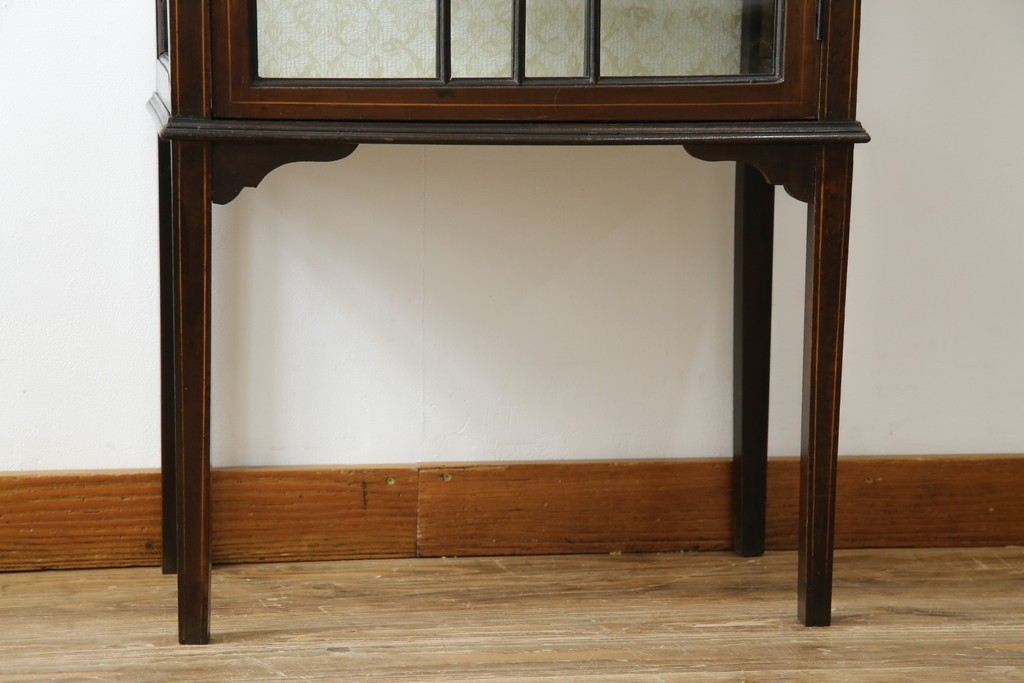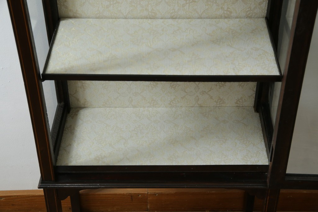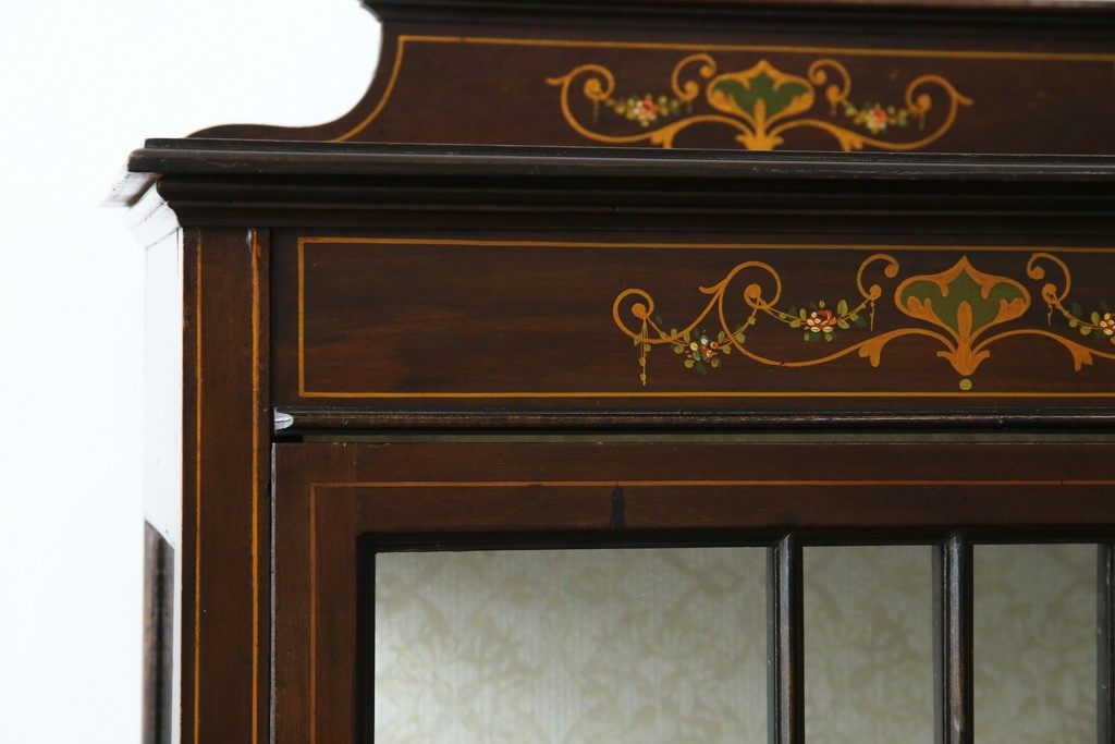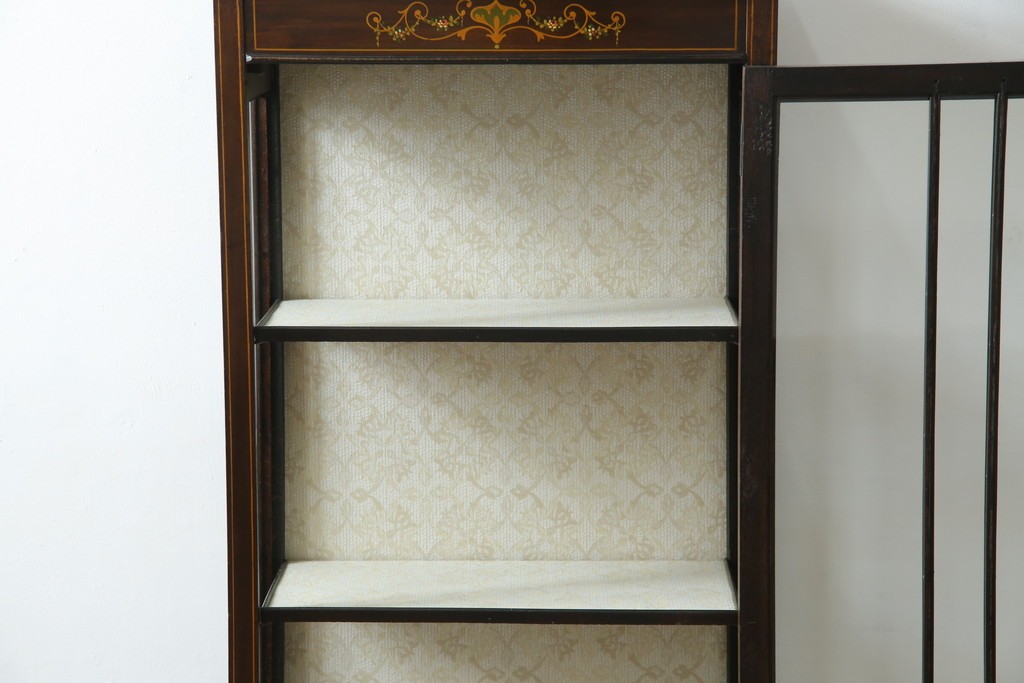 ガラスケース・ショーケース > イギリスアンティーク 希少サイズ 小振りな象嵌入り!上品な雰囲気を醸し出す縦型キャビネット(キュリオケース、ガラスケース)(R-083010)