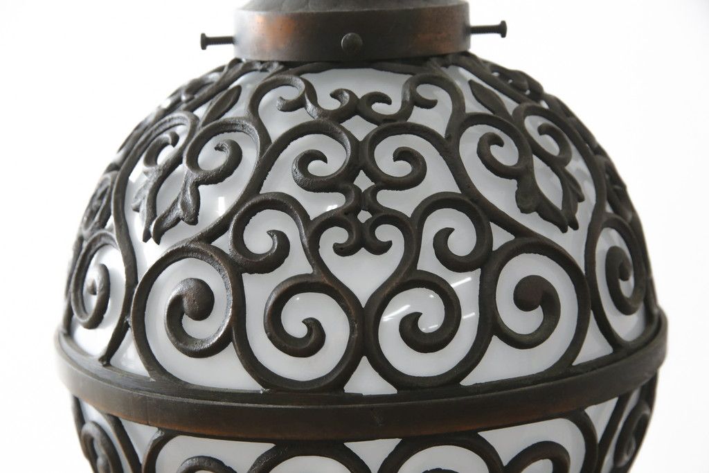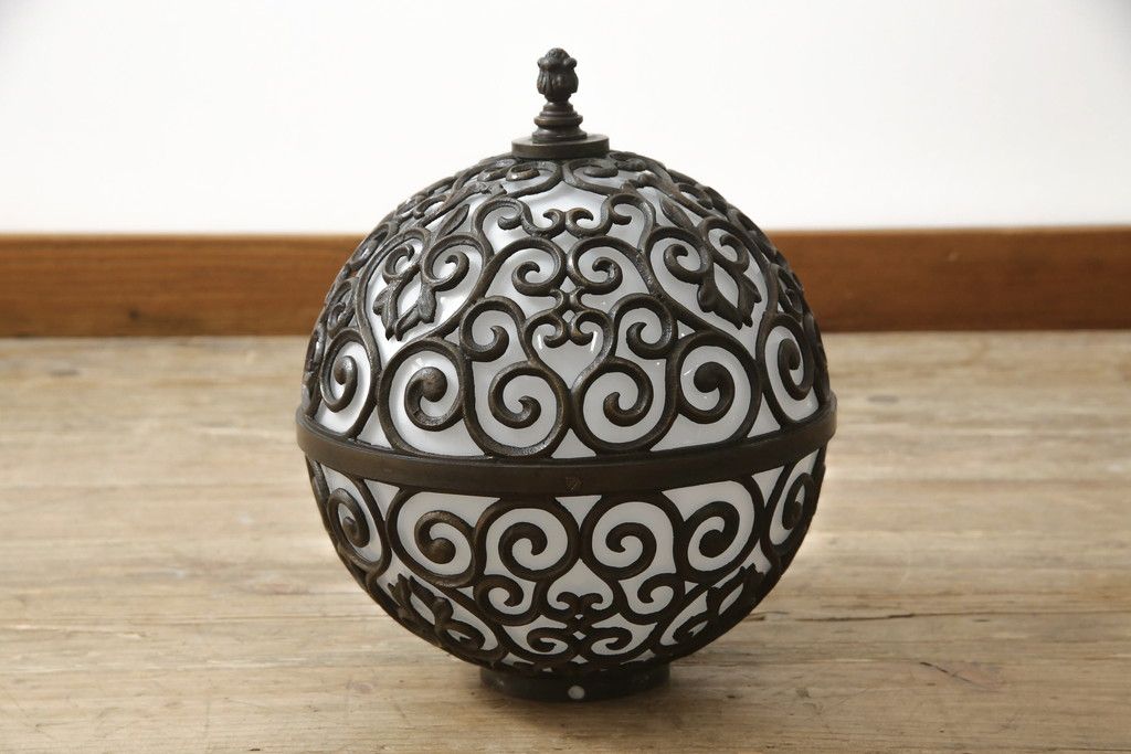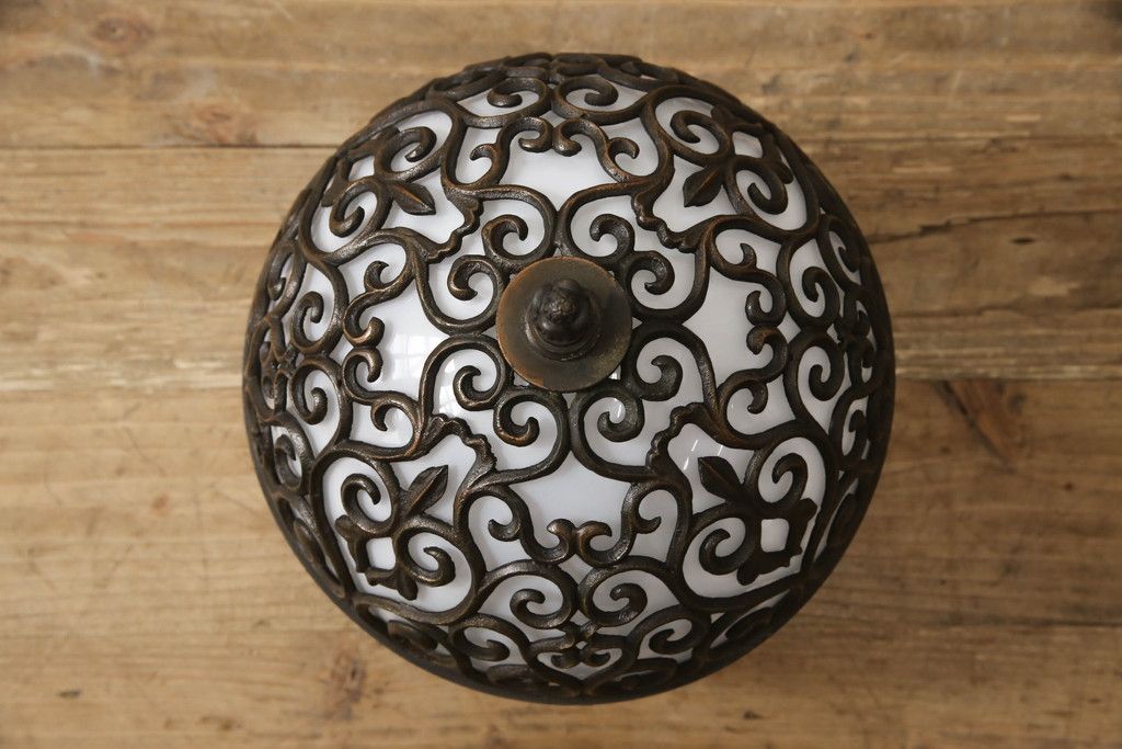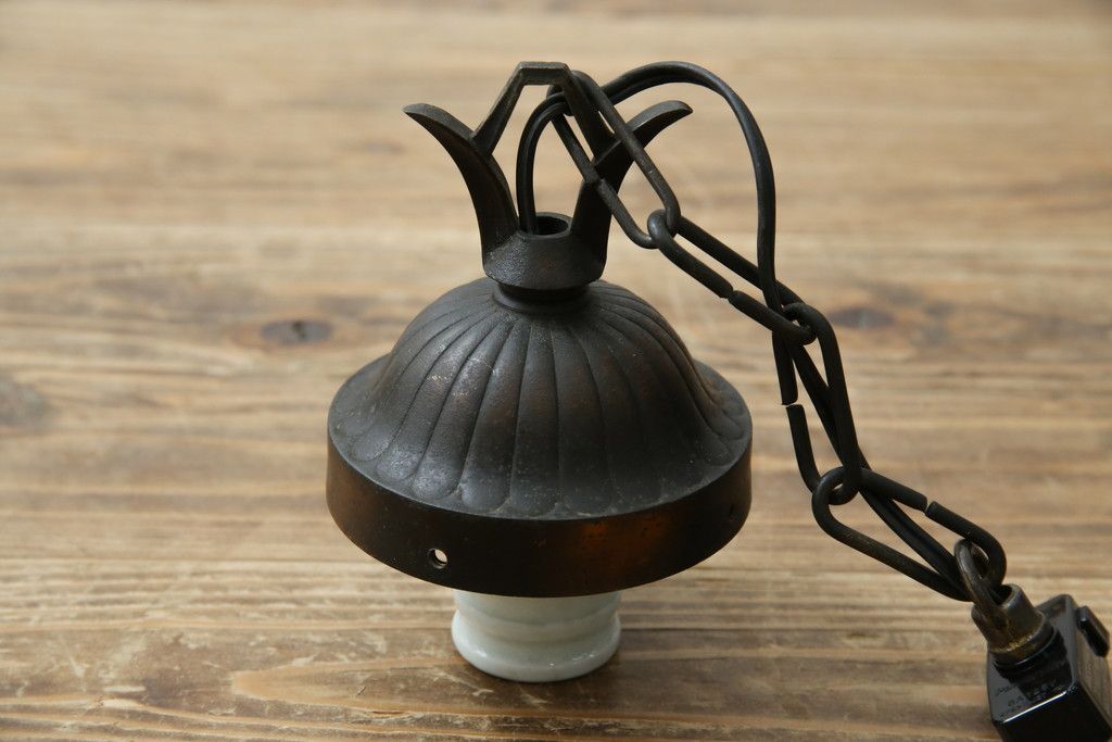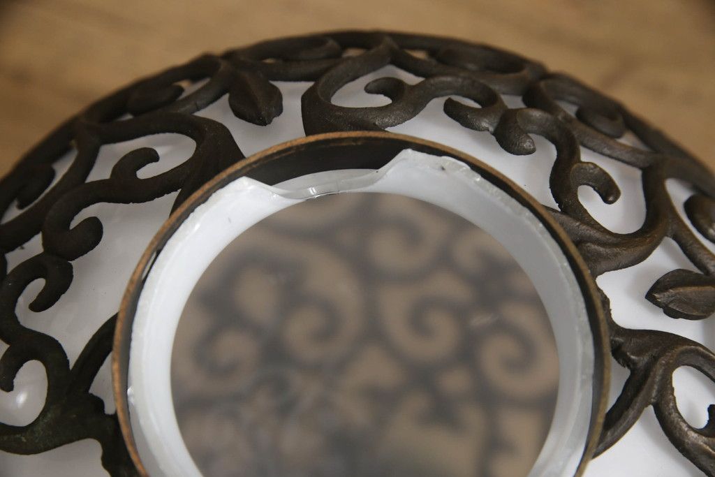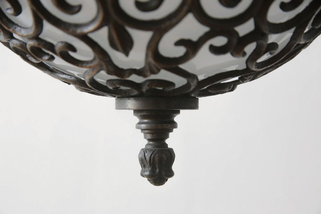 和製アンティーク 唐草透かしの装飾が魅力的な銅製のペンダントライト(天井照明、吊り下げ照明)(R-083059)