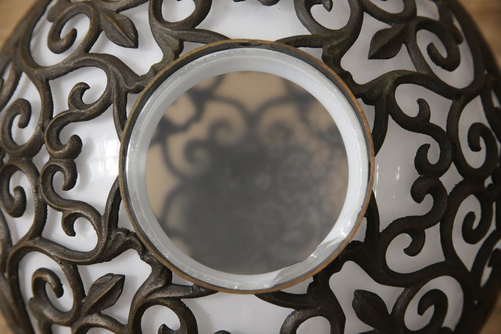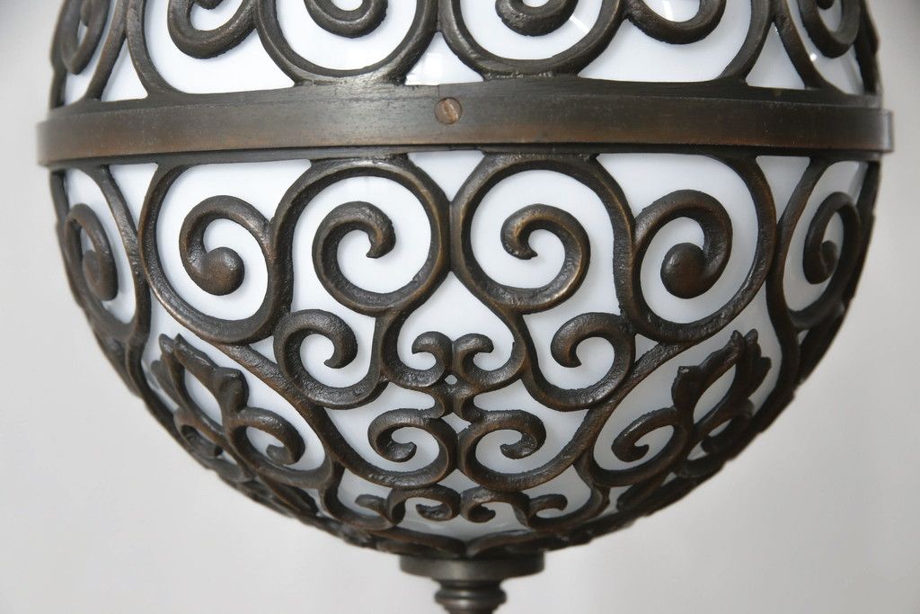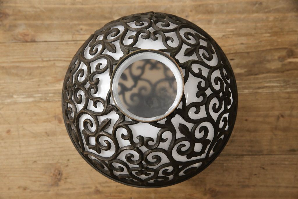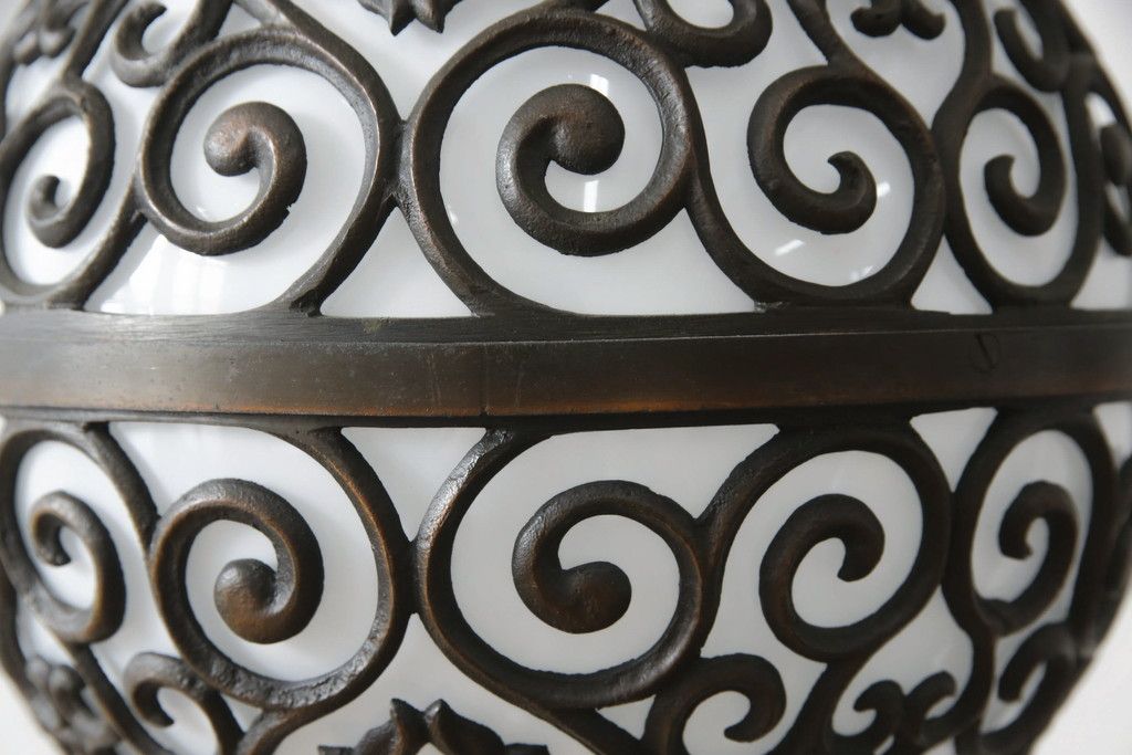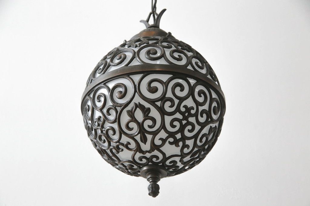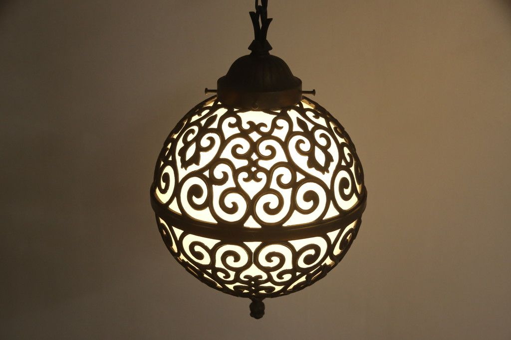 和製アンティーク 唐草透かしの装飾が魅力的な銅製のペンダントライト(天井照明、吊り下げ照明)(R-083059)
