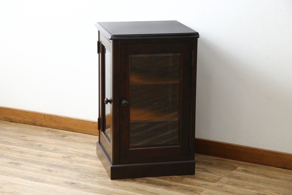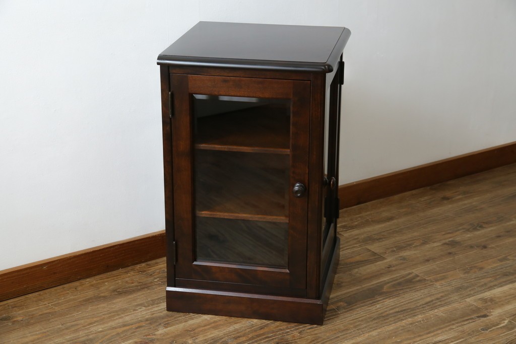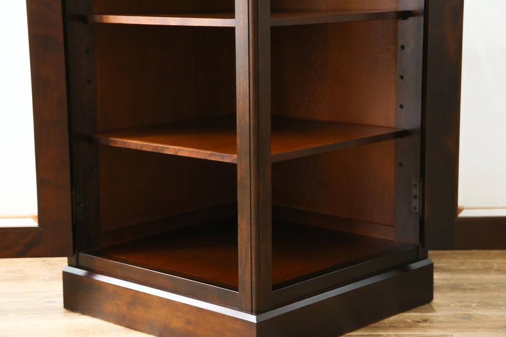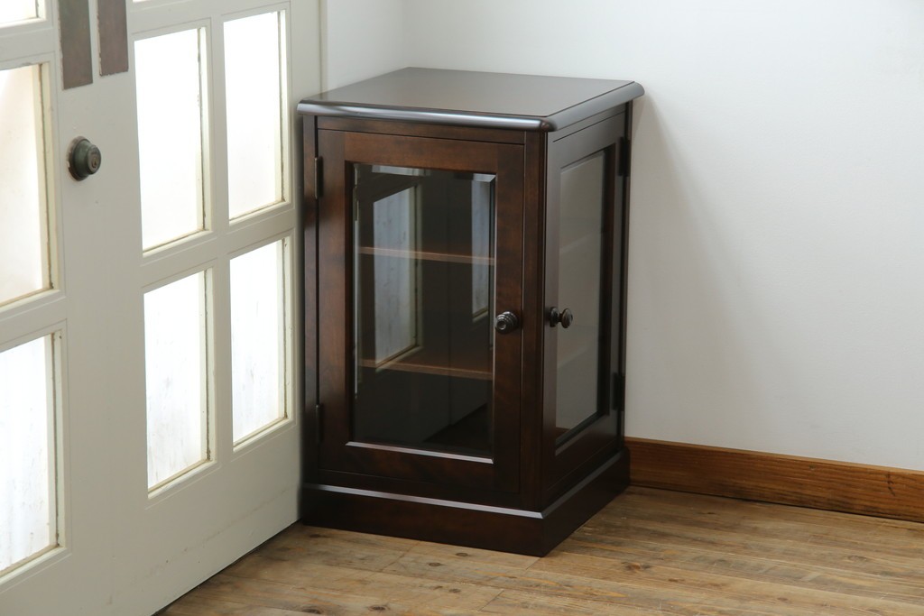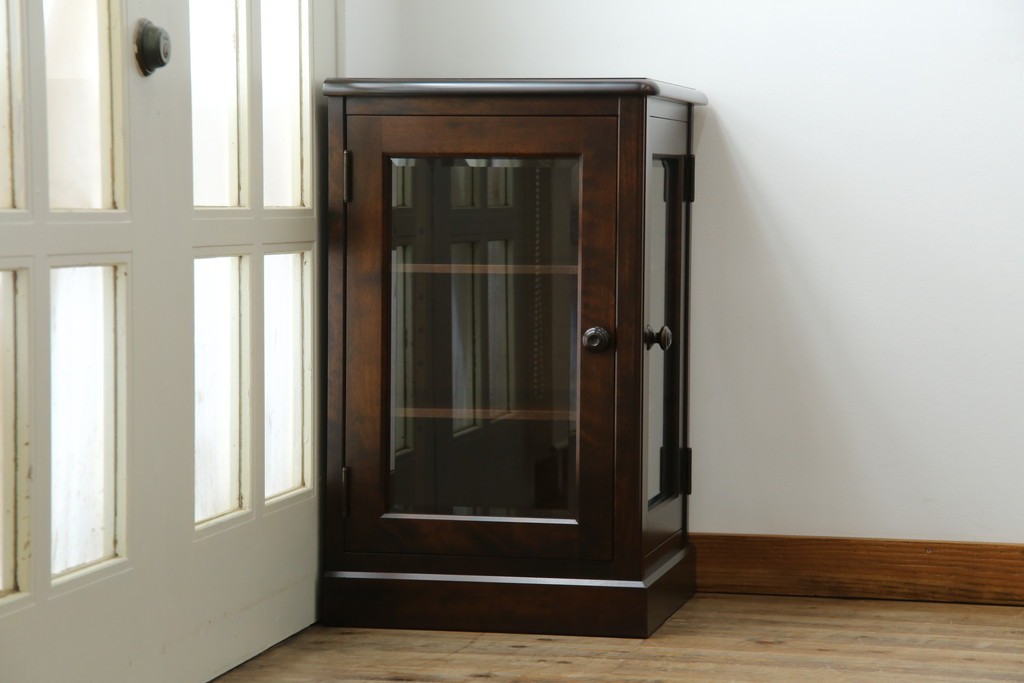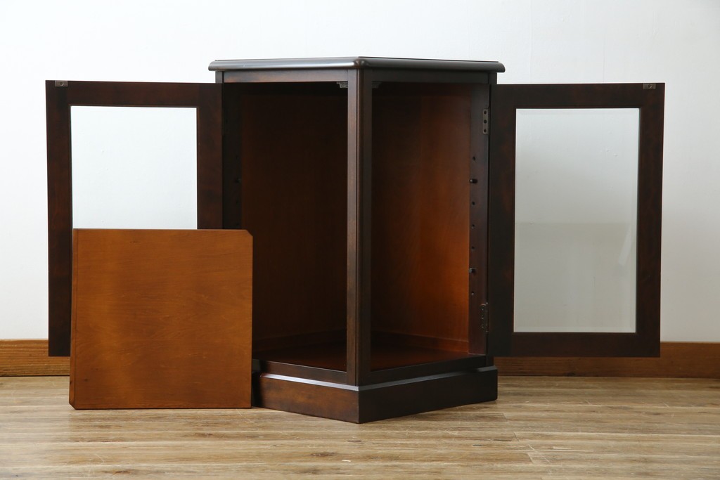 中古 美品 北海道民芸家具 二面ガラスの小振りなサイドキャビネット(コーナーキャビネット、収納棚、戸棚)(R-083104)