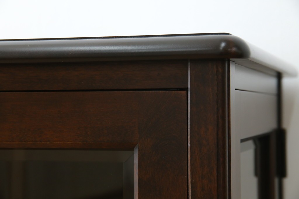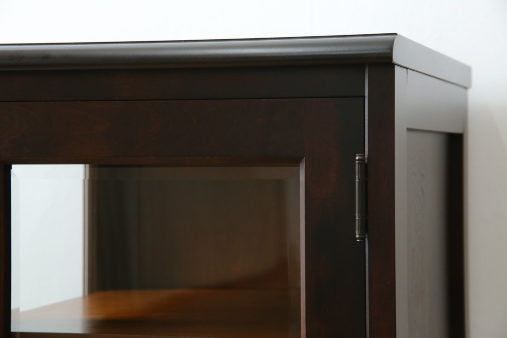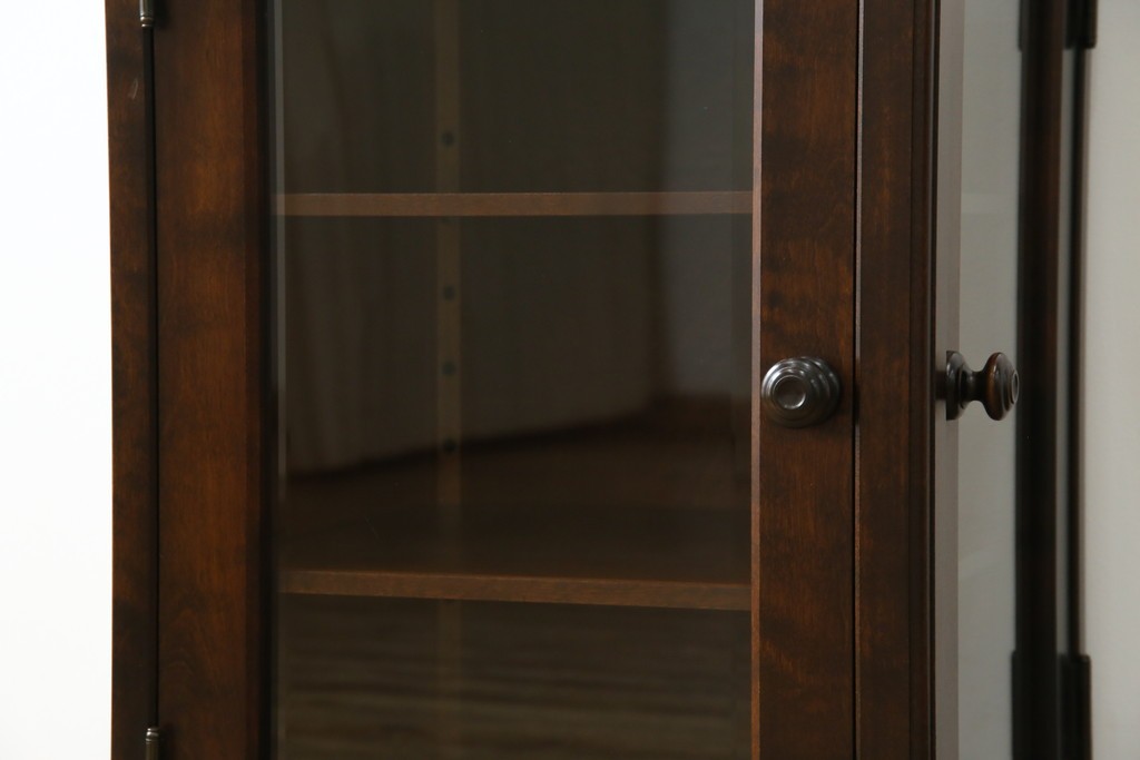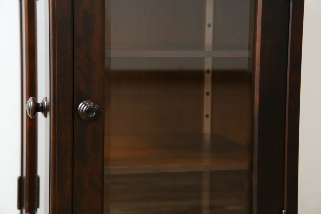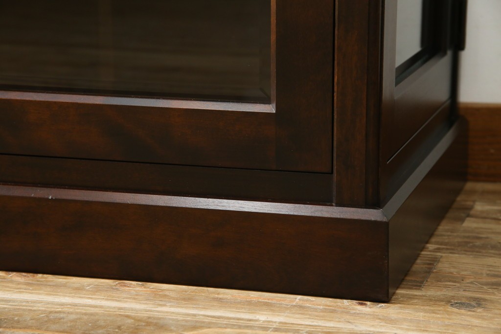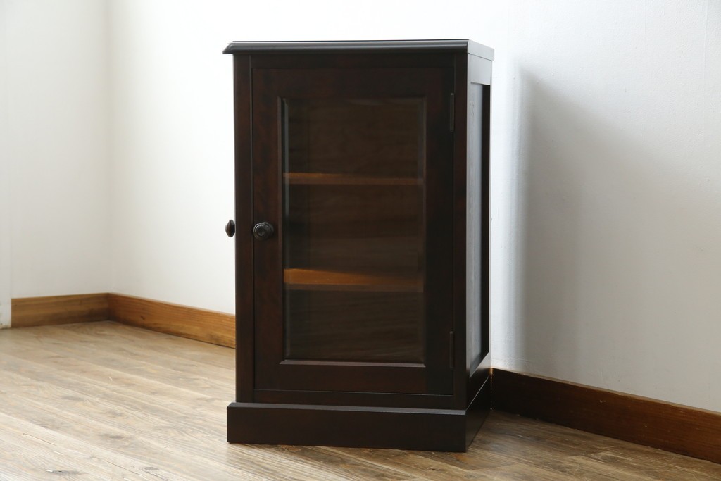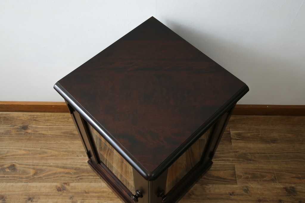 中古 美品 北海道民芸家具 二面ガラスの小振りなサイドキャビネット(コーナーキャビネット、収納棚、戸棚)(R-083104)
