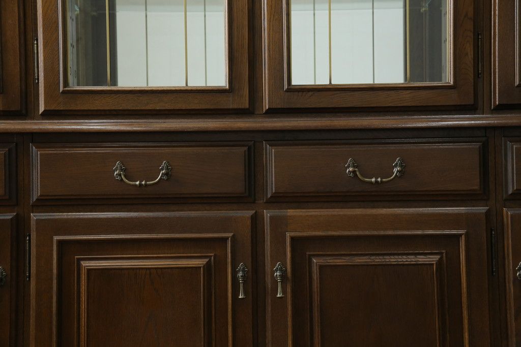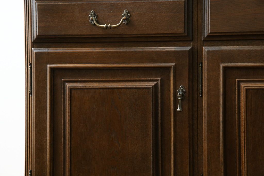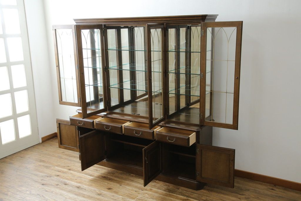 ラフジュ工房> キャビネット・戸棚> 食器棚・カップボード > 中古 美品 カリモク家具(karimoku) 希少な廃番品!! domani(ドマーニ) QUEENS LIFE(クイーンズライフ) 迫力のあるフルサイズのエレガントなキャビネット(飾り棚、収納棚、戸棚、食器棚、カップボード、ガラスケース、ショーケース、コレクションケース、キュリオケース)(R-083109)