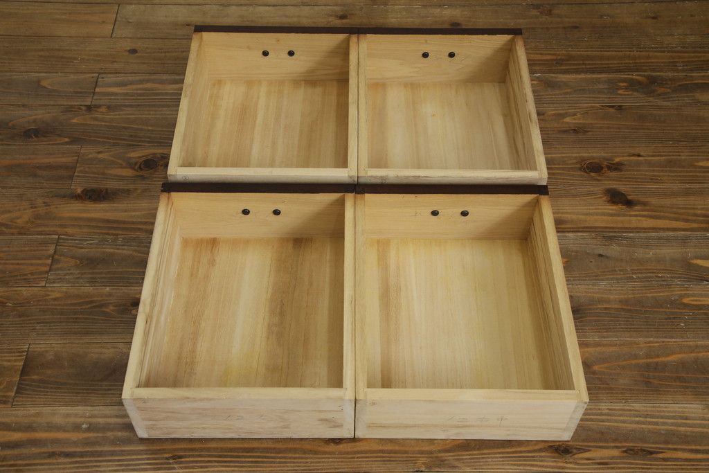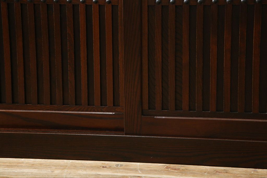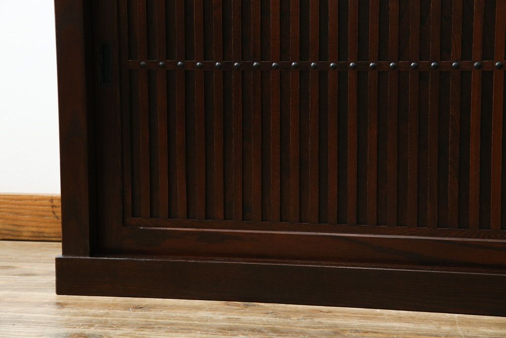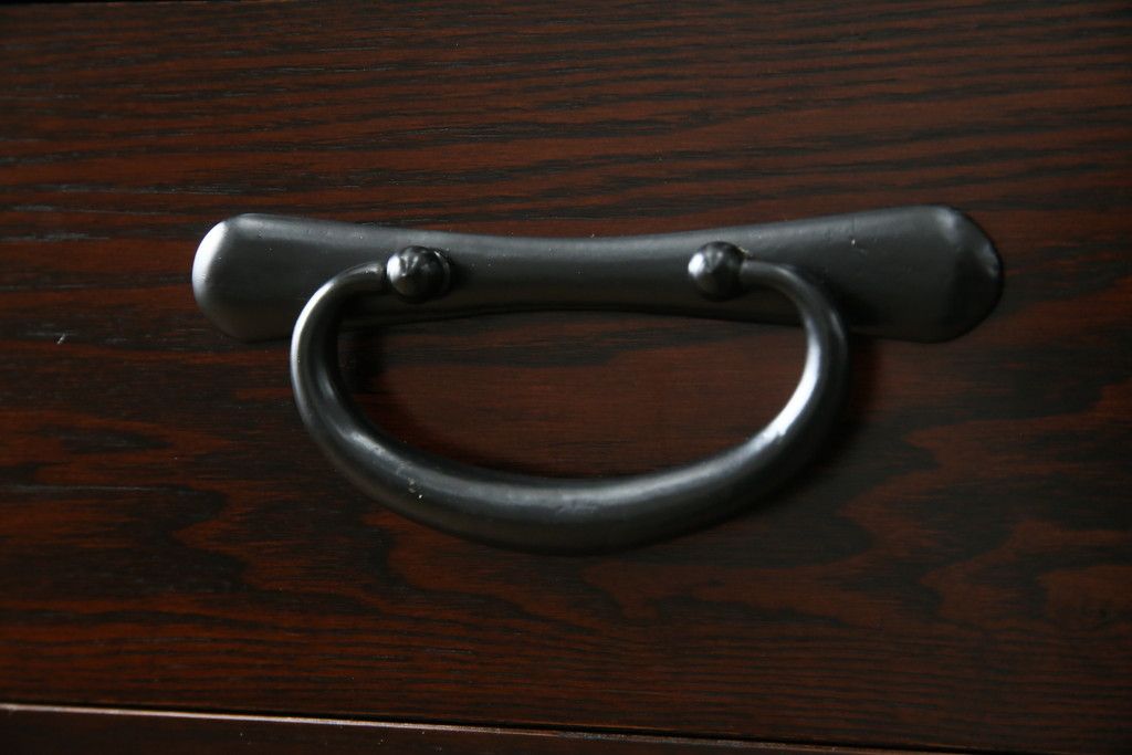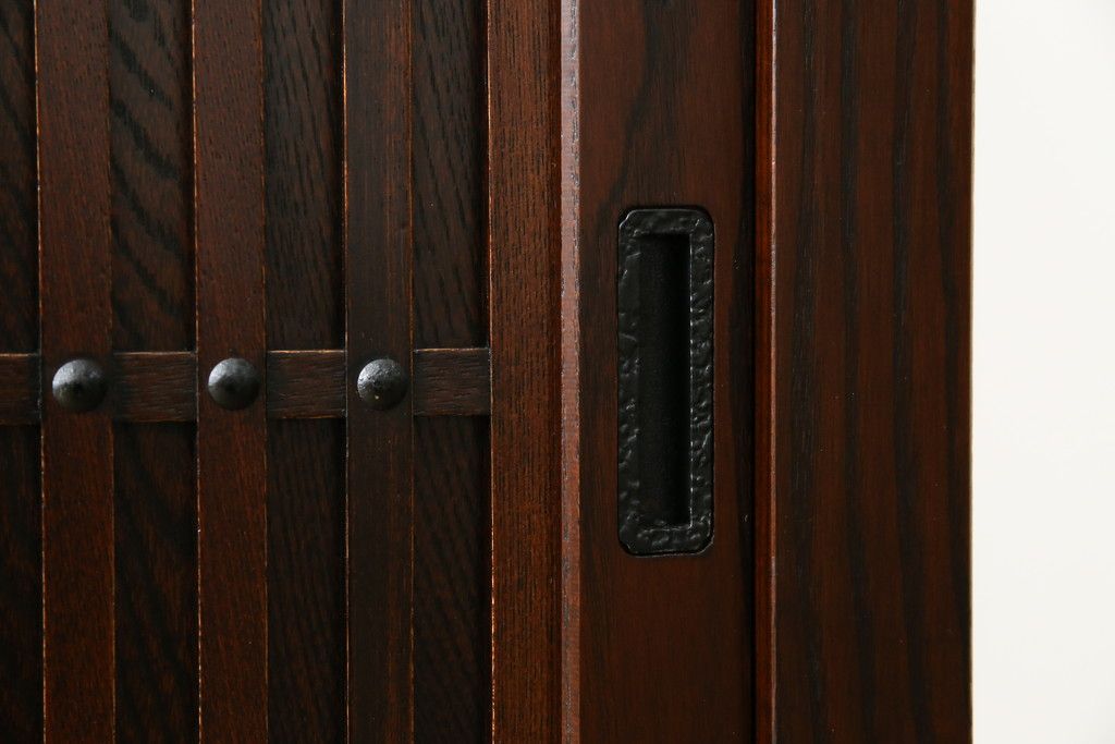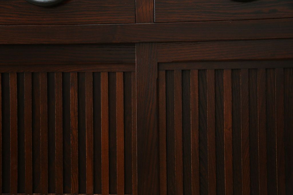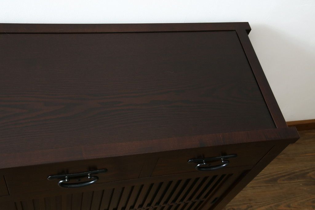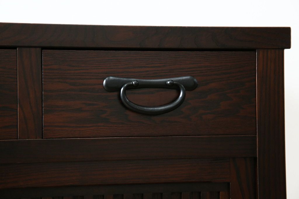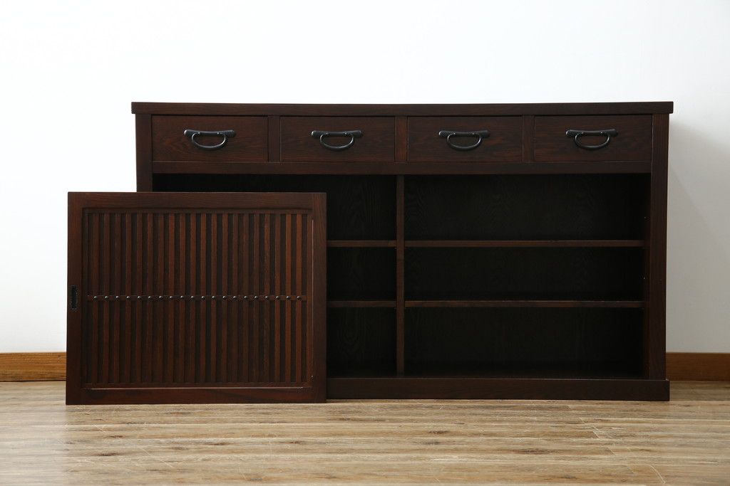 民芸家具 > 中古 美品!! 三面栗(クリ)材 引き出し4杯付き 落ち着いたデザインの水屋箪笥サイドボード(リビングボード、サイドキャビネット、食器棚、カップボード、収納棚、戸棚)(R-083113)