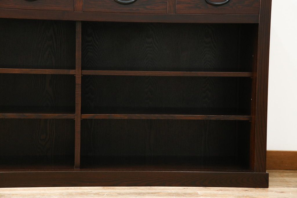 キャビネット・戸棚> 食器棚・カップボード > 中古 美品!! 三面栗(クリ)材 引き出し4杯付き 落ち着いたデザインの水屋箪笥サイドボード(リビングボード、サイドキャビネット、食器棚、カップボード、収納棚、戸棚)(R-083113)