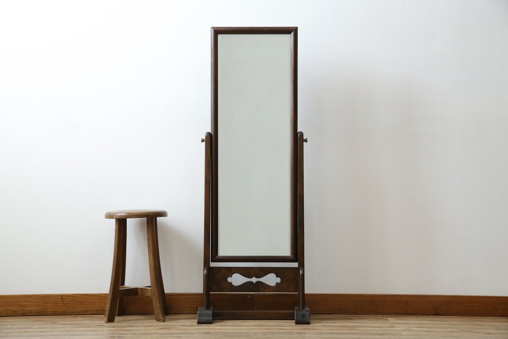 ドレッサー・鏡台 > 中古 美品 松本民芸家具 透かし彫りが上品なB型姿見 定価約10万円相当 (R-083165)