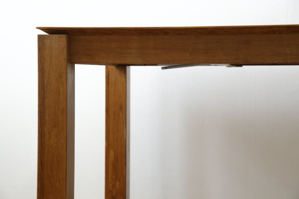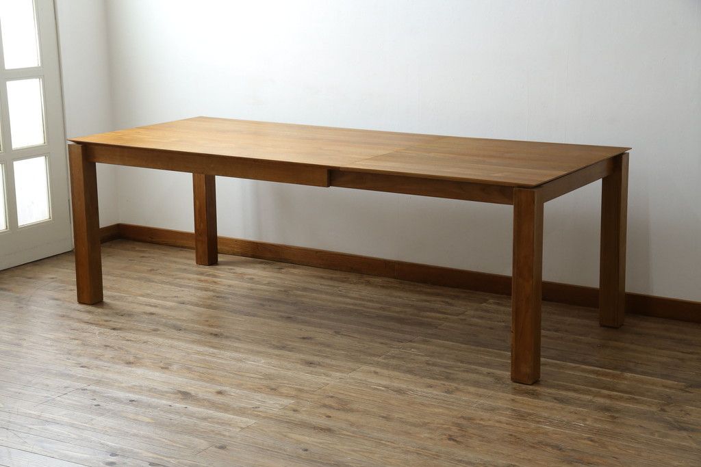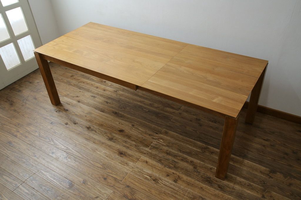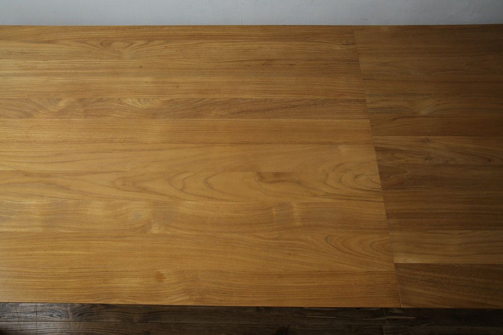 テーブル > 中古 ベルギー ETHNICRAFT(エスニクラフト) モダンシャープデザイン チーク無垢材 伸縮式 温もりのある風合いがナチュラルインテリアにおすすめのダイニングテーブル(エクステンションテーブル、4人掛け、6人掛け)(定価約46万円)(R-083166)