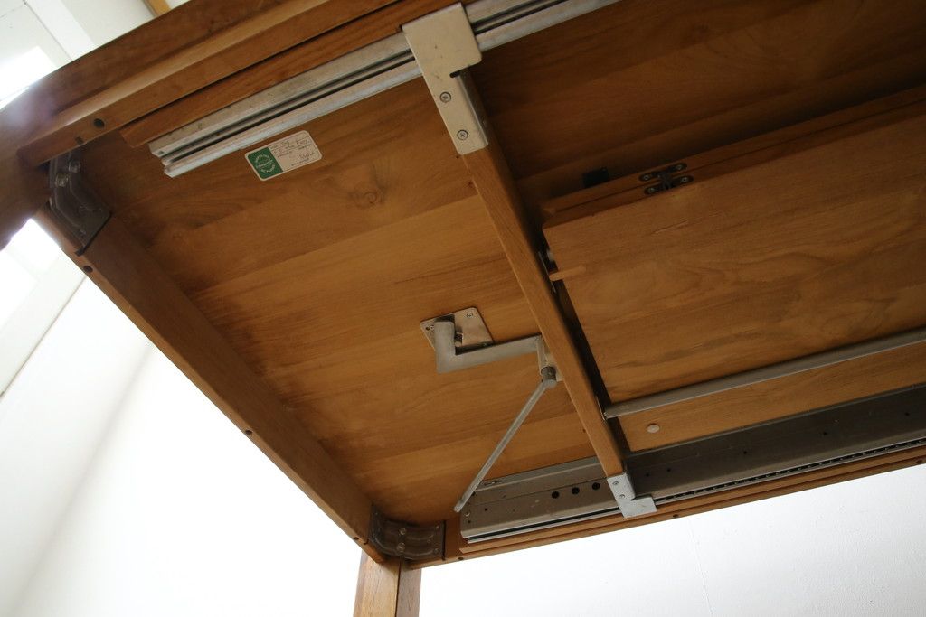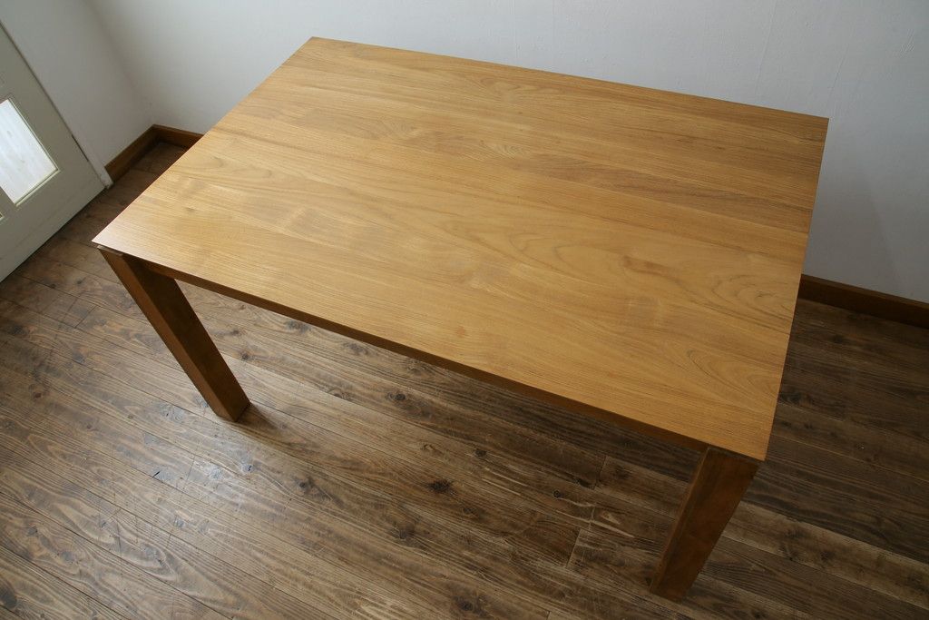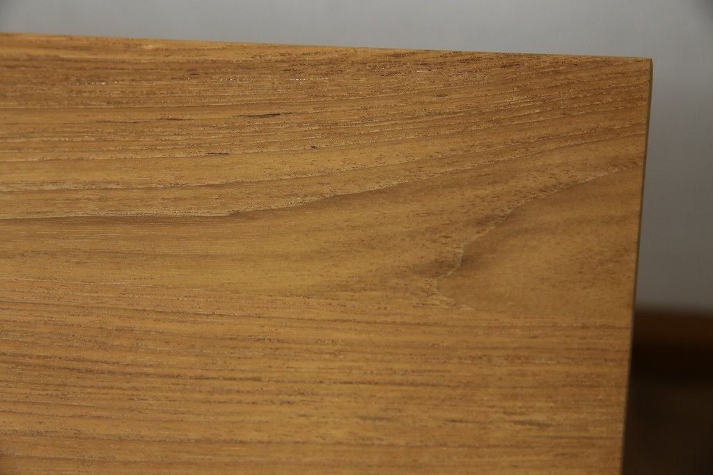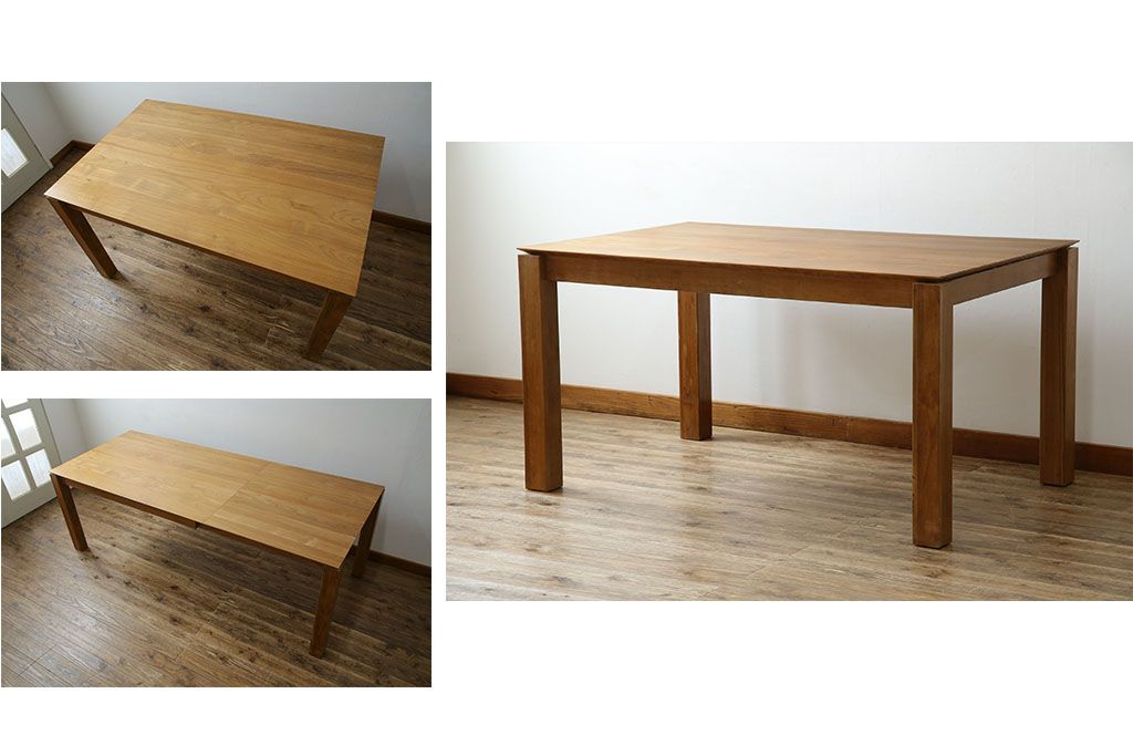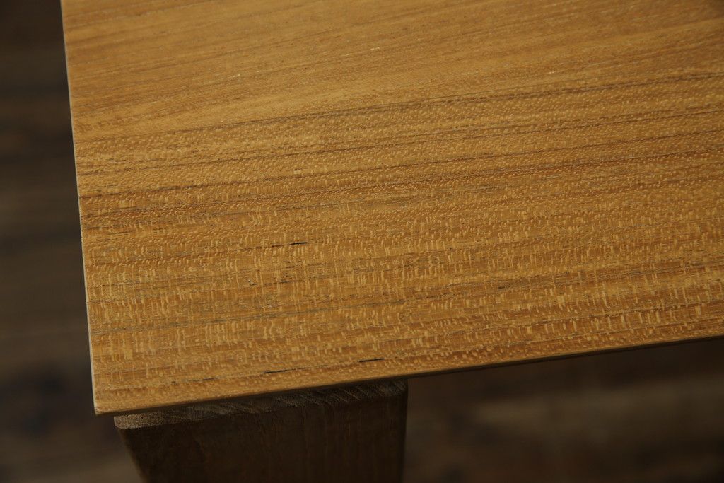 テーブル > 中古 ベルギー ETHNICRAFT(エスニクラフト) モダンシャープデザイン チーク無垢材 伸縮式 温もりのある風合いがナチュラルインテリアにおすすめのダイニングテーブル(エクステンションテーブル、4人掛け、6人掛け)(定価約46万円)(R-083166)