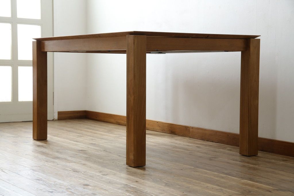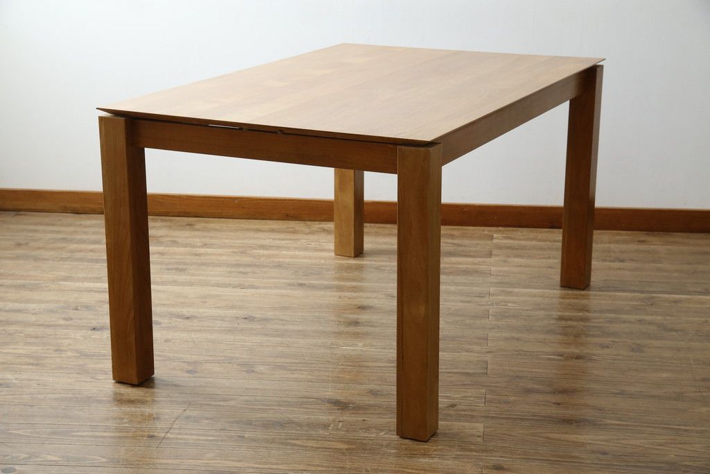 中古 ベルギー ETHNICRAFT(エスニクラフト) モダンシャープデザイン チーク無垢材 伸縮式 温もりのある風合いがナチュラルインテリアにおすすめのダイニングテーブル(エクステンションテーブル、4人掛け、6人掛け)(定価約46万円)(R-083166)です。