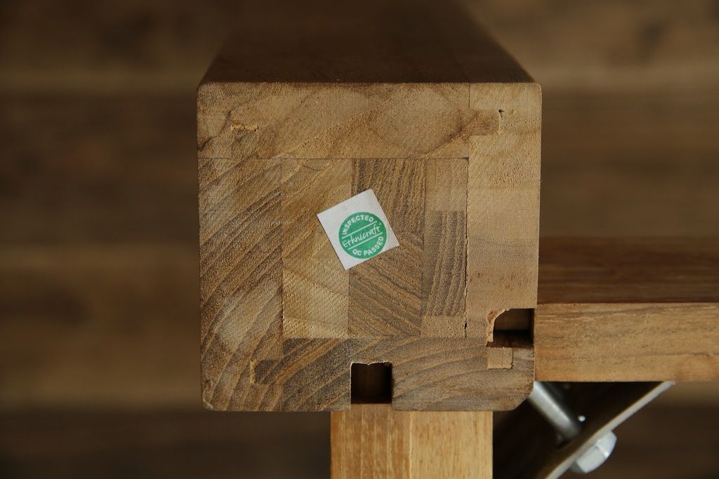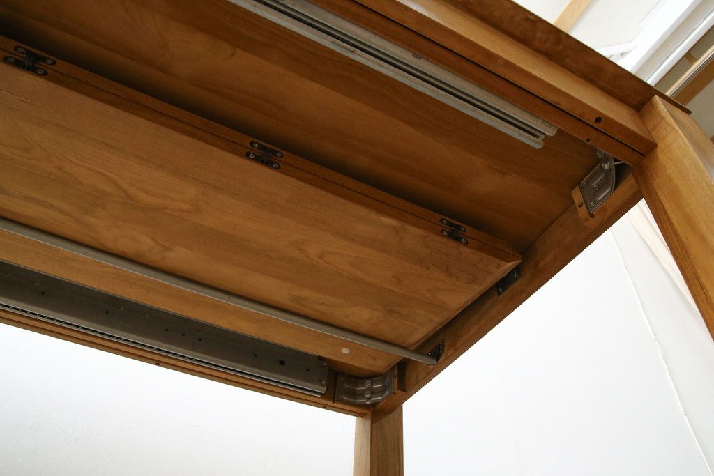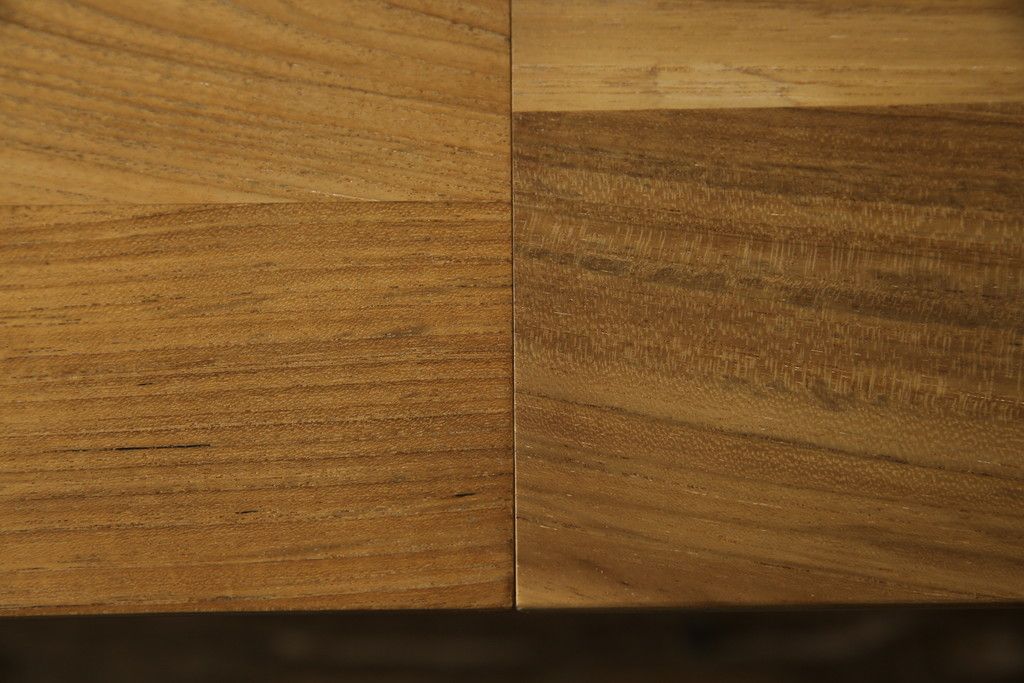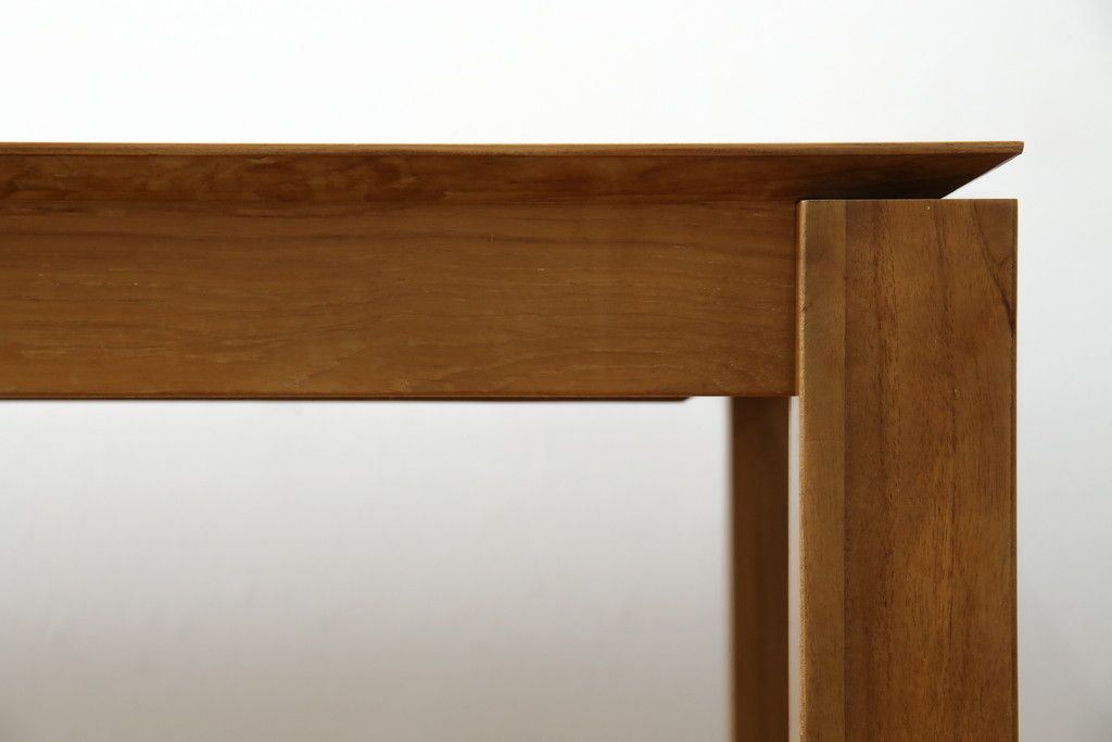 テーブル> 4人用ダイニングテーブル > 中古 ベルギー ETHNICRAFT(エスニクラフト) モダンシャープデザイン チーク無垢材 伸縮式 温もりのある風合いがナチュラルインテリアにおすすめのダイニングテーブル(エクステンションテーブル、4人掛け、6人掛け)(定価約46万円)(R-083166)