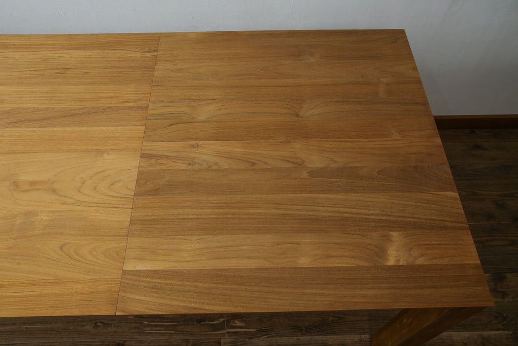 中古 ベルギー ETHNICRAFT(エスニクラフト) モダンシャープデザイン チーク無垢材 伸縮式 温もりのある風合いがナチュラルインテリアにおすすめのダイニングテーブル(エクステンションテーブル、4人掛け、6人掛け)(定価約46万円)(R-083166)