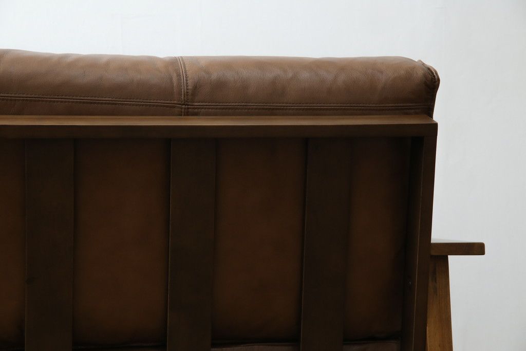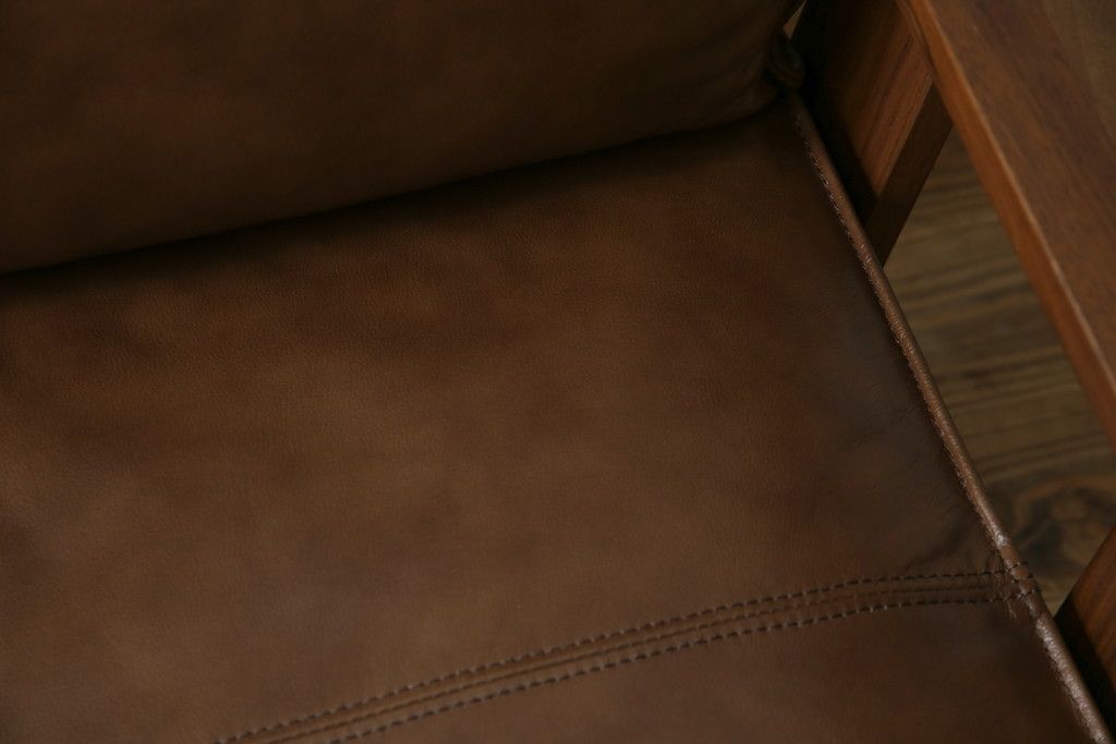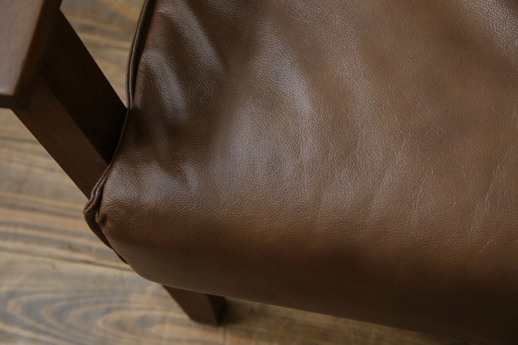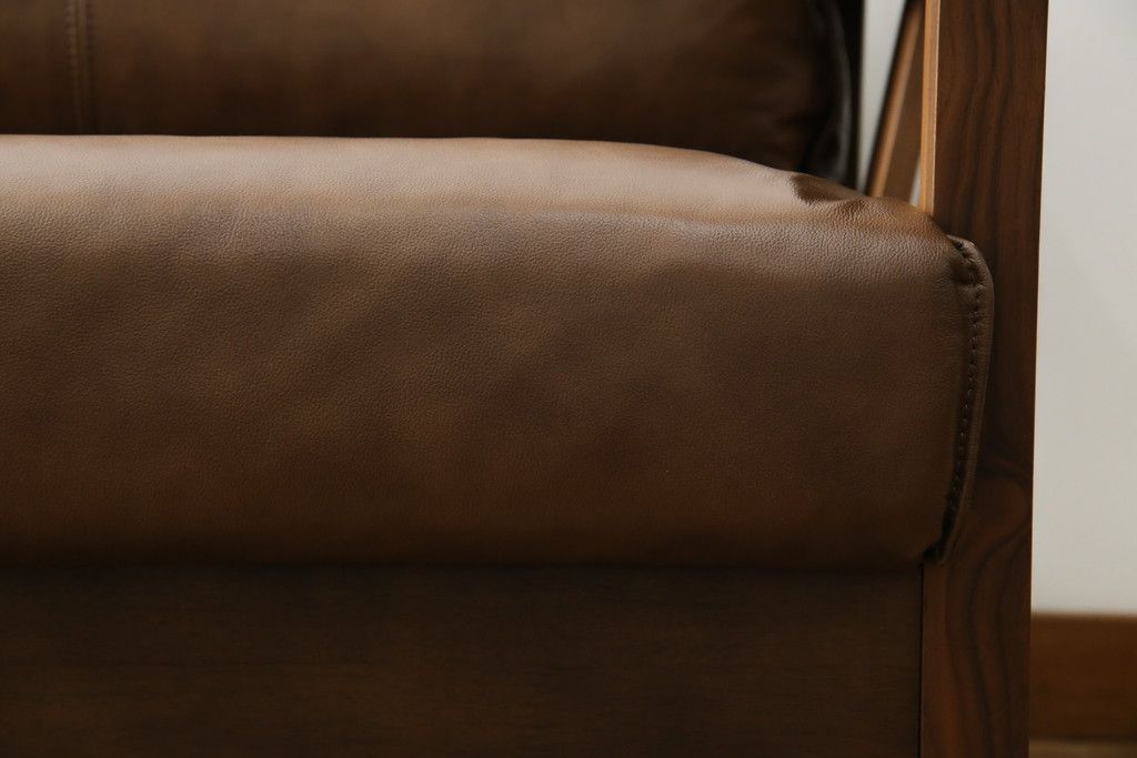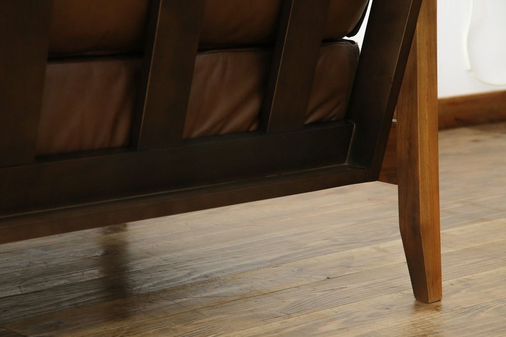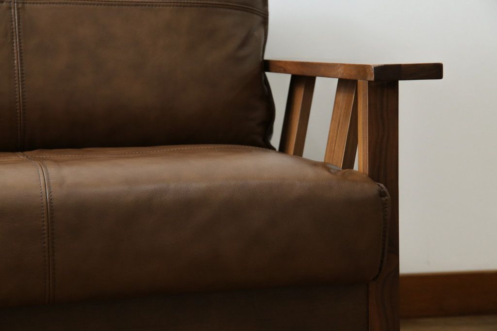 ソファ> 2人掛けソファ > 中古 超美品 ウォールナット材 革製(レザー) 木製フレームが美しい!!カフェ風インテリアにもぴったりな2.5人掛けソファ(2P、2.5P、3P、2人掛け、3人掛け)(定価約16万円)(R-083173)