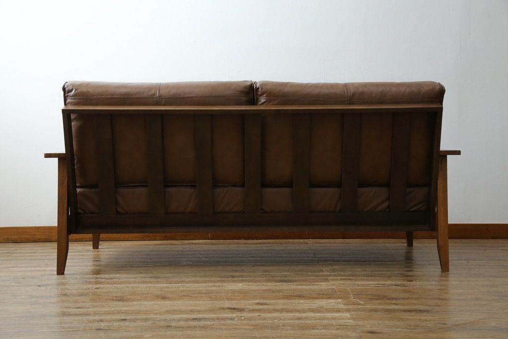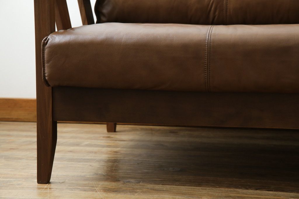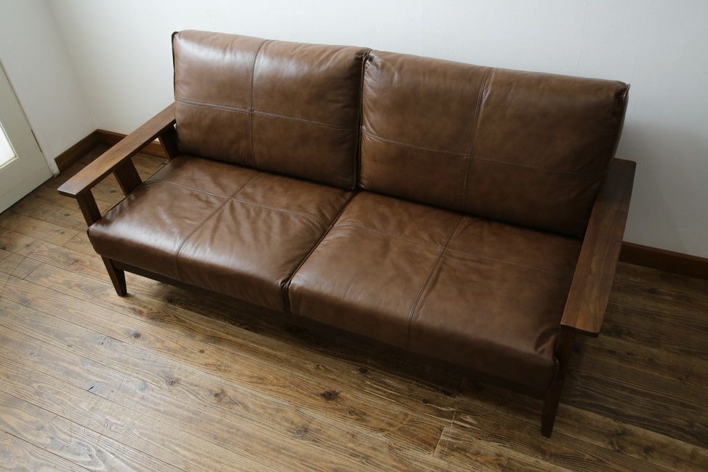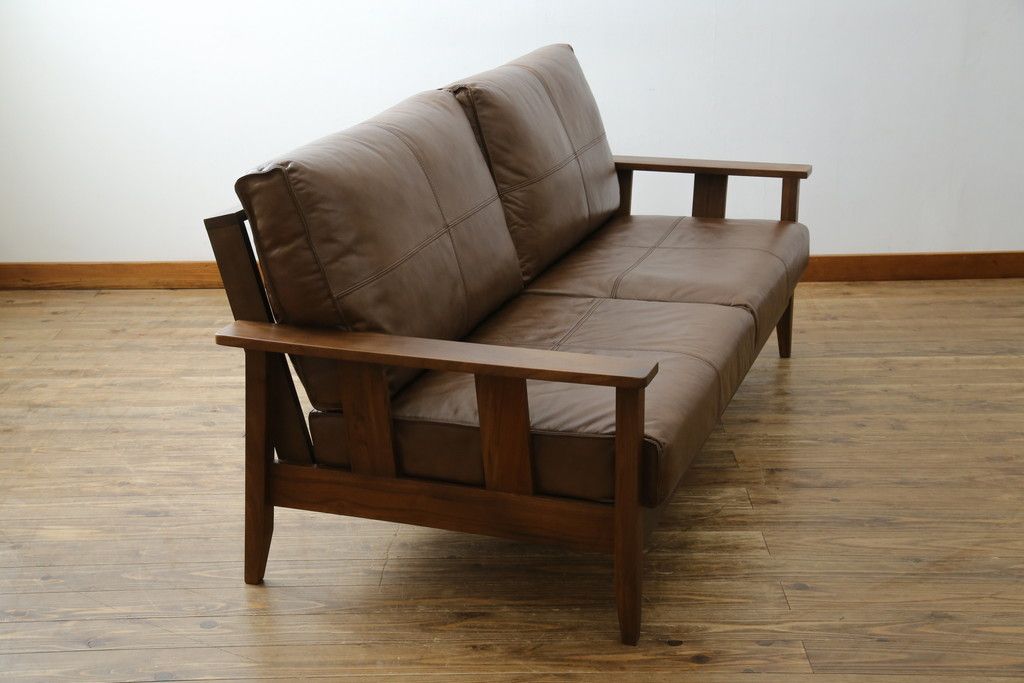 中古 超美品 ウォールナット材 革製(レザー) 木製フレームが美しい!!カフェ風インテリアにもぴったりな2.5人掛けソファ(2P、2.5P、3P、2人掛け、3人掛け)(定価約16万円)(R-083173)です。