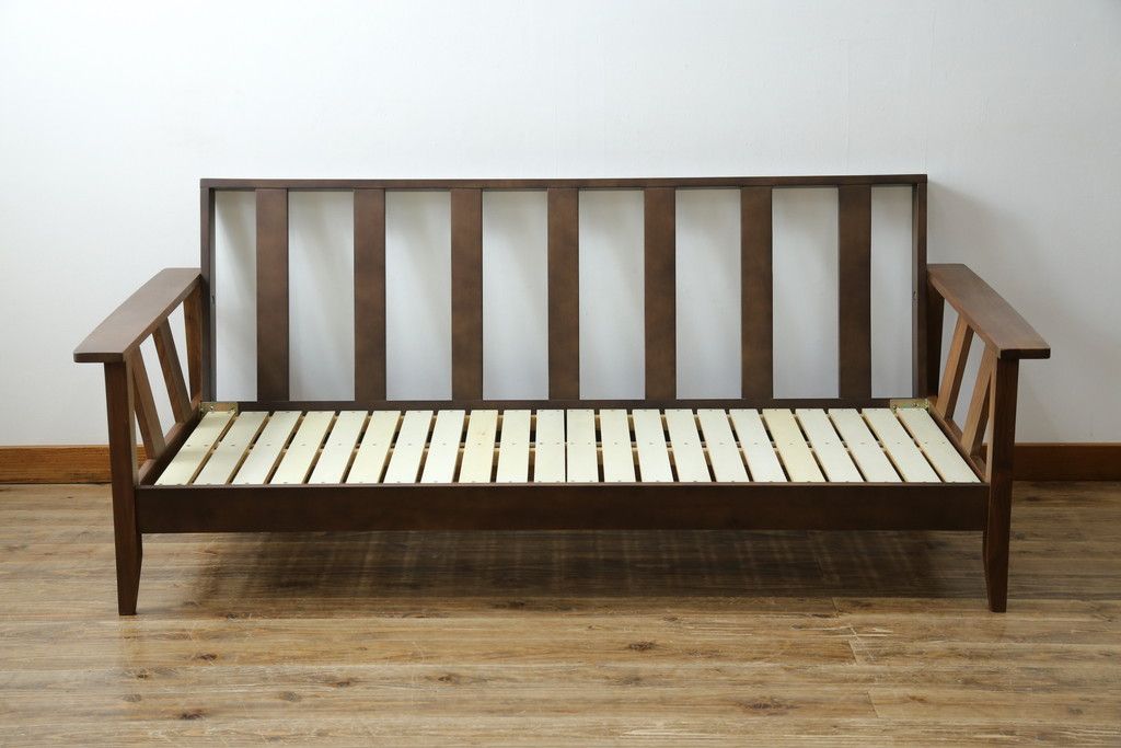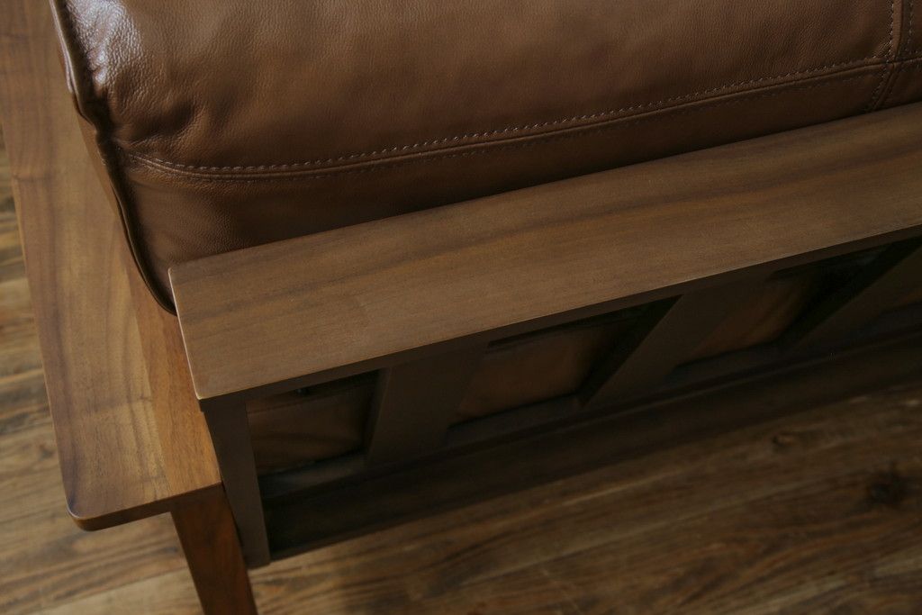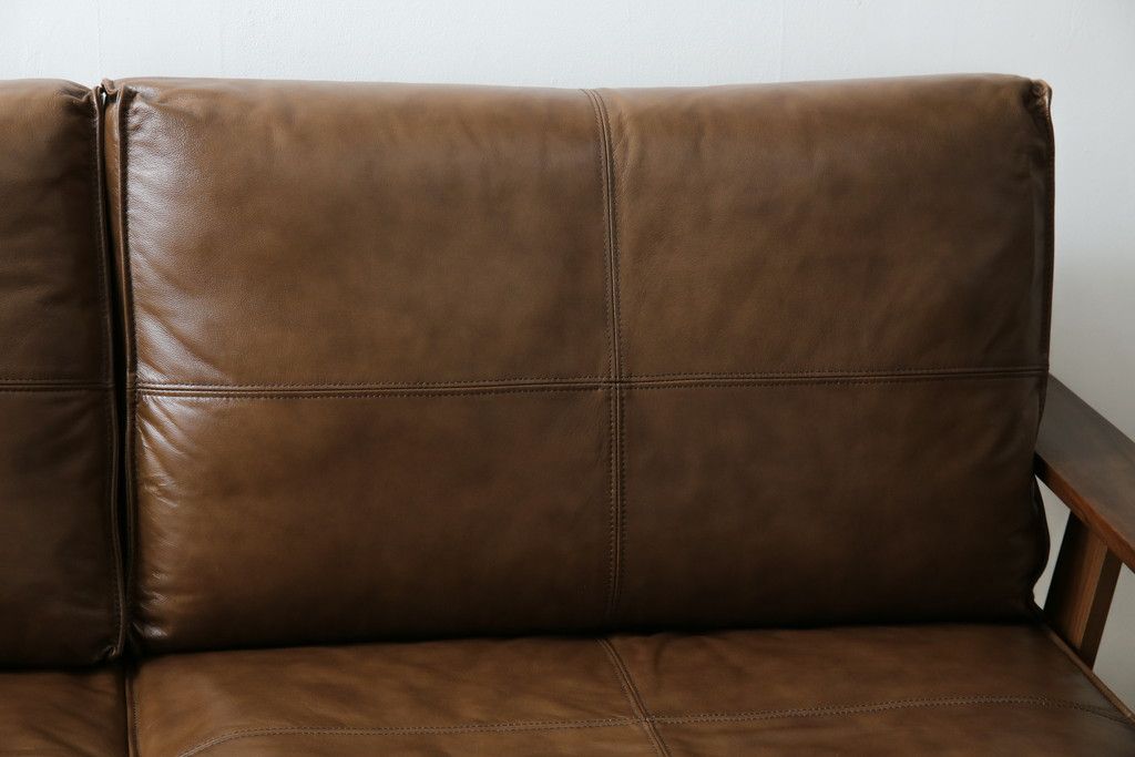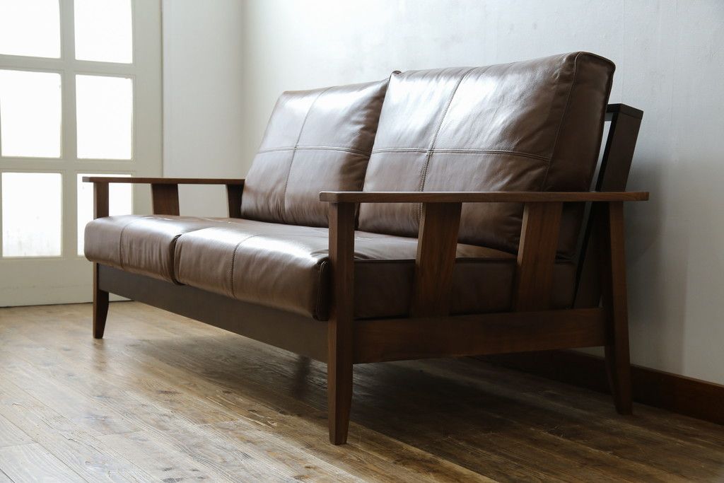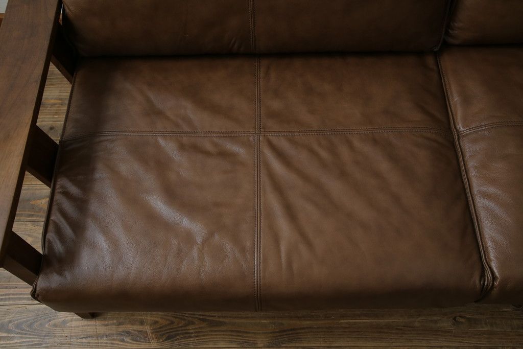 中古 超美品 ウォールナット材 革製(レザー) 木製フレームが美しい!!カフェ風インテリアにもぴったりな2.5人掛けソファ(2P、2.5P、3P、2人掛け、3人掛け)(定価約16万円)(R-083173)です。