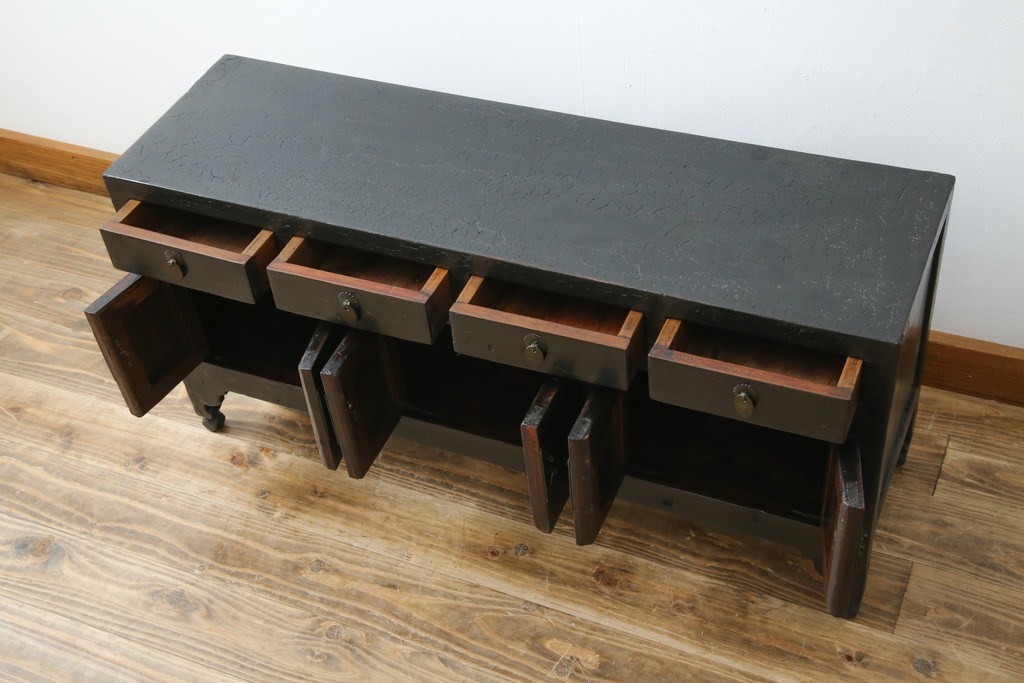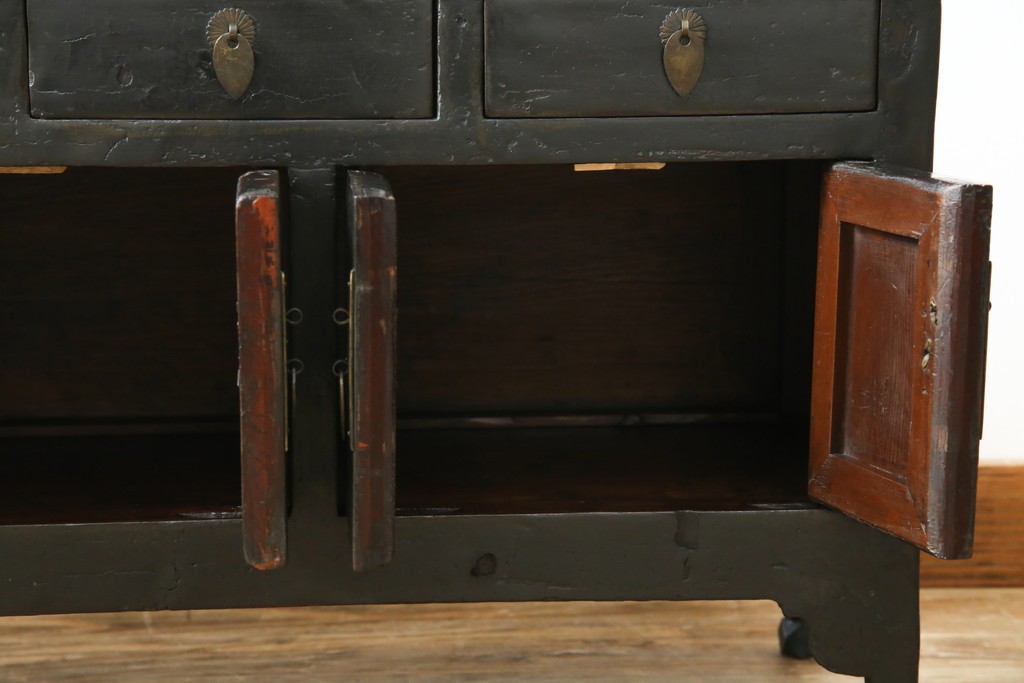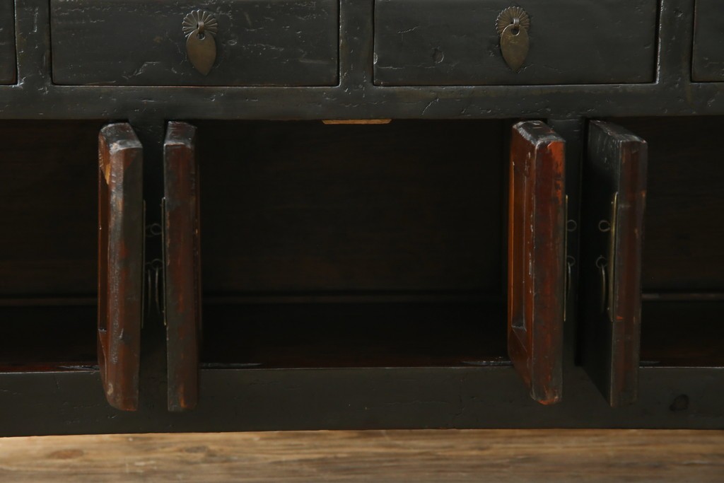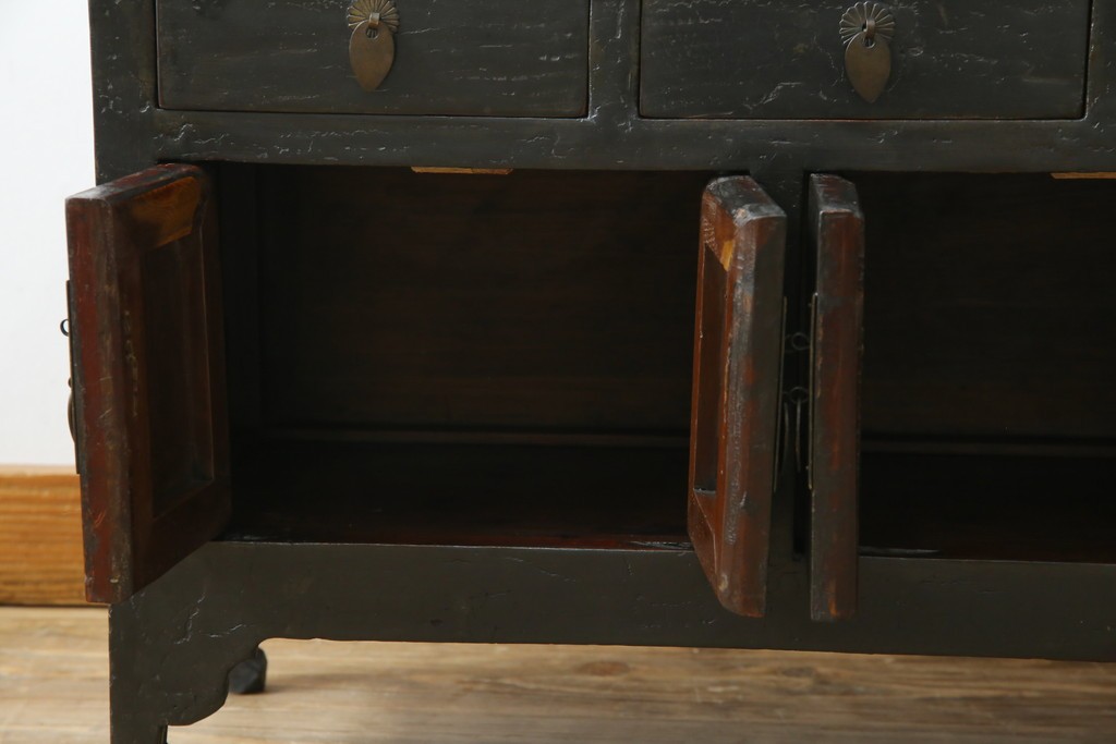 ラフジュ工房> 李朝家具 > 韓国ヴィンテージ 李朝デザイン 真鍮(しんちゅう)金具付き アンティーク調ローボード (R-083194)