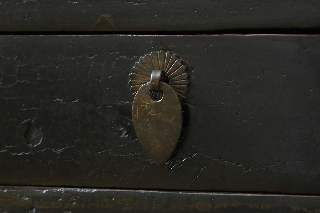 韓国ヴィンテージ 李朝デザイン 真鍮(しんちゅう)金具付き アンティーク調ローボード (R-083194)