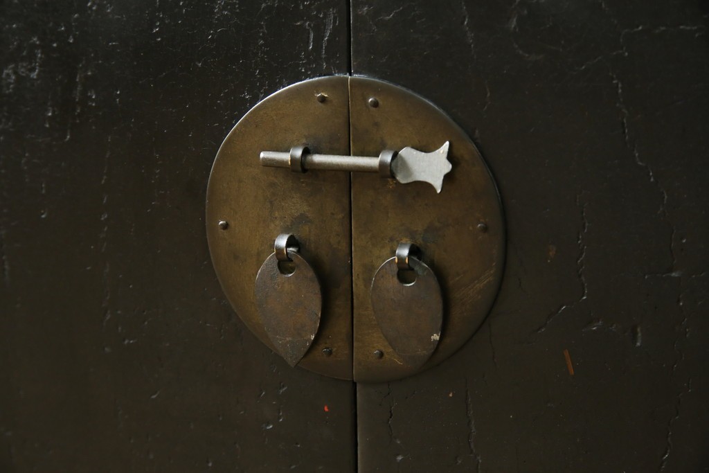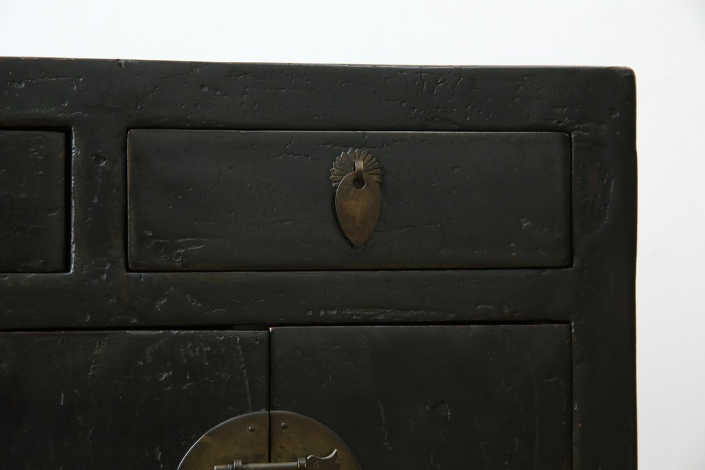 ラフジュ工房> キャビネット・戸棚> テレビ台・ローボード > 韓国ヴィンテージ 李朝デザイン 真鍮(しんちゅう)金具付き アンティーク調ローボード (R-083194)