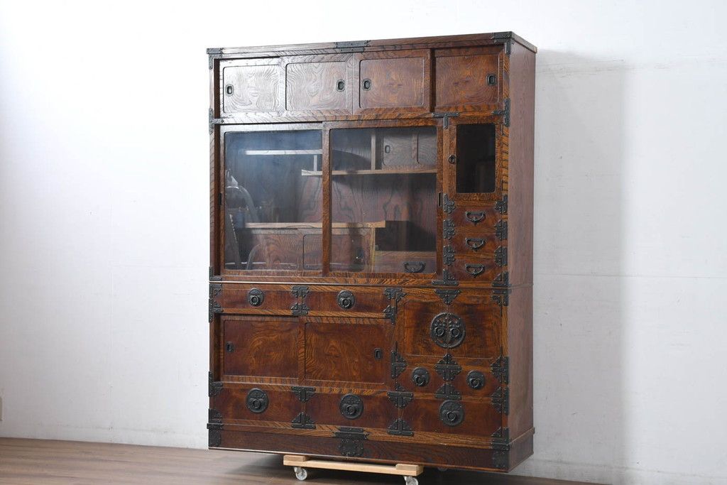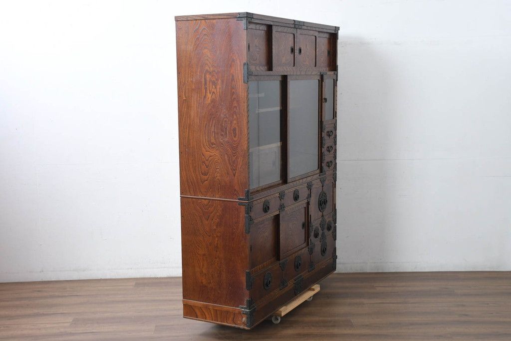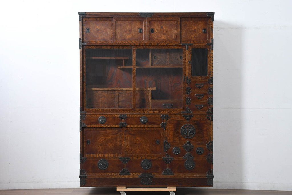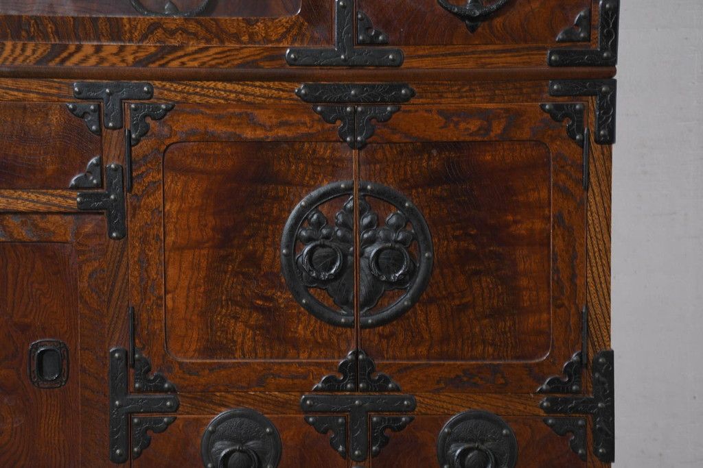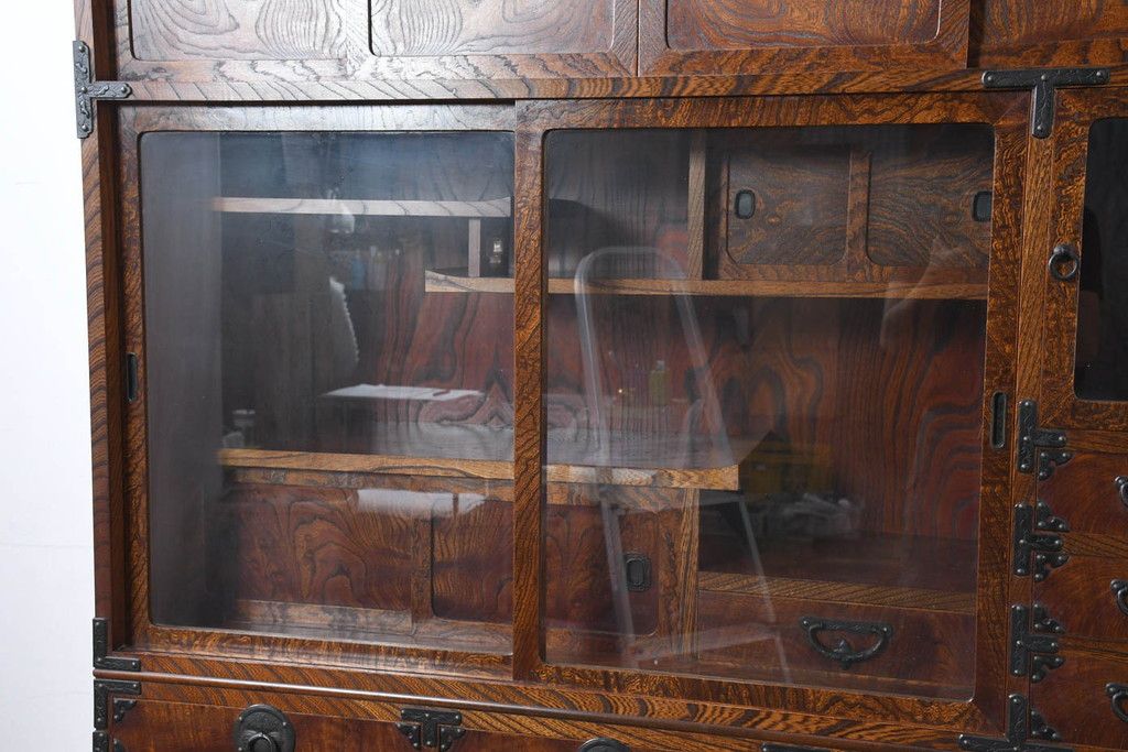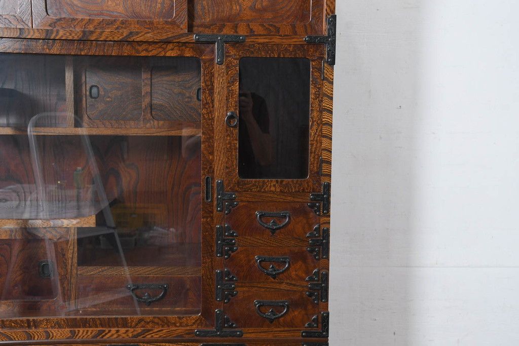 キャビネット・戸棚> 食器棚・カップボード > 中古 美品 伝統民芸 岩谷堂箪笥 重厚感あふれる佇まいに美しい木目が印象的な茶棚(茶箪笥、収納棚、食器棚、引き出し、バラ売り可能)(R-083212)
