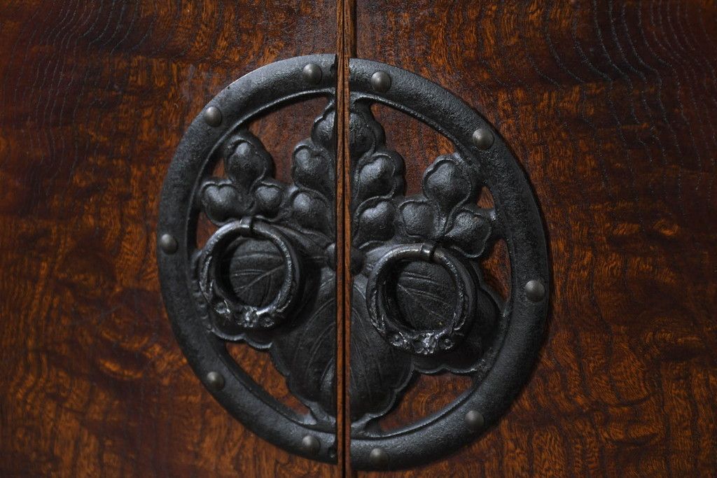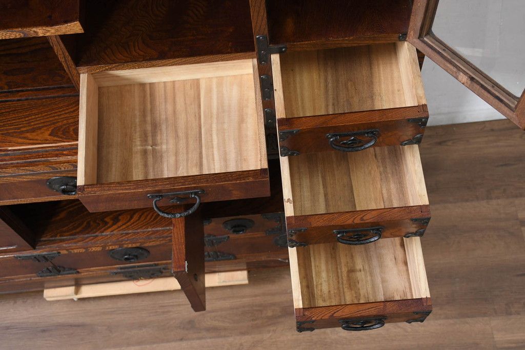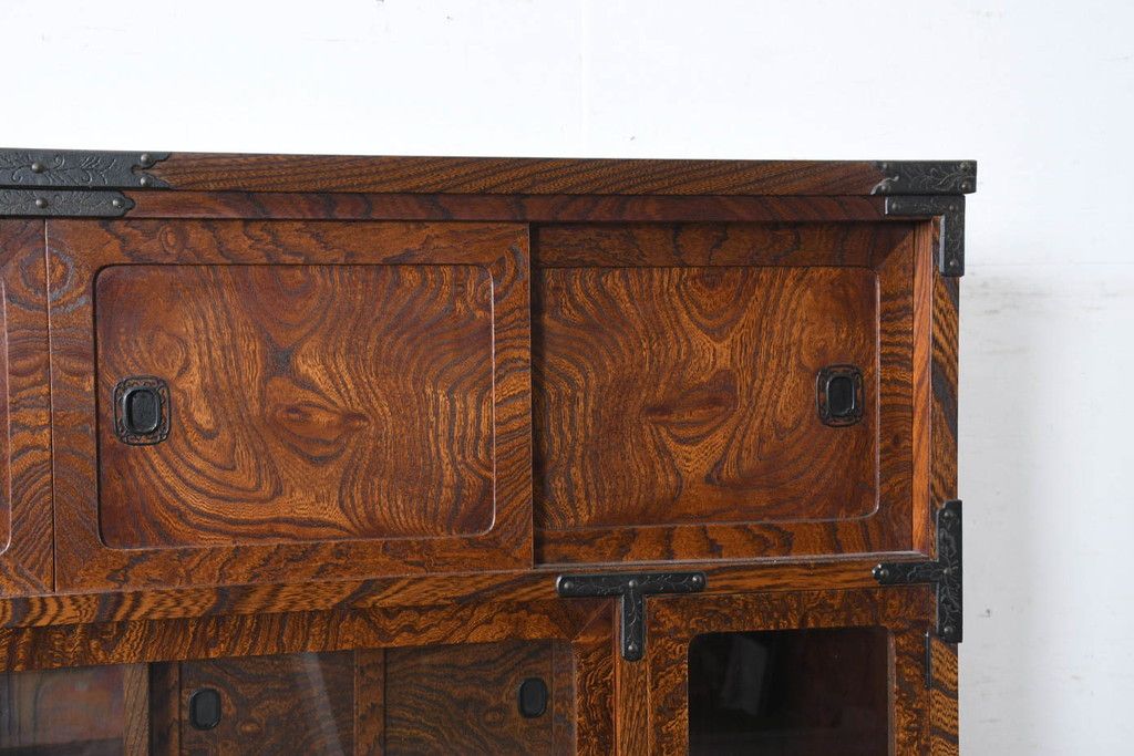 中古 美品 伝統民芸 岩谷堂箪笥 重厚感あふれる佇まいに美しい木目が印象的な茶棚(茶箪笥、収納棚、食器棚、引き出し、バラ売り可能)(R-083212)