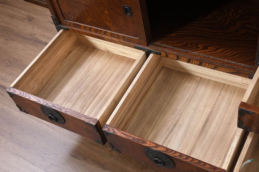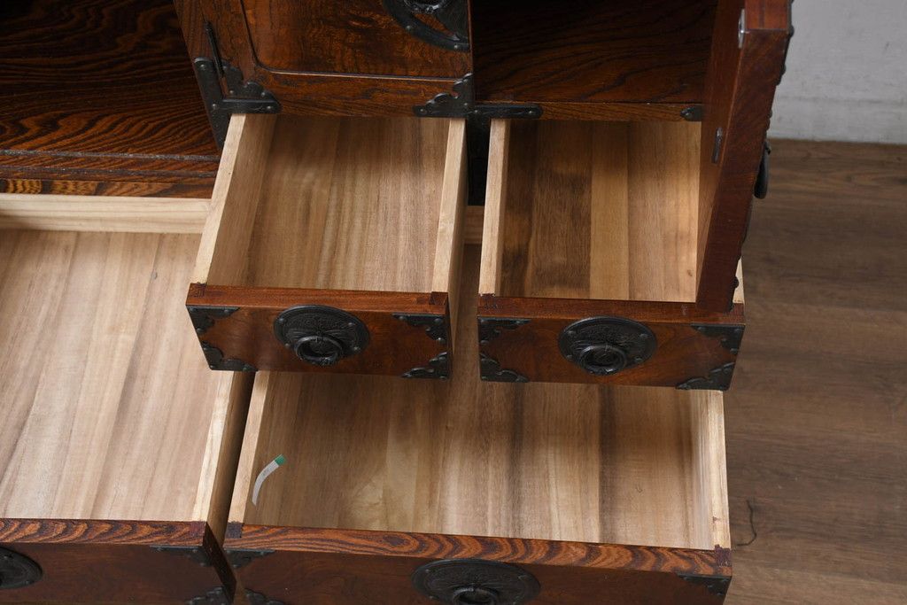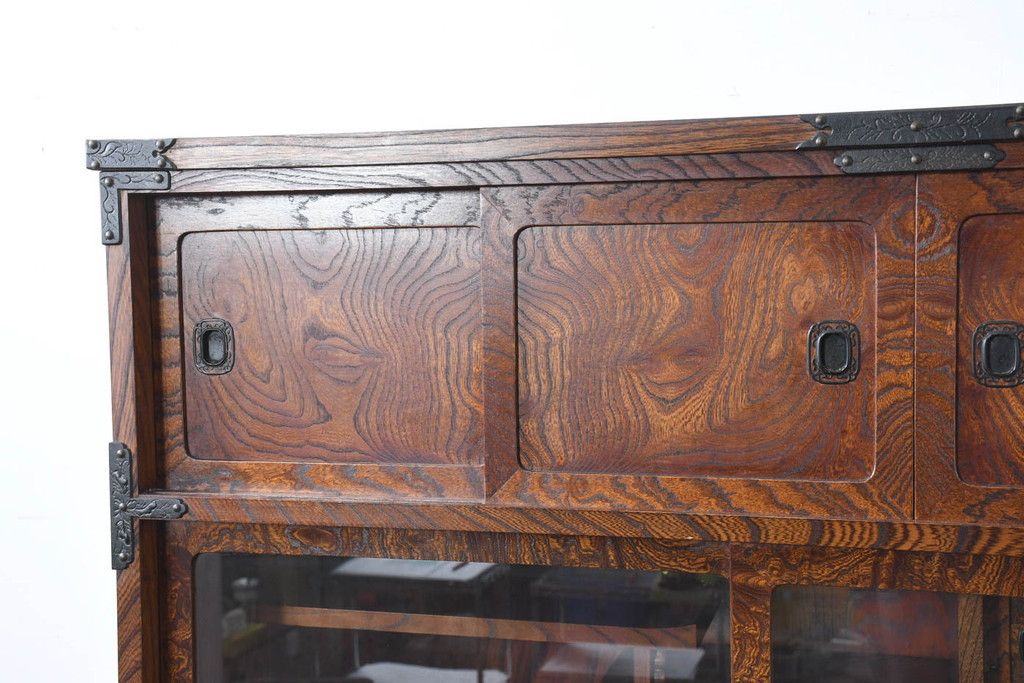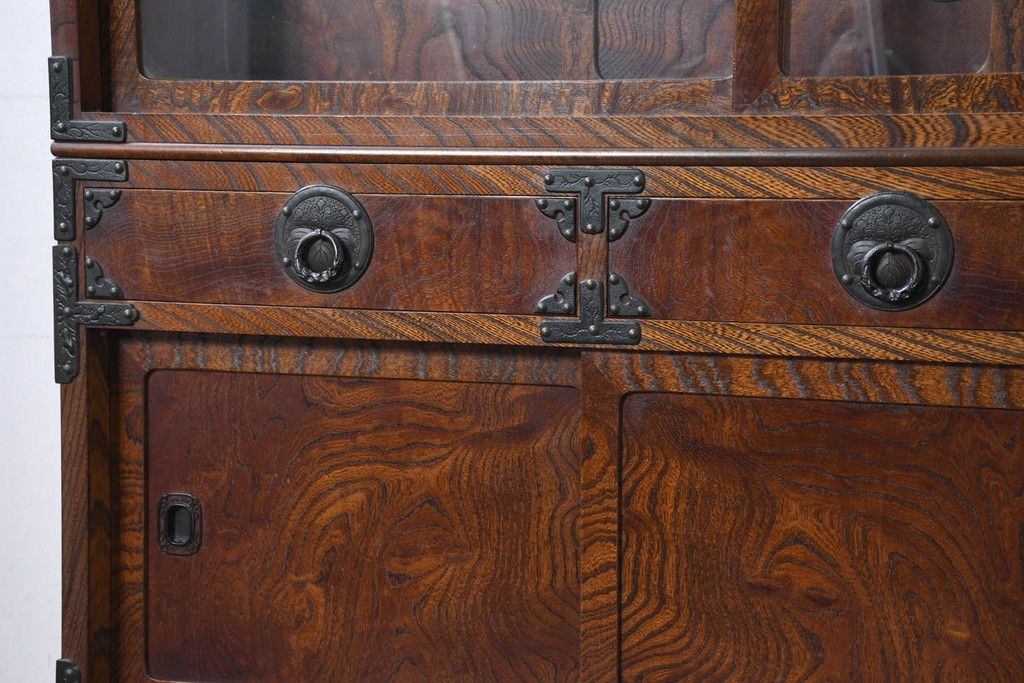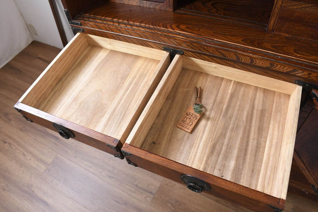 和箪笥> 茶箪笥・茶棚 > 中古 美品 伝統民芸 岩谷堂箪笥 重厚感あふれる佇まいに美しい木目が印象的な茶棚(茶箪笥、収納棚、食器棚、引き出し、バラ売り可能)(R-083212)