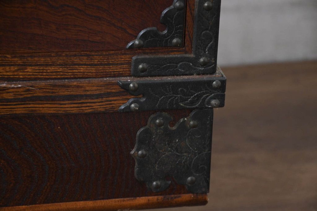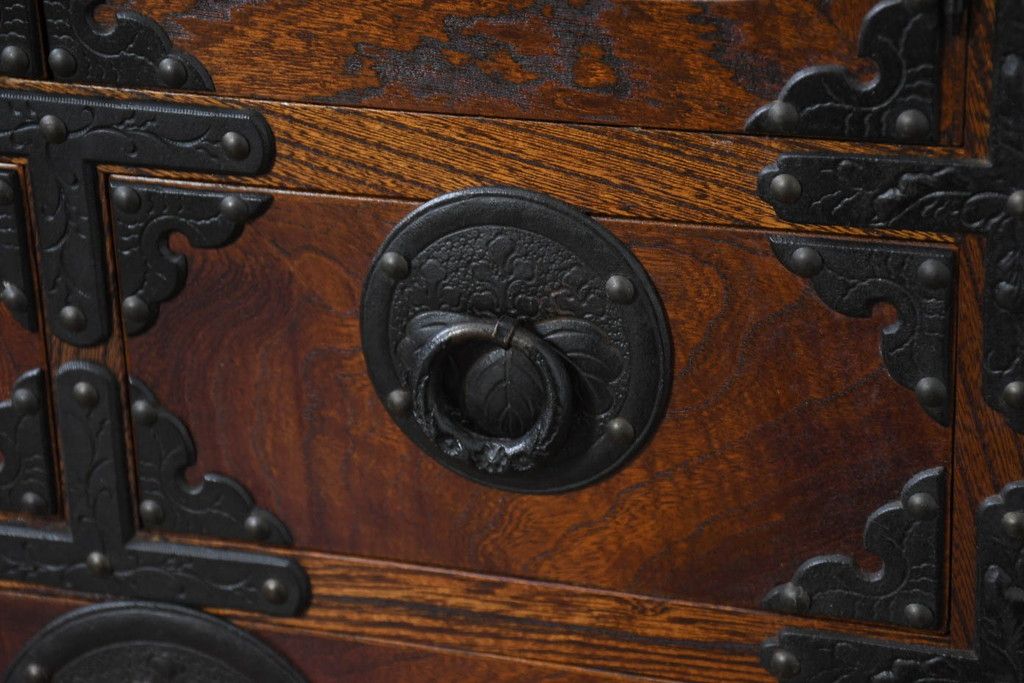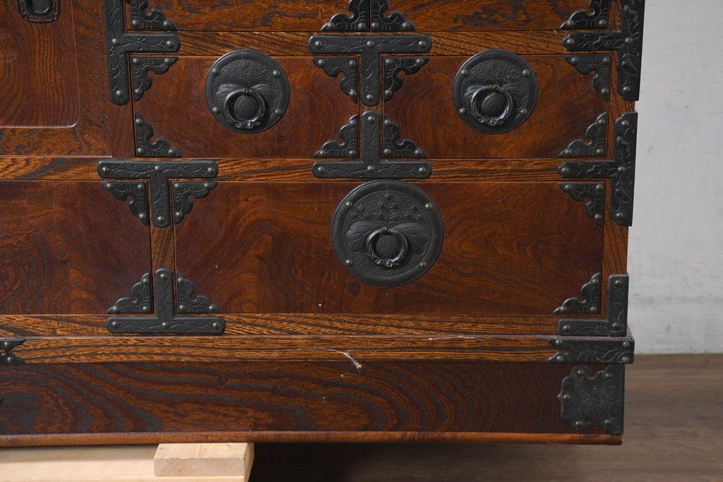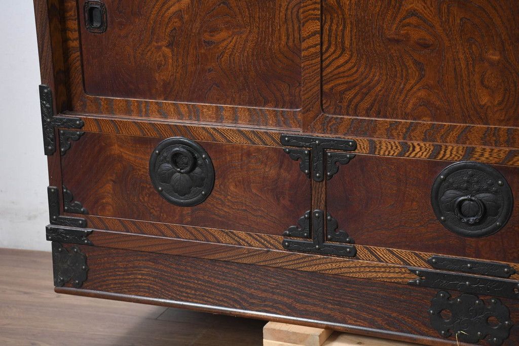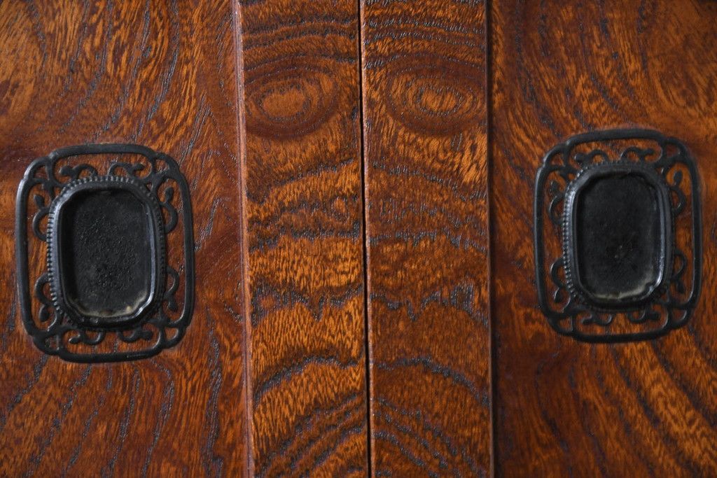 和箪笥> 茶箪笥・茶棚 > 中古 美品 伝統民芸 岩谷堂箪笥 重厚感あふれる佇まいに美しい木目が印象的な茶棚(茶箪笥、収納棚、食器棚、引き出し、バラ売り可能)(R-083212)