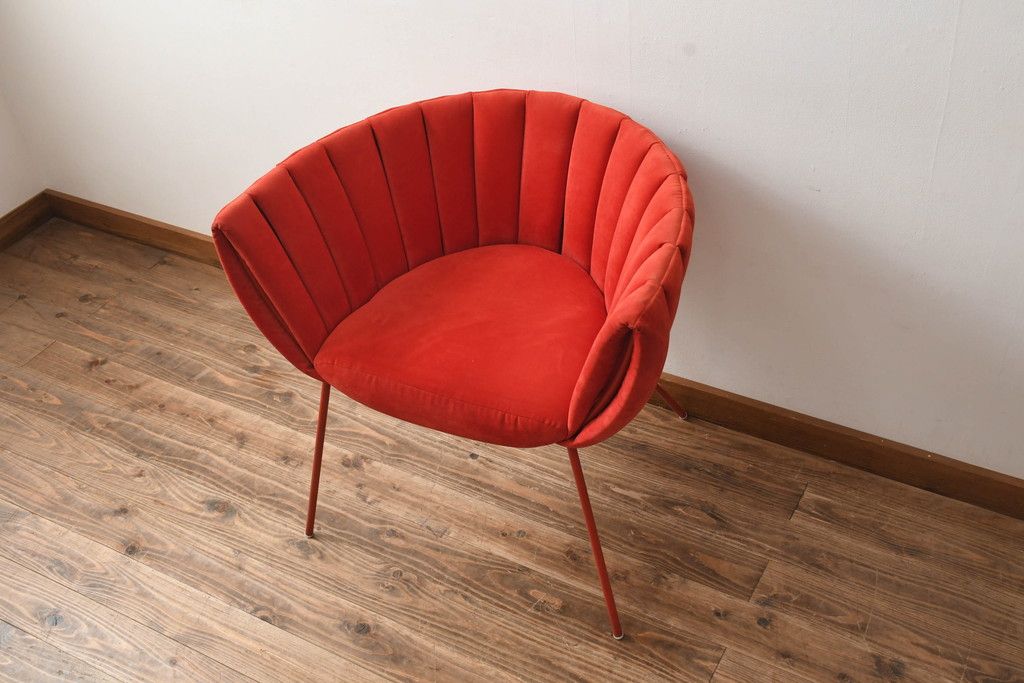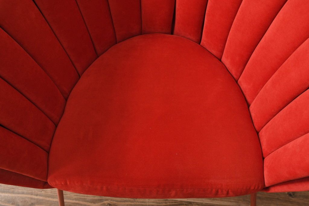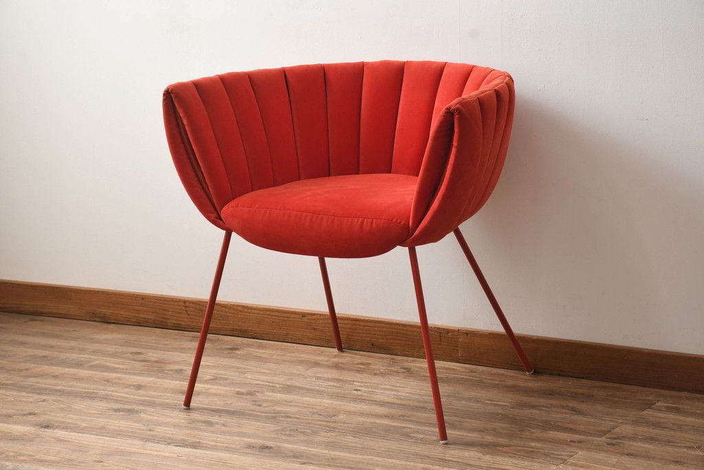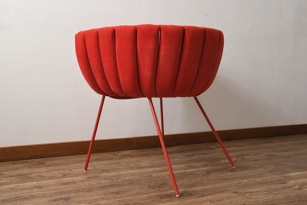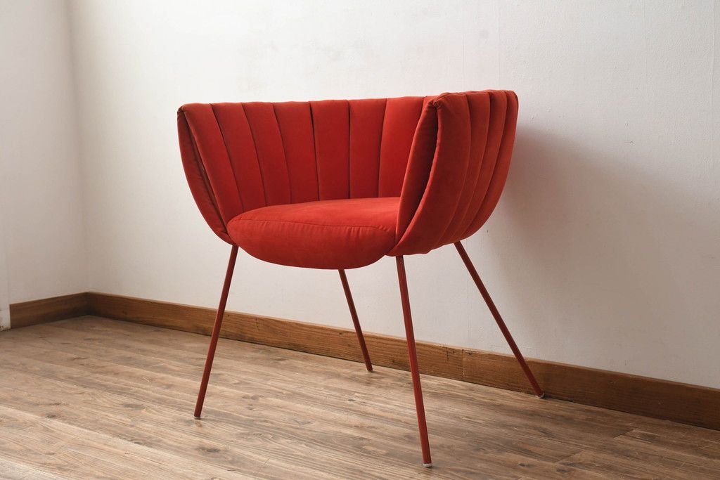 椅子・ベンチ> アームチェア > 中古 美品 展示品 高級家具ブランド Abita Style(アビタスタイル) 優雅なレッドカラーとミッドセンチュリーデザインが空間のアクセントになるラウンジチェア(アームチェア、椅子、イス)(定価約10万5千円)(R-083259)