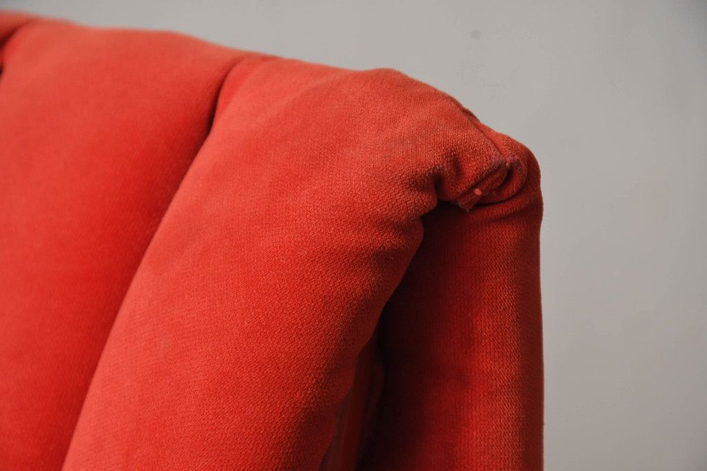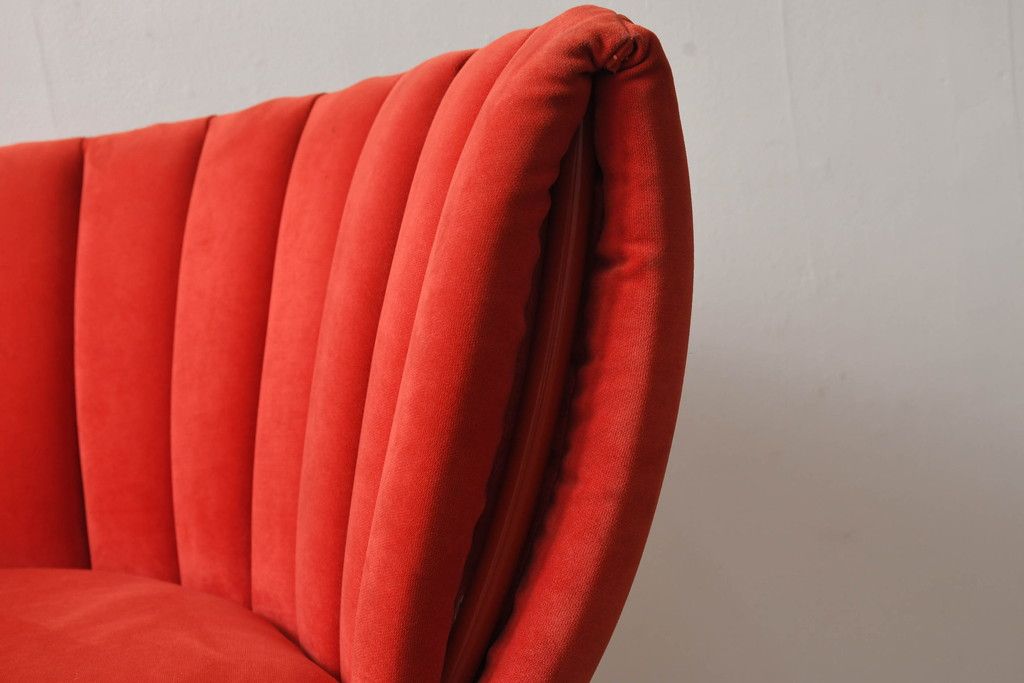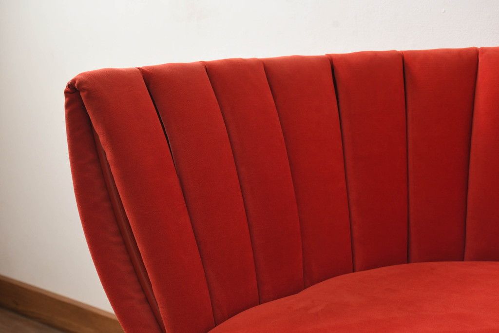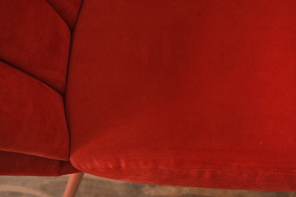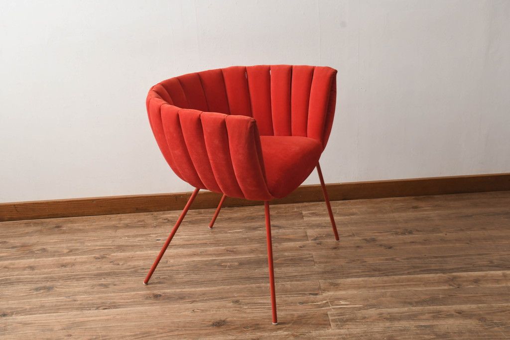椅子・ベンチ> アームチェア > 中古 美品 展示品 高級家具ブランド Abita Style(アビタスタイル) 優雅なレッドカラーとミッドセンチュリーデザインが空間のアクセントになるラウンジチェア(アームチェア、椅子、イス)(定価約10万5千円)(R-083259)