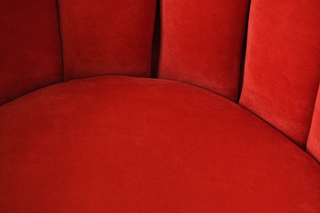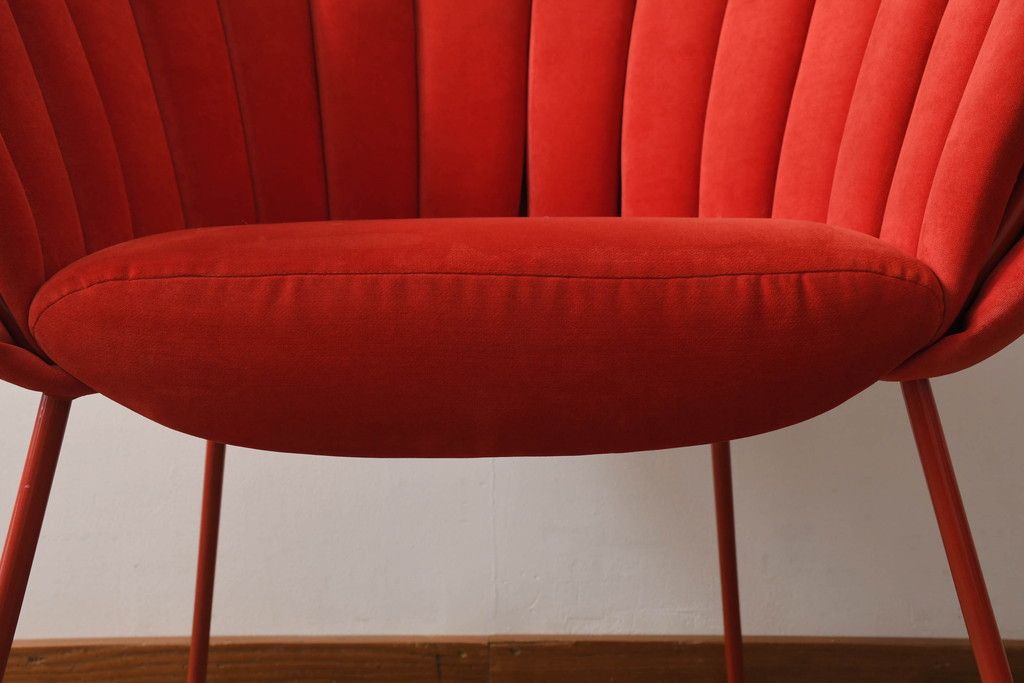 椅子・ベンチ> ラウンジチェア > 中古 美品 展示品 高級家具ブランド Abita Style(アビタスタイル) 優雅なレッドカラーとミッドセンチュリーデザインが空間のアクセントになるラウンジチェア(アームチェア、椅子、イス)(定価約10万5千円)(R-083259)