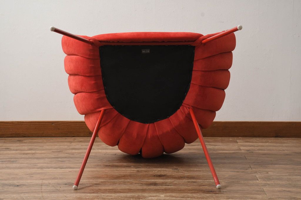 中古 美品 展示品 高級家具ブランド Abita Style(アビタスタイル) 優雅なレッドカラーとミッドセンチュリーデザインが空間のアクセントになるラウンジチェア(アームチェア、椅子、イス)(定価約10万5千円)(R-083259)