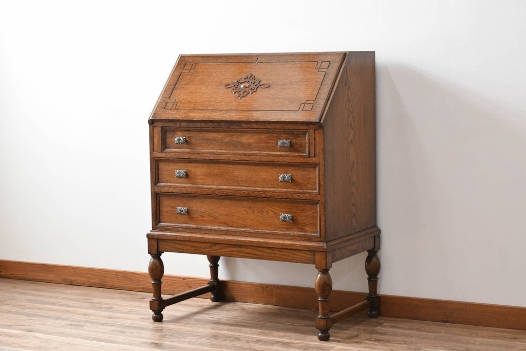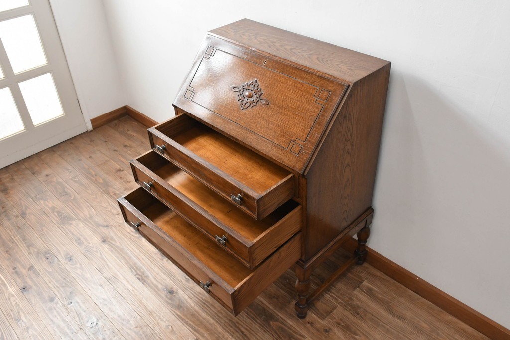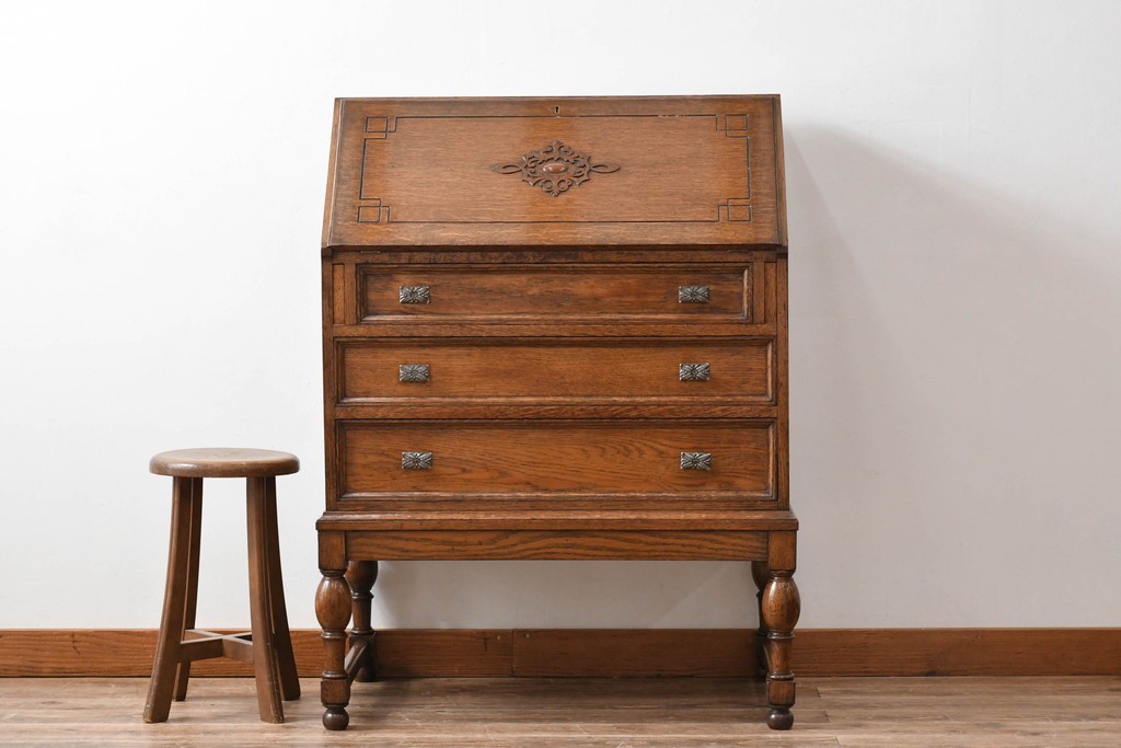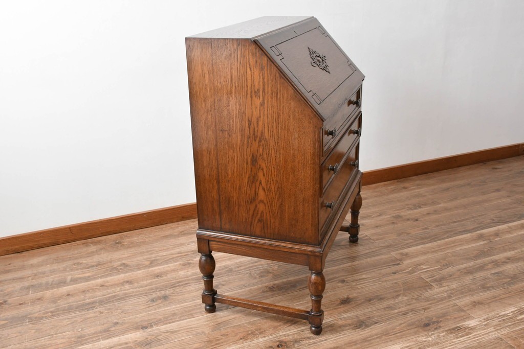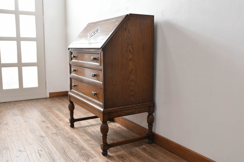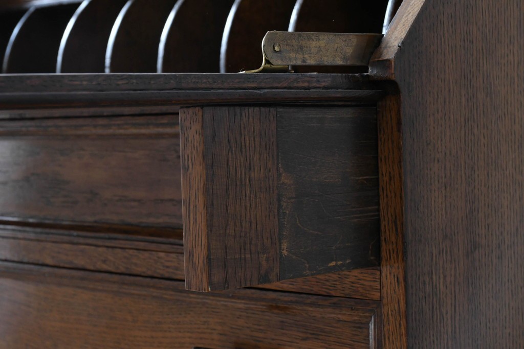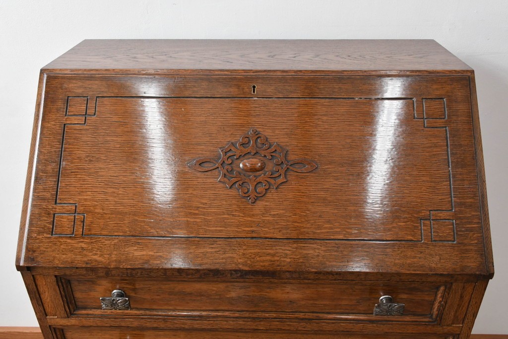 ラフジュ工房> デスク> ライティングビューロー・簿記机 > イギリスアンティーク 超美品 Lloyd’s Antiques(ロイズアンティークス)取り扱い 控えめな装飾が取り入れやすいオーク材ライティングビューロー (R-083263)