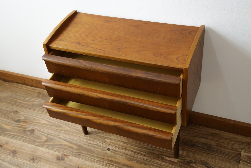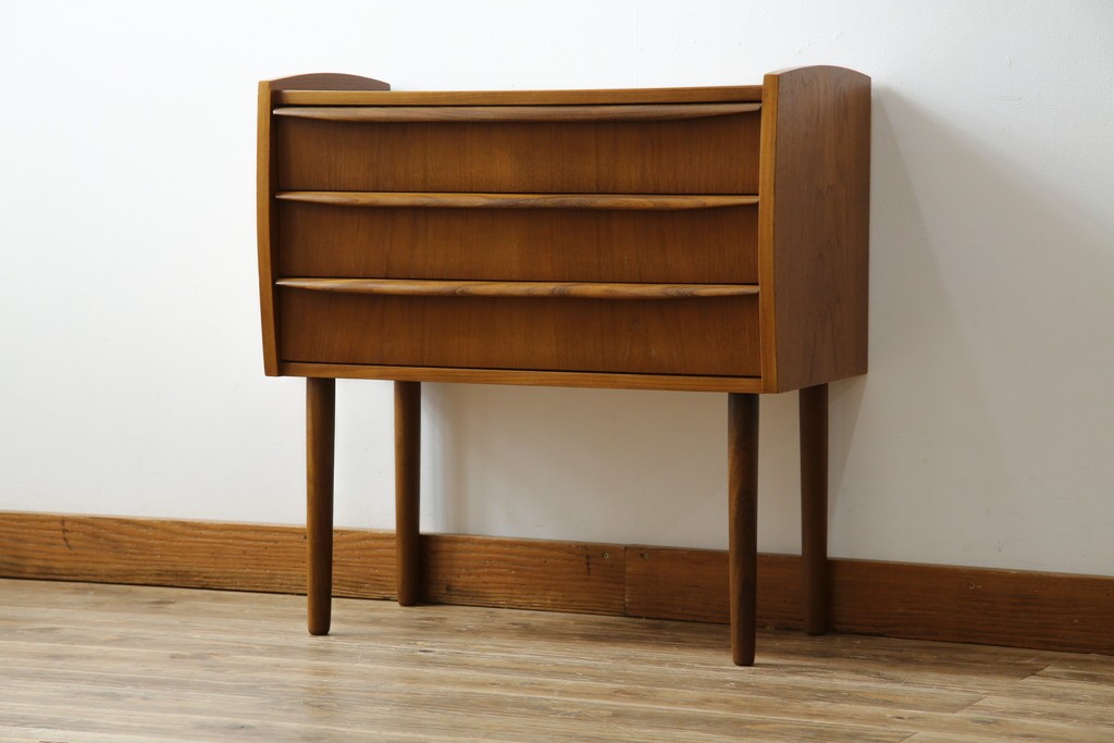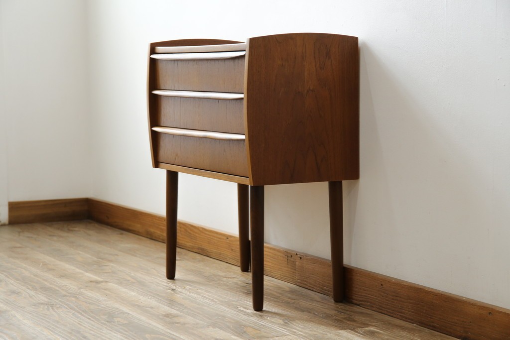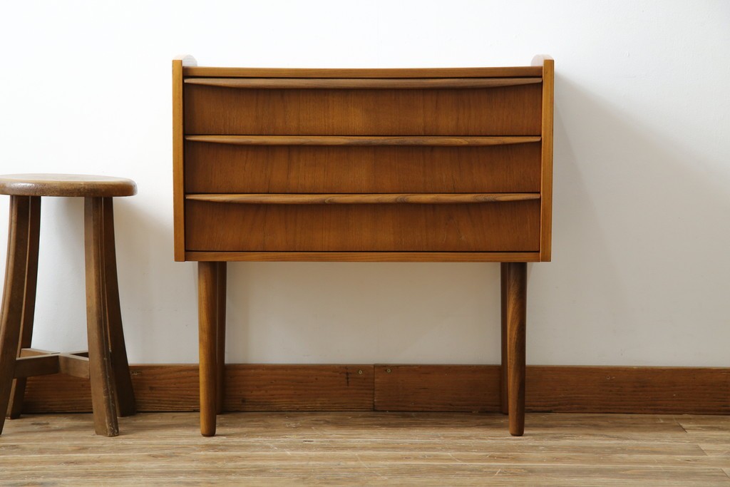 チェスト・引き出し> サイドチェスト > デンマークビンテージ 美品 チーク材 すらっとした脚が愛らしいスモールチェスト(サイドチェスト、引き出し、サイドボード、ヴィンテージ、北欧)(R-083265)