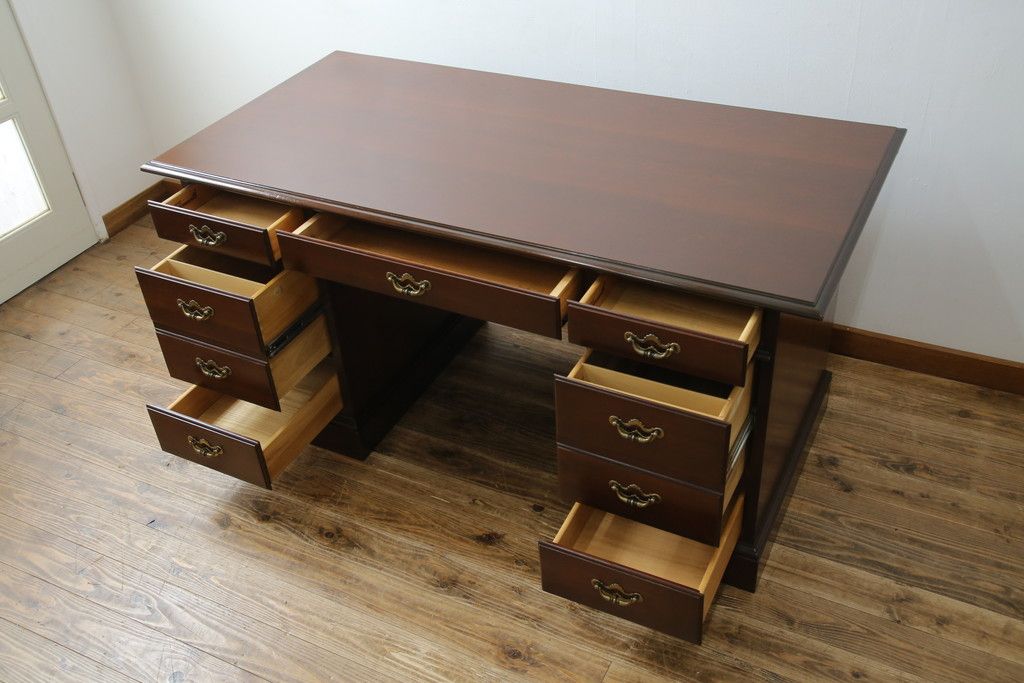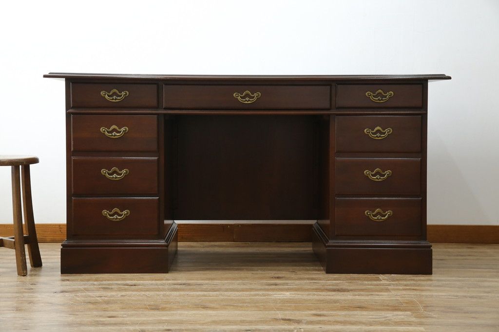 デスク> 片袖机・両袖机 > 中古 トーマスビル(THOMASVILLE) シンプルながらクラシカルで優雅な佇まいの両袖机(二―ホールデスク、プレジデントデスク、ワークデスク、オフィスデスク、在宅用、在宅ワーク用)(R-083313)