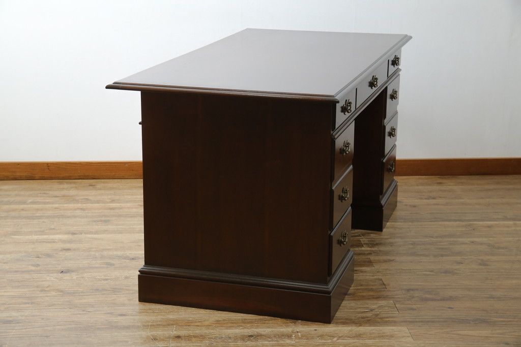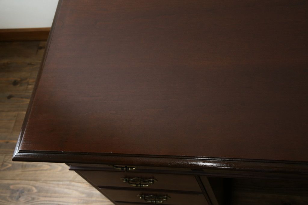 中古 トーマスビル(THOMASVILLE) シンプルながらクラシカルで優雅な佇まいの両袖机(二―ホールデスク、プレジデントデスク、ワークデスク、オフィスデスク、在宅用、在宅ワーク用)(R-083313)
