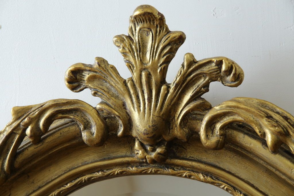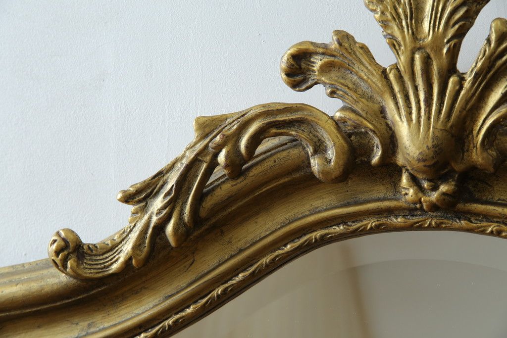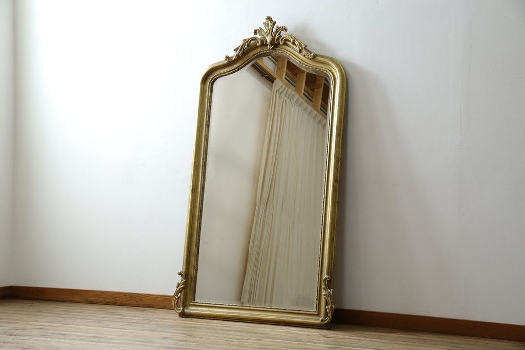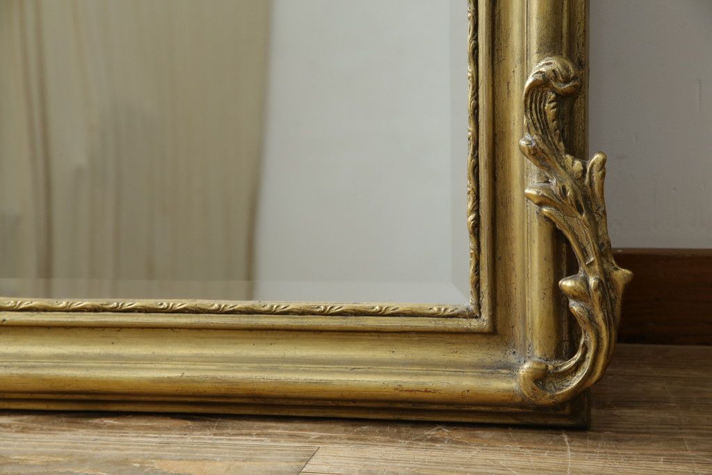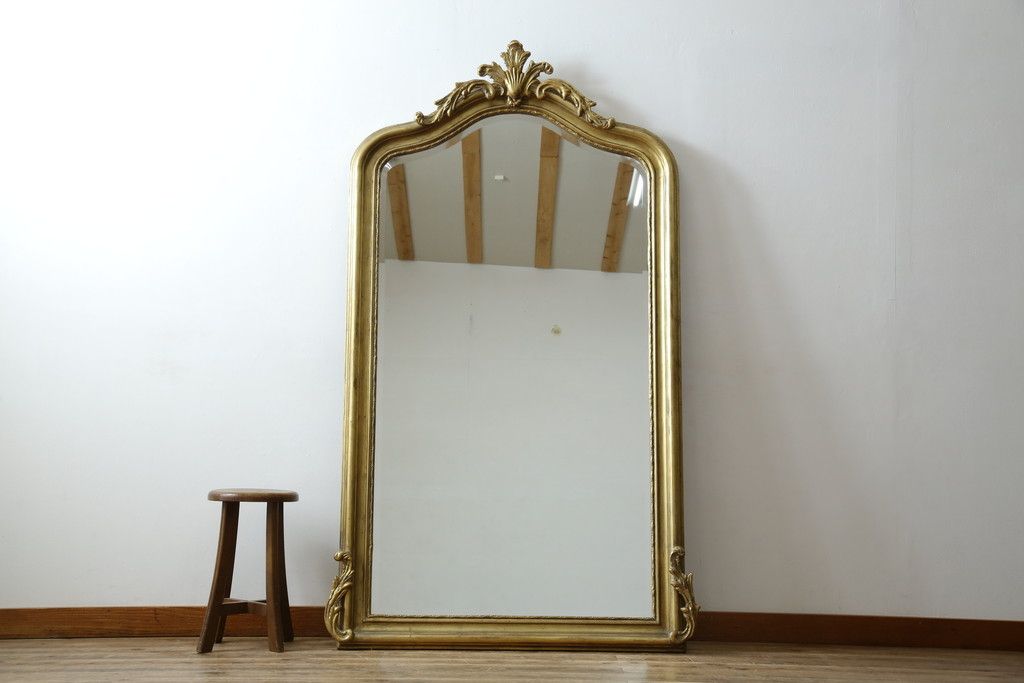 鏡> 姿見 > フランスアンティーク The Globe (ザ・グローブ)Antiques取り扱い 優雅な彫刻の装飾が映える金フレームの大型ミラー(姿見、壁掛け鏡)(R-083317)