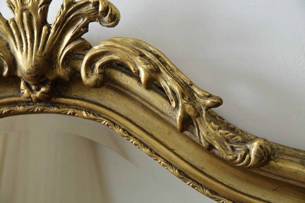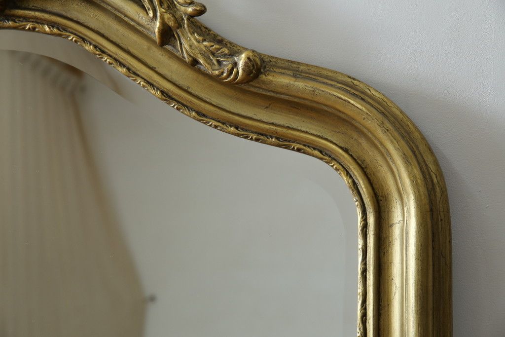 鏡> 壁掛け鏡 > フランスアンティーク The Globe (ザ・グローブ)Antiques取り扱い 優雅な彫刻の装飾が映える金フレームの大型ミラー(姿見、壁掛け鏡)(R-083317)