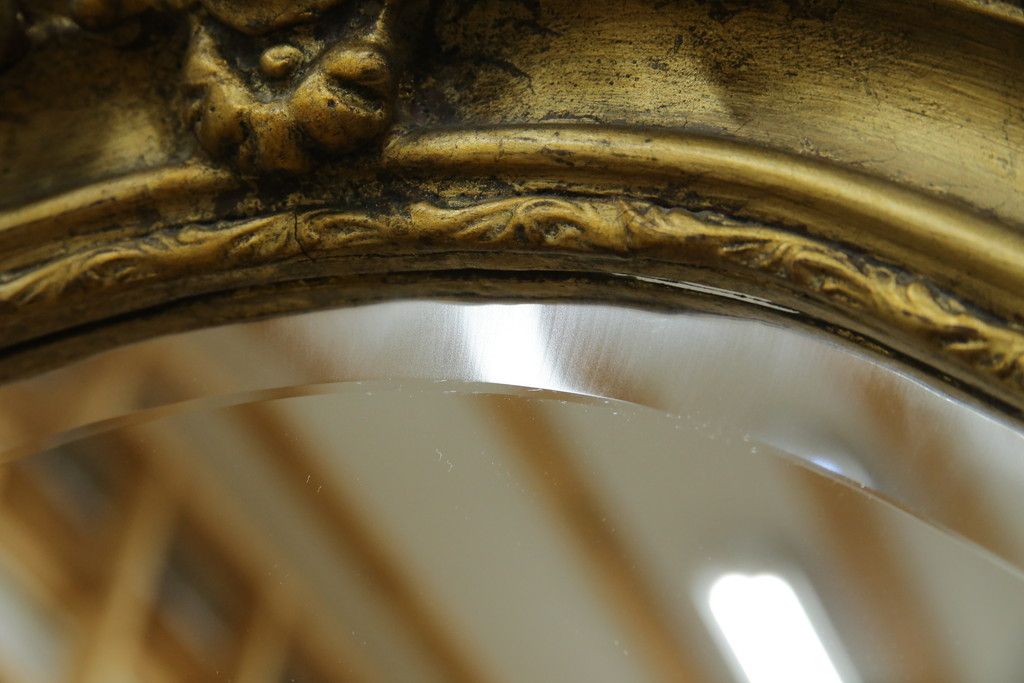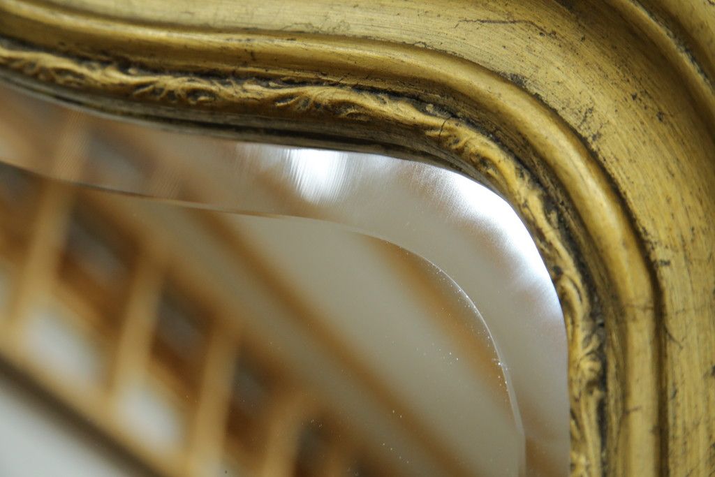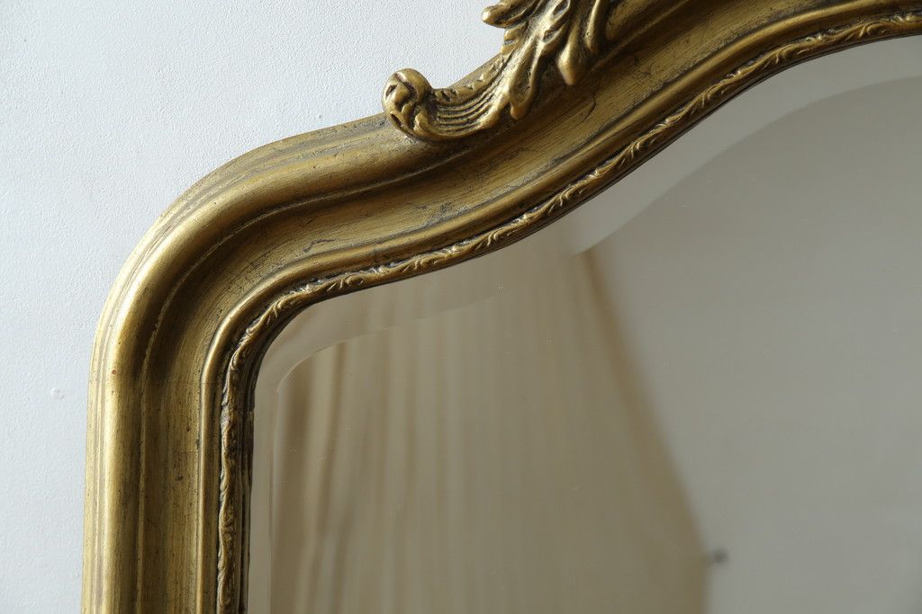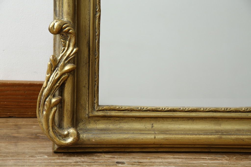 フランスアンティーク The Globe (ザ・グローブ)Antiques取り扱い 優雅な彫刻の装飾が映える金フレームの大型ミラー(姿見、壁掛け鏡)(R-083317)
