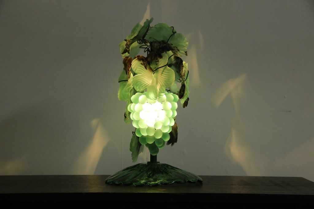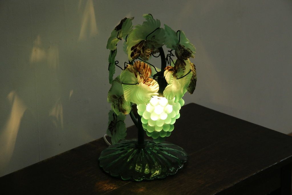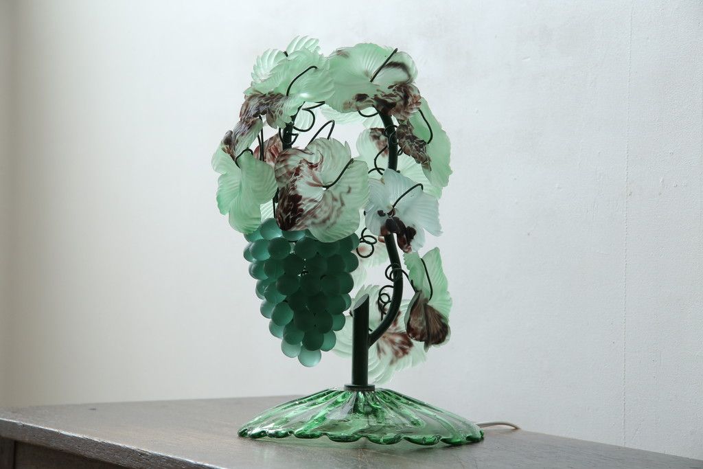 中古 イタリア トーソー社(TOSO CESARE) ムラーノガラス(MURANO) ブドウ(葡萄、ぶどう) 1灯 空間のアクセントになるテーブルスタンド(テーブルライト、卓上ランプ、ベネチアングラス、ムラノガラス)(R-083330)