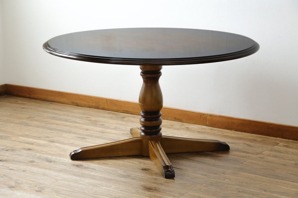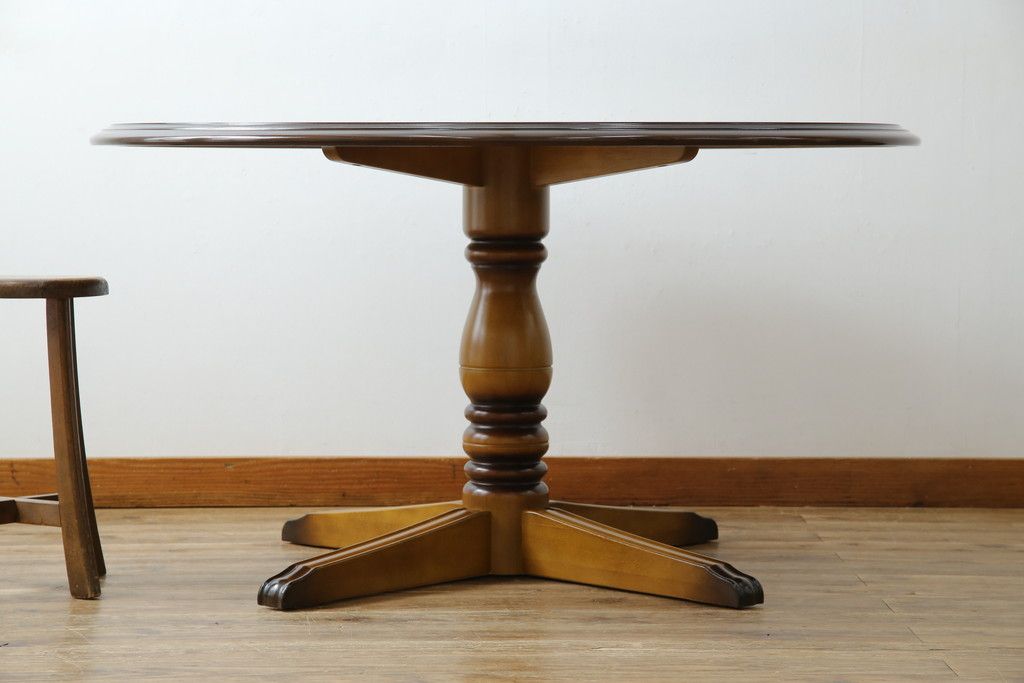 テーブル> 丸テーブル > 中古 カリモク家具(karimoku) COLONIAL(コロニアル)シリーズ カントリースタイルの柔らかな雰囲気の丸型ダイニングテーブル(ラウンドテーブル、丸テーブル、二人掛け、四人掛け、2人用、4人用、円卓)(R-083364)
