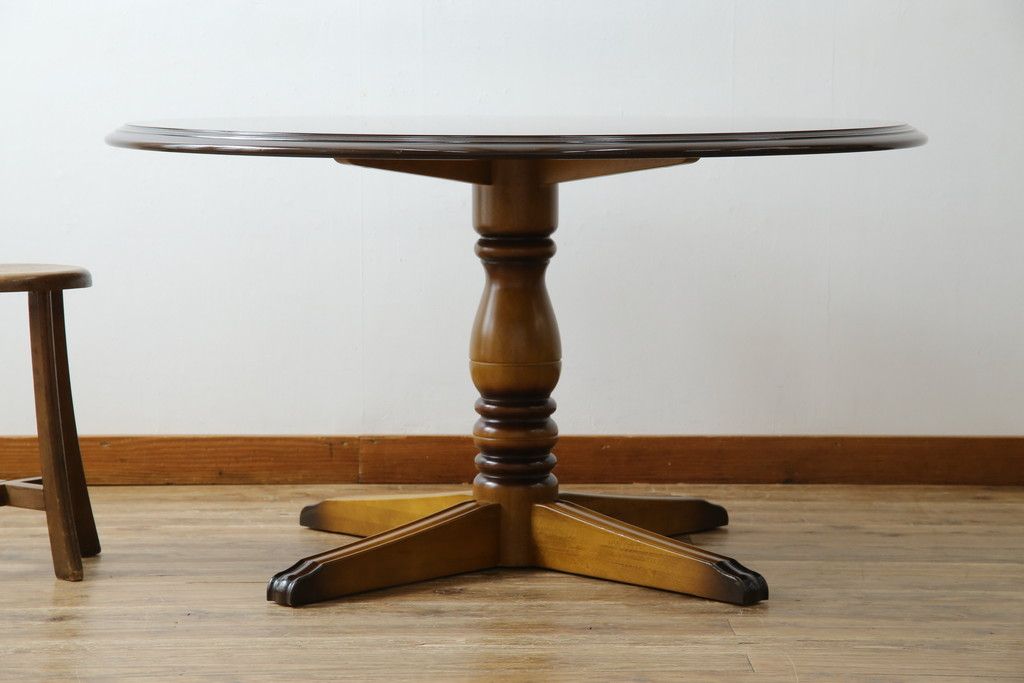 テーブル> 2人用ダイニングテーブル > 中古 カリモク家具(karimoku) COLONIAL(コロニアル)シリーズ カントリースタイルの柔らかな雰囲気の丸型ダイニングテーブル(ラウンドテーブル、丸テーブル、二人掛け、四人掛け、2人用、4人用、円卓)(R-083364)