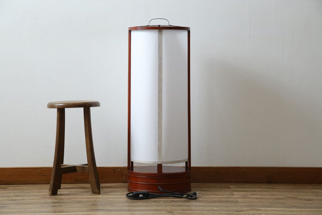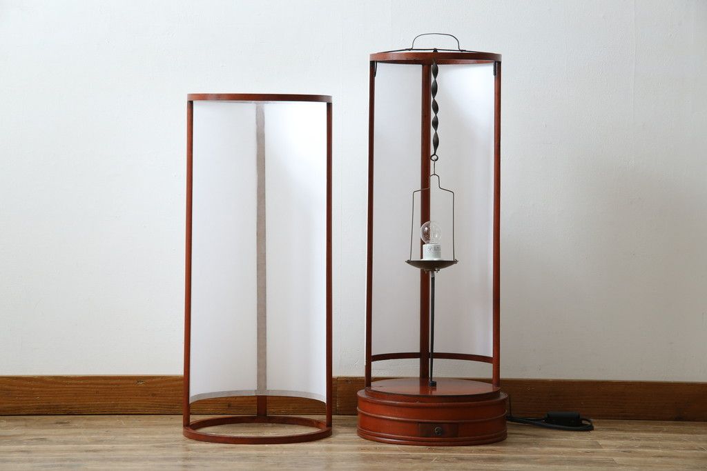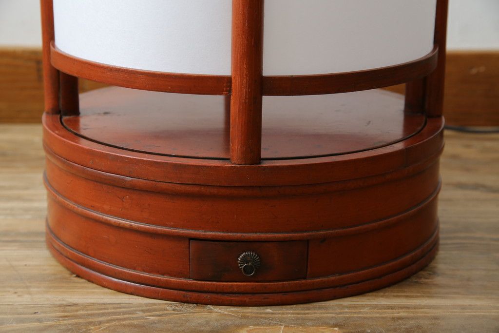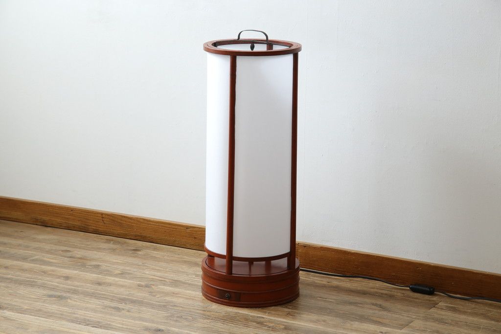 和製アンティーク 漆塗りが美しく和の雰囲気を醸し出す行灯(丸行灯、行燈、照明、フロアスタンド)(R-083453)
