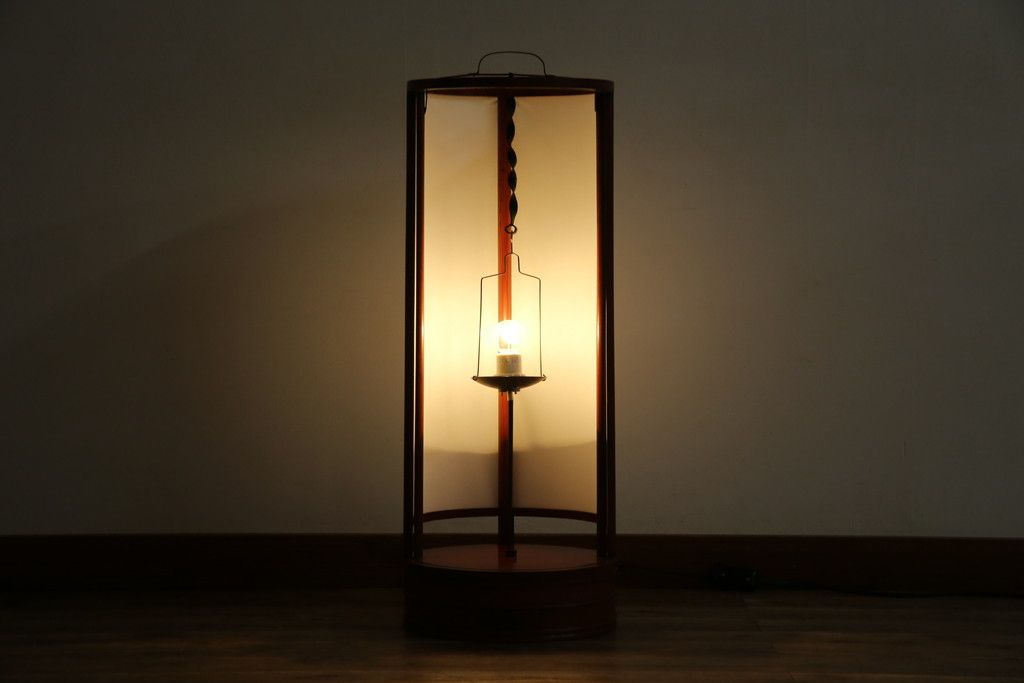 ラフジュ工房> 照明・ランプ> フロアスタンド > 和製アンティーク 漆塗りが美しく和の雰囲気を醸し出す行灯(丸行灯、行燈、照明、フロアスタンド)(R-083453)