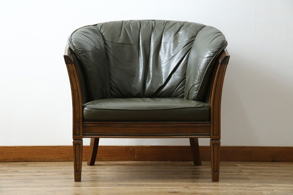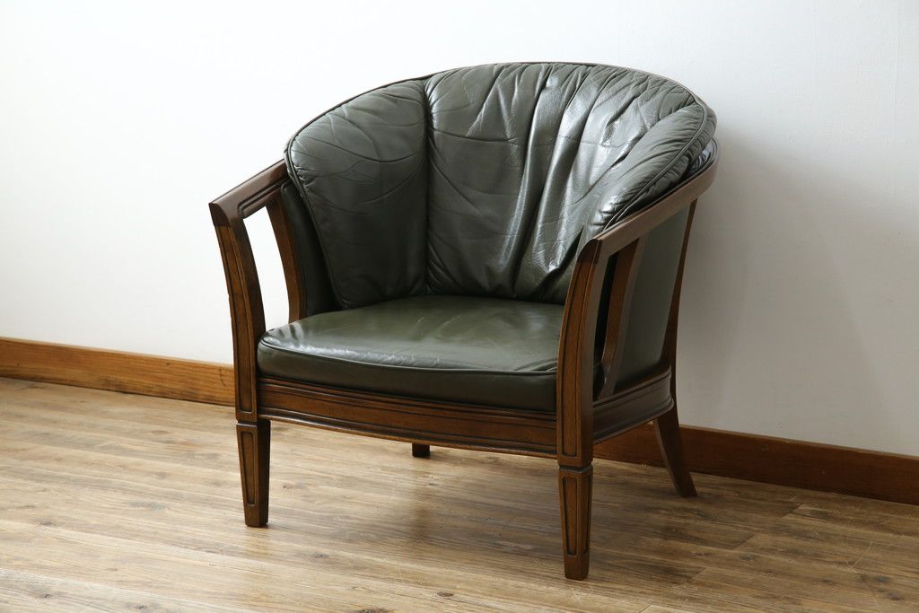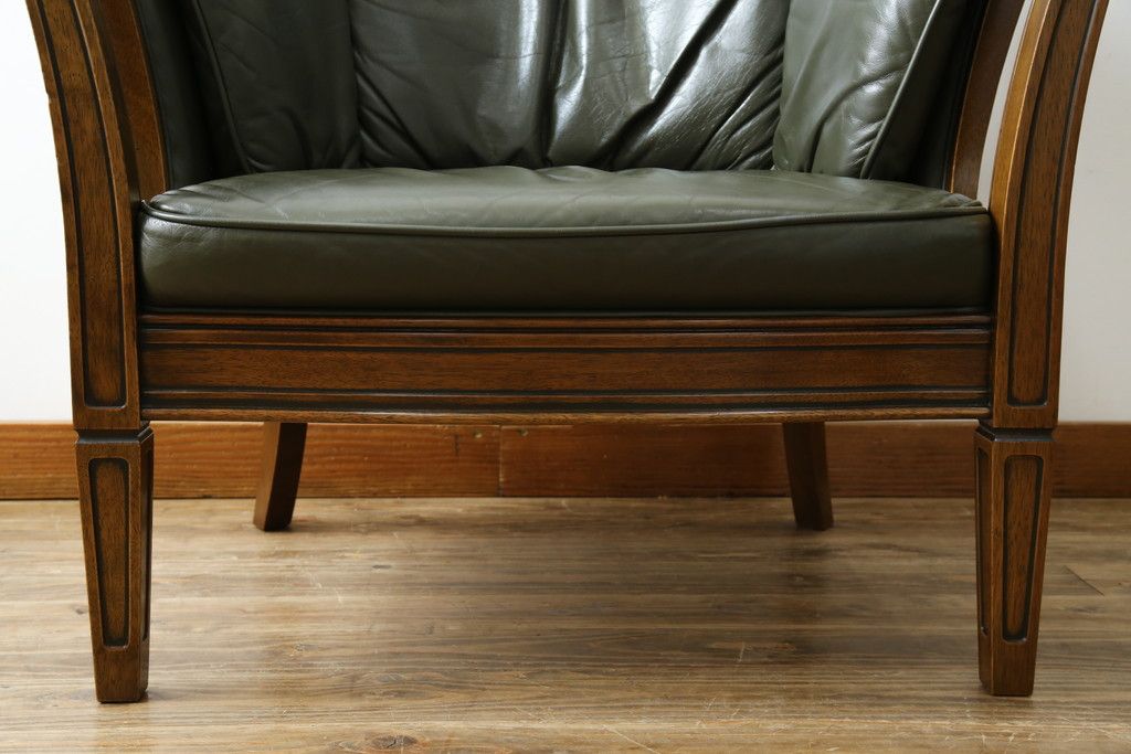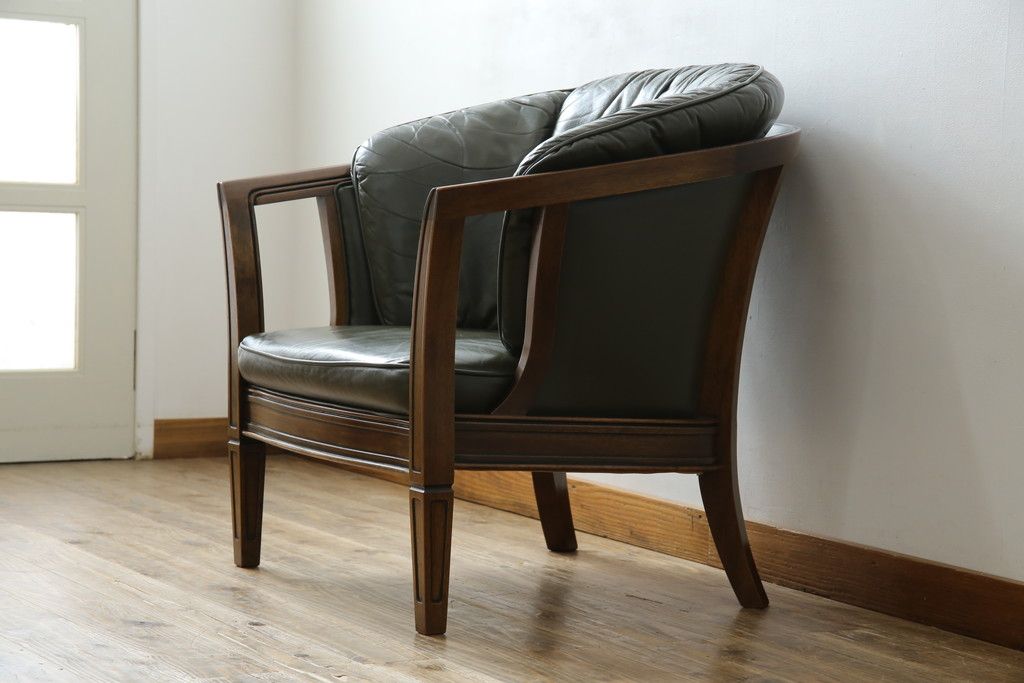椅子・ベンチ> ラウンジチェア > 中古 maruni(マルニ木工) 地中海ロイヤルシリーズ(ROYAL) 高級感の漂う本革(レザー)1Pソファ(一人掛け、アームソファ、ラウンジソファ、サロンチェア)(定価約48万円)(R-083523)