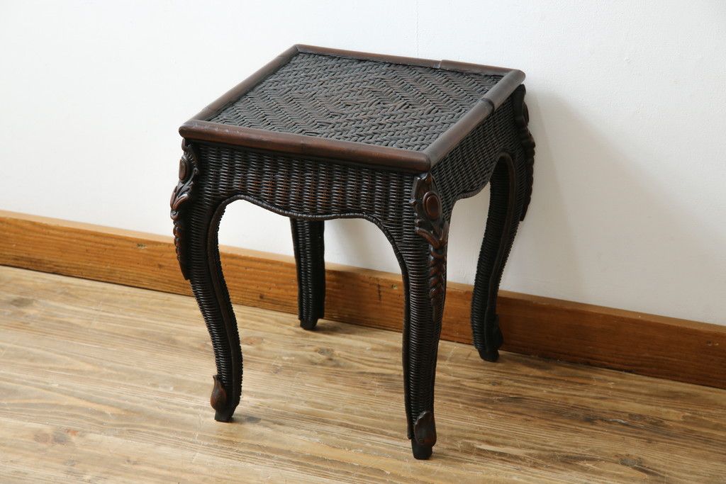 テーブル> カフェテーブル・コーヒーテーブル > 中古 美品!! 希少モデル ポロ ラルフローレンホーム(Polo Ralph Lauren Home) 高級感漂うラタン素材のクラシカルなサイドテーブル(コーヒーテーブル、ナイトテーブル、花台、飾り台)(定価約12万円)(R-083548)