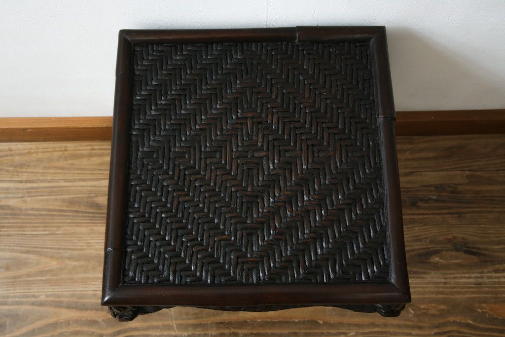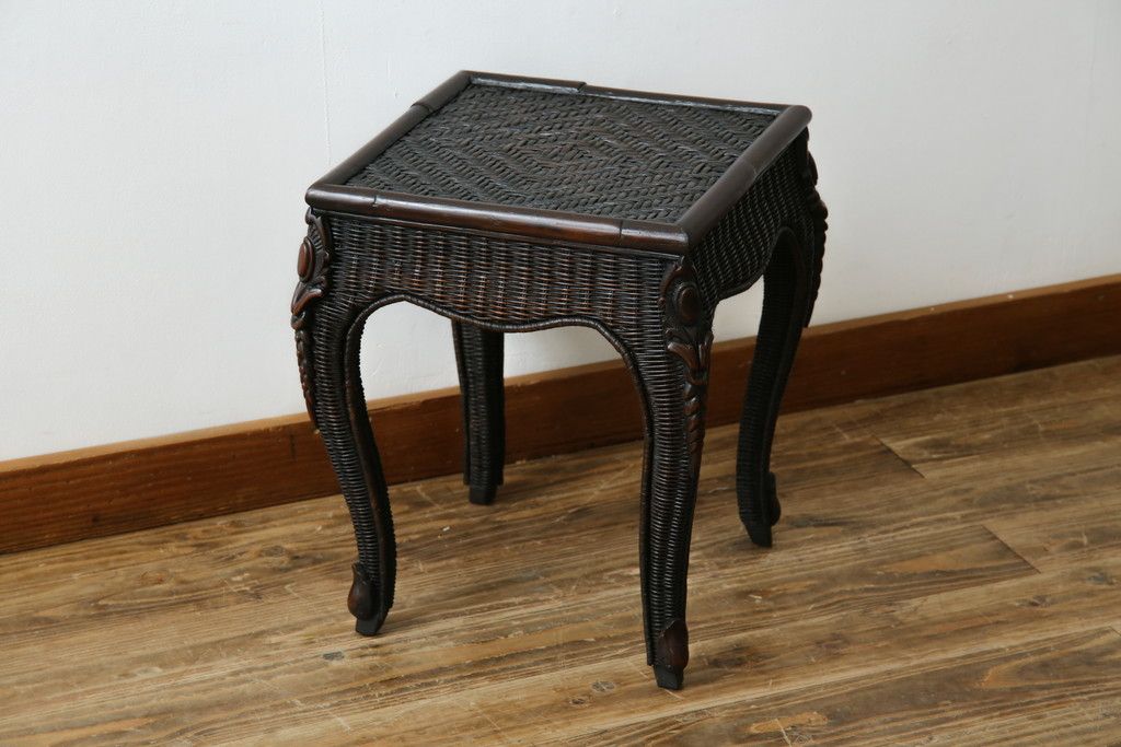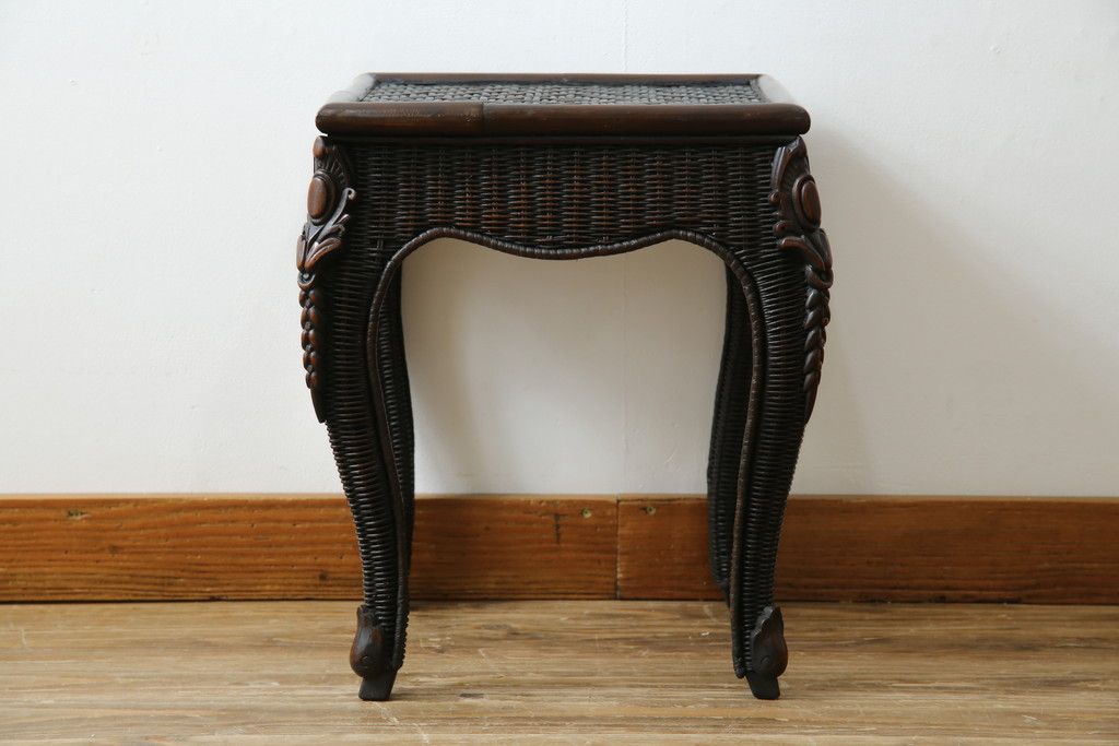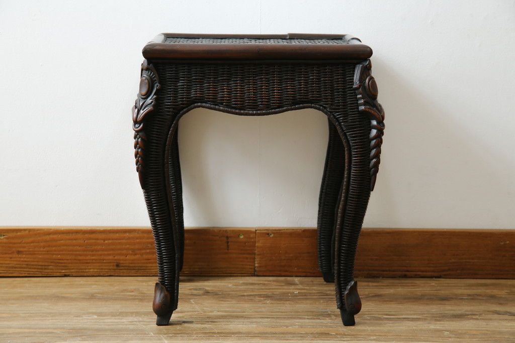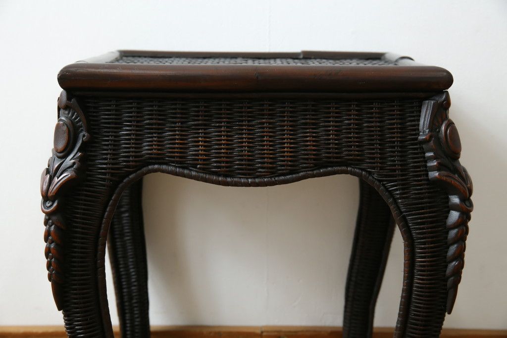 中古 美品!! 希少モデル ポロ ラルフローレンホーム(Polo Ralph Lauren Home) 高級感漂うラタン素材のクラシカルなサイドテーブル(コーヒーテーブル、ナイトテーブル、花台、飾り台)(定価約12万円)(R-083548)