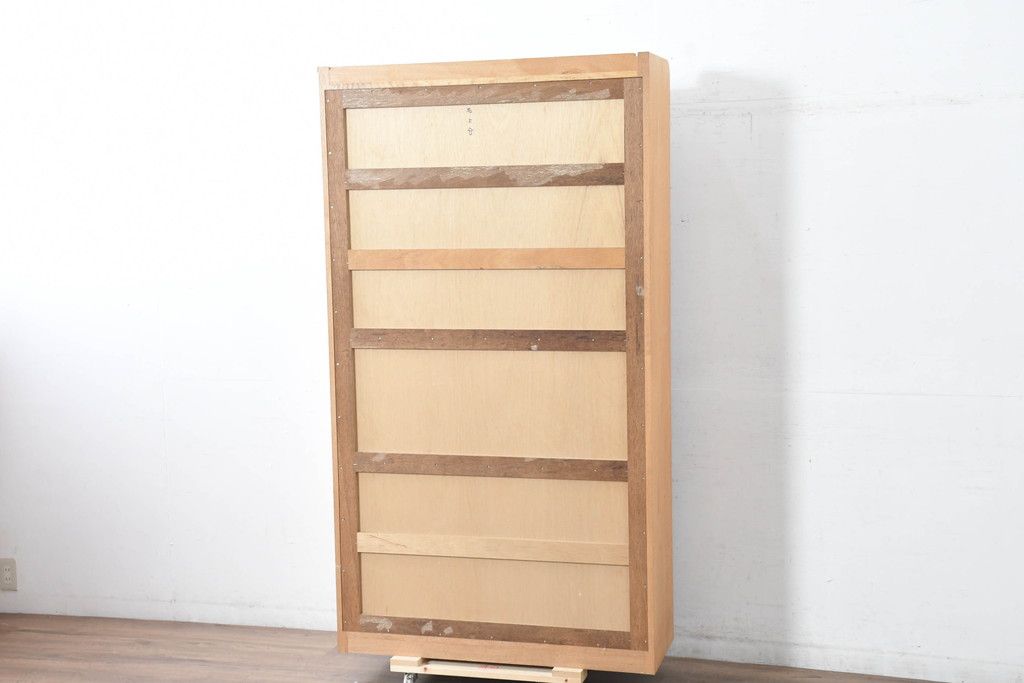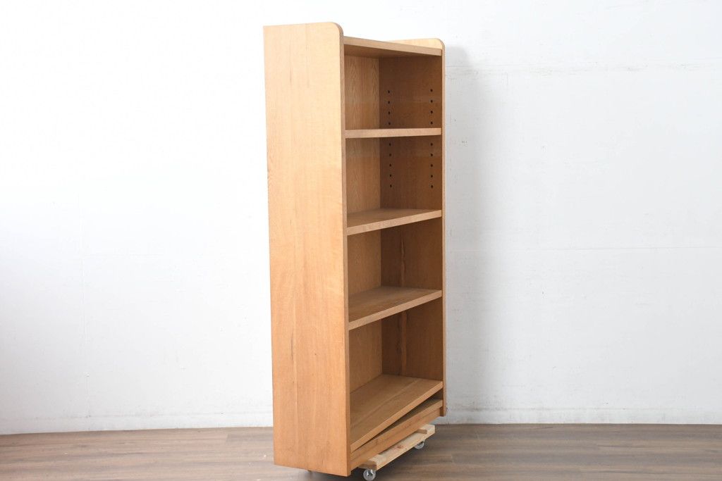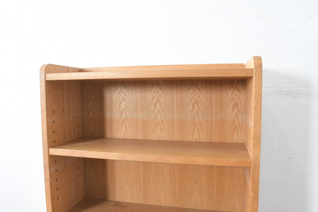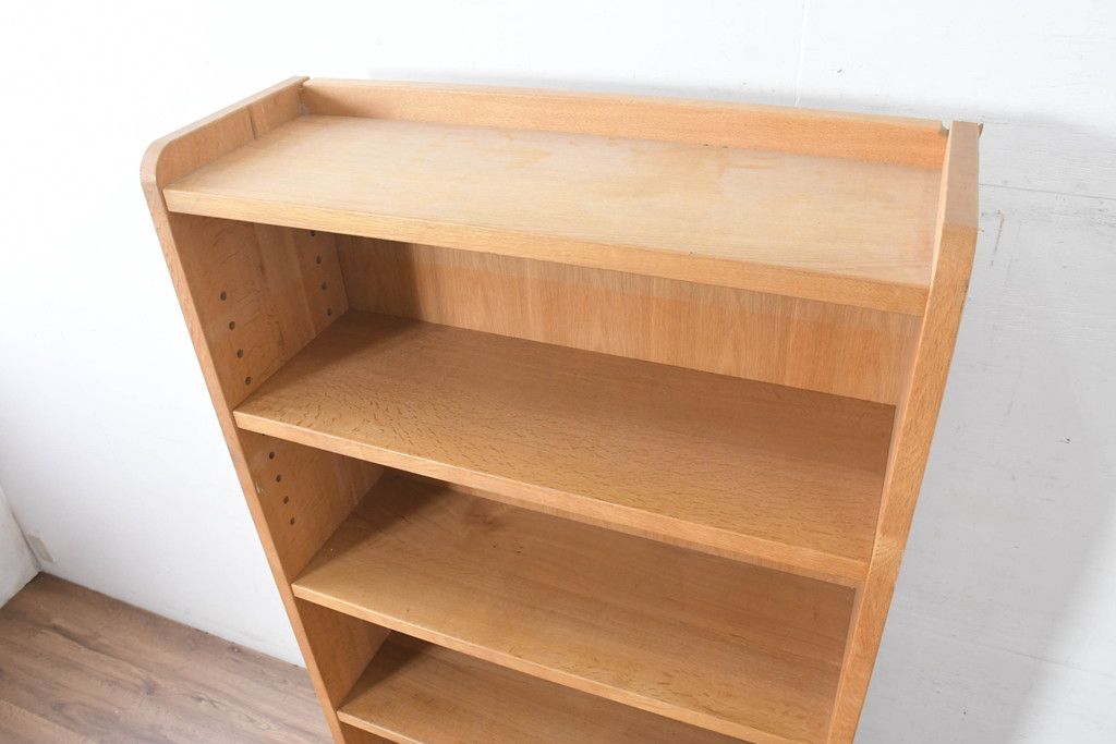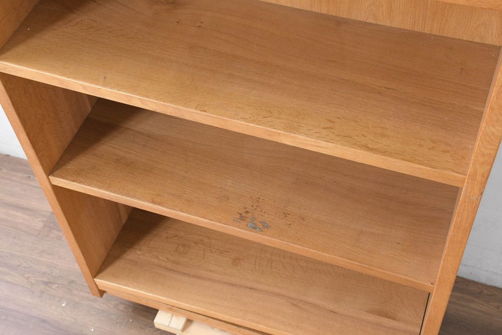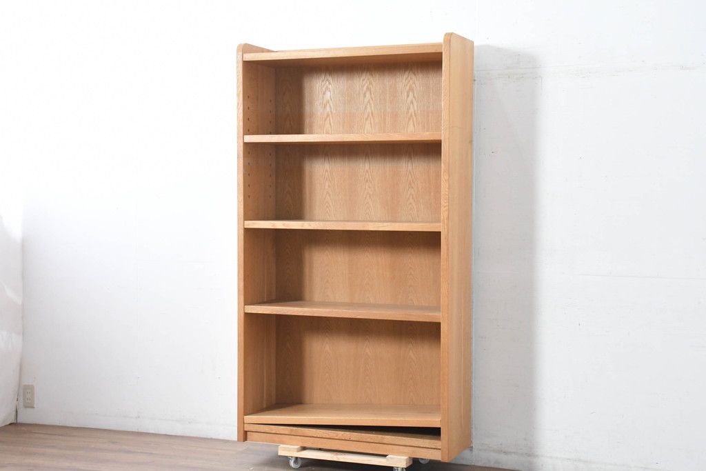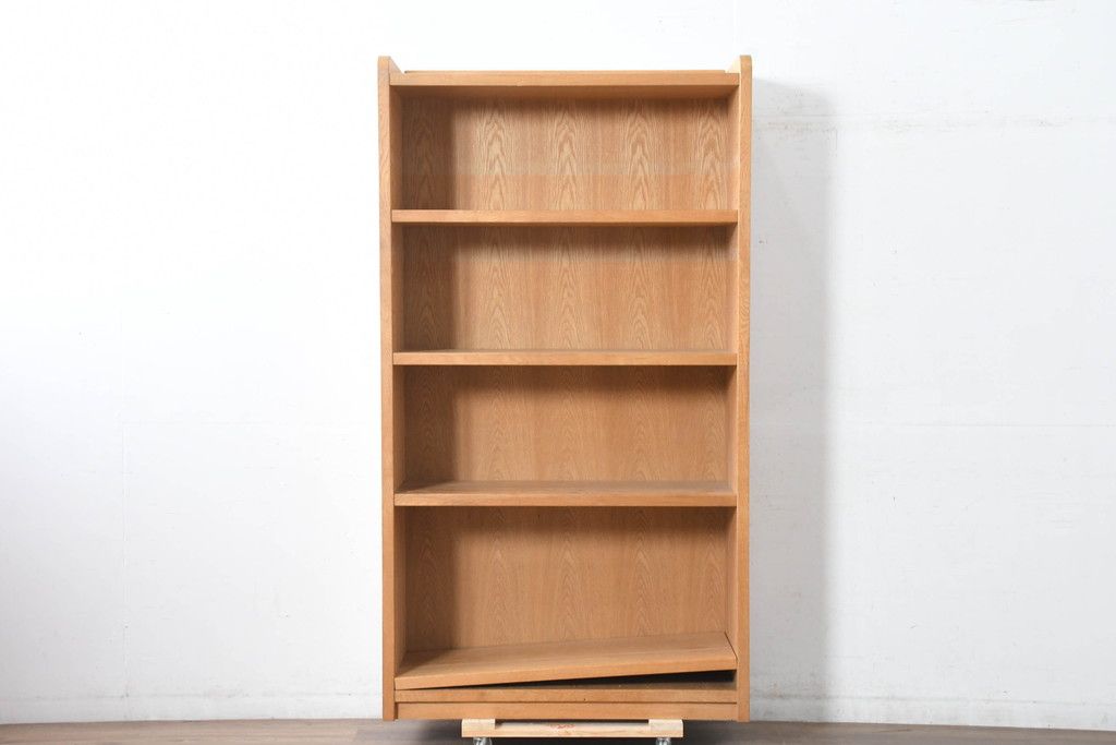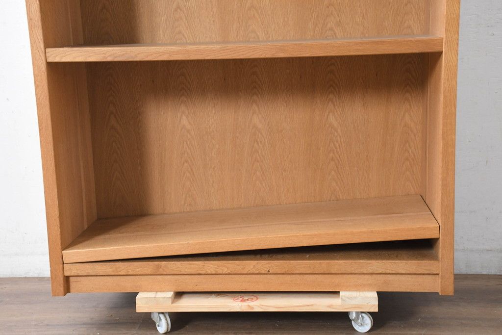 中古 美品 重厚 国産職人手作り ぶ厚い楢(ナラ)材のシンプルな本棚(飾り棚、オープンシェルフ、ブックシェルフ、オープンラック、収納棚)(製作費約30万円)(R-083576)